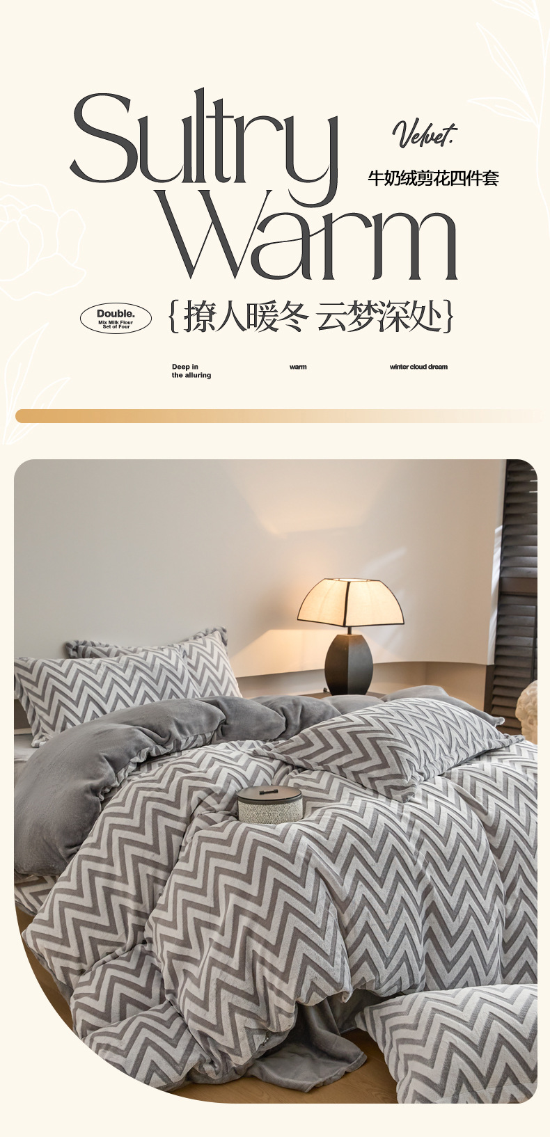 Cama de seda de leche caliente gruesa de cuatro piezas, seda de coral tallada 2025, nueva sopa de cama, colcha de cama de tres piezas