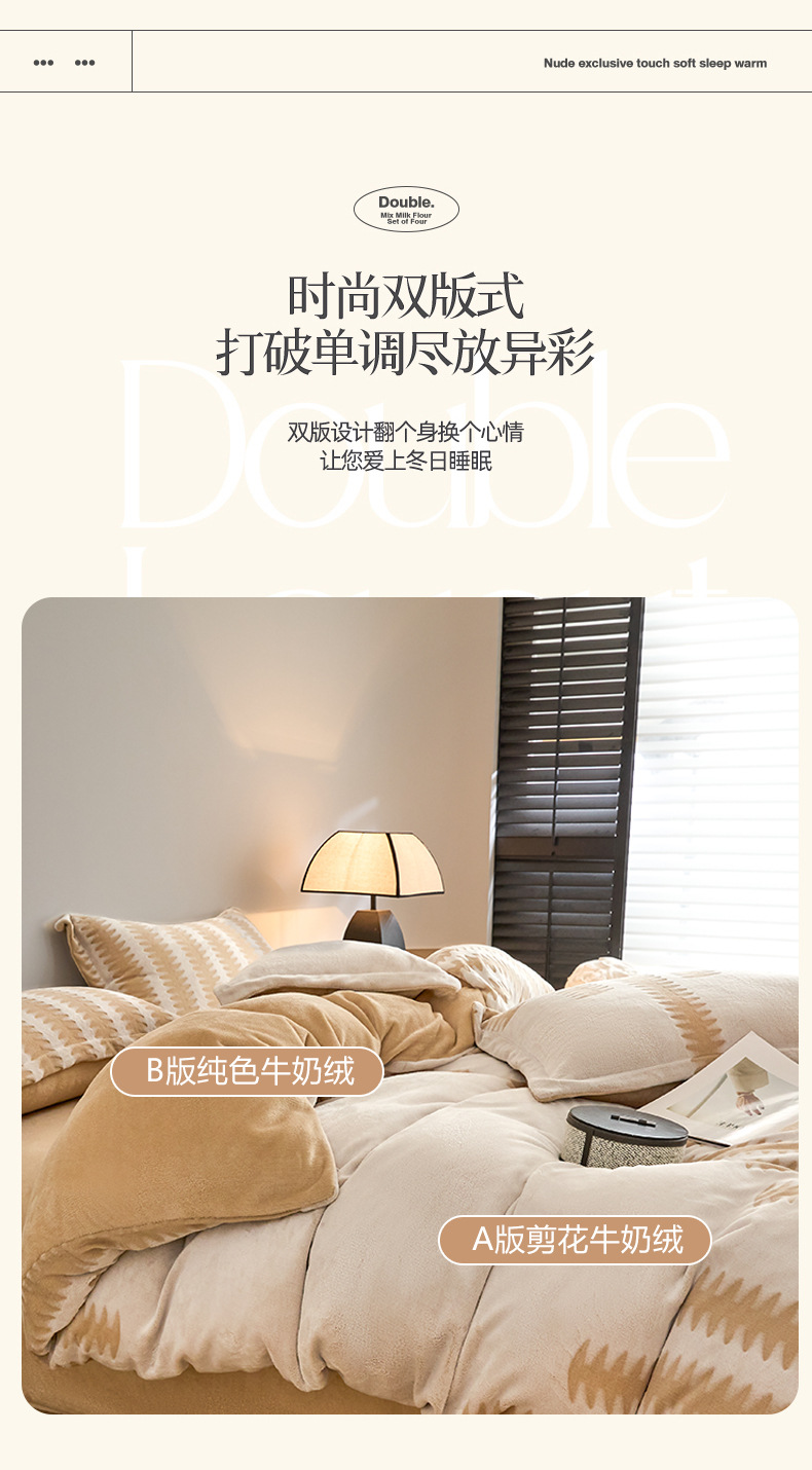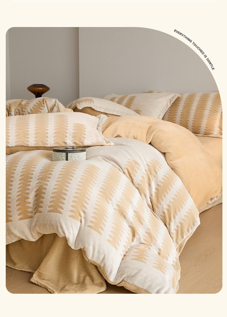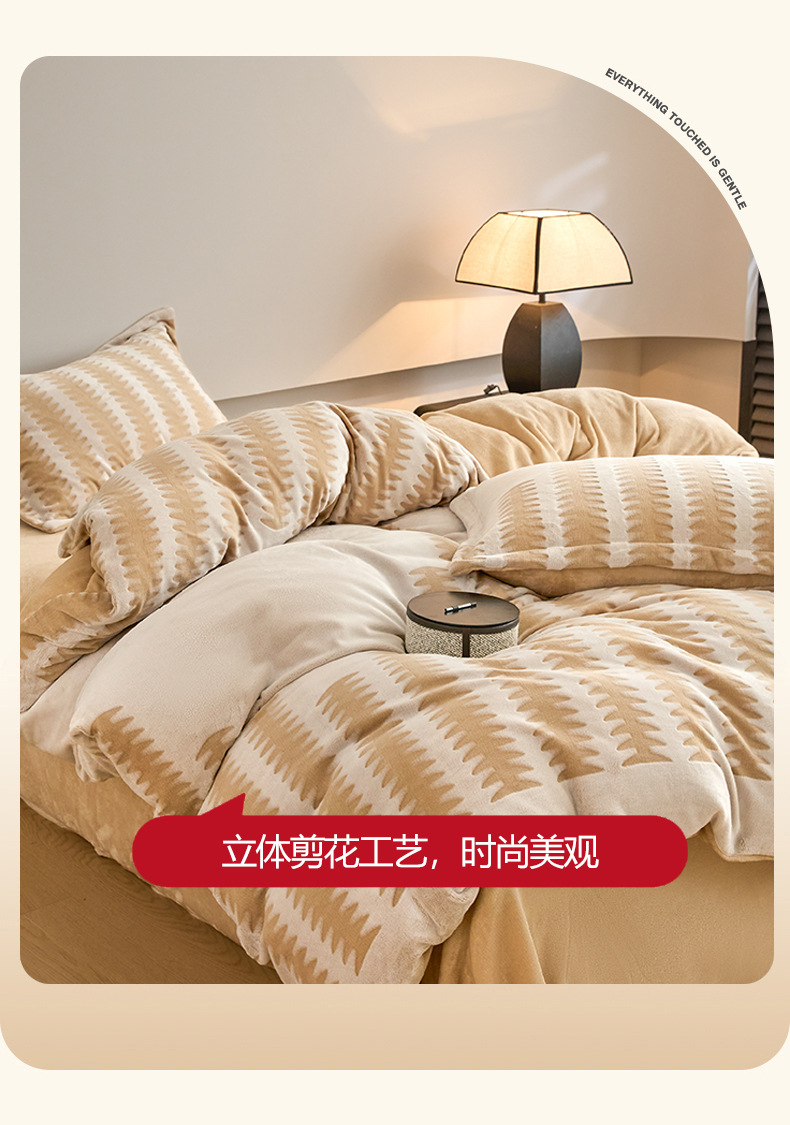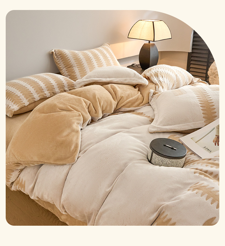 2025 nuevo invierno de invierno engrosado de cama de lana de coral tallado de lana de leche de cuatro piezas conjunto de sábanas de franela cubierta