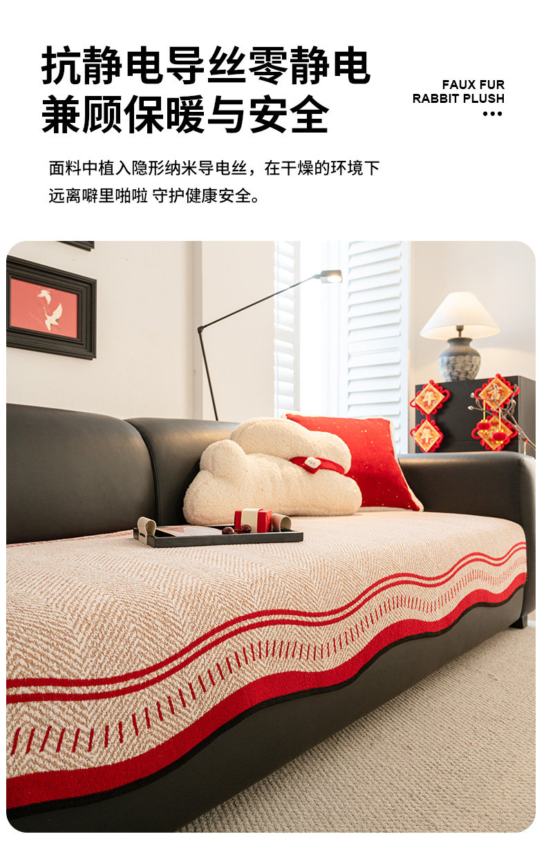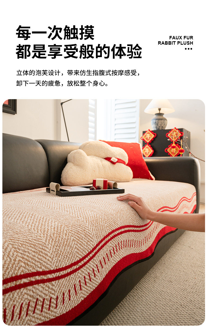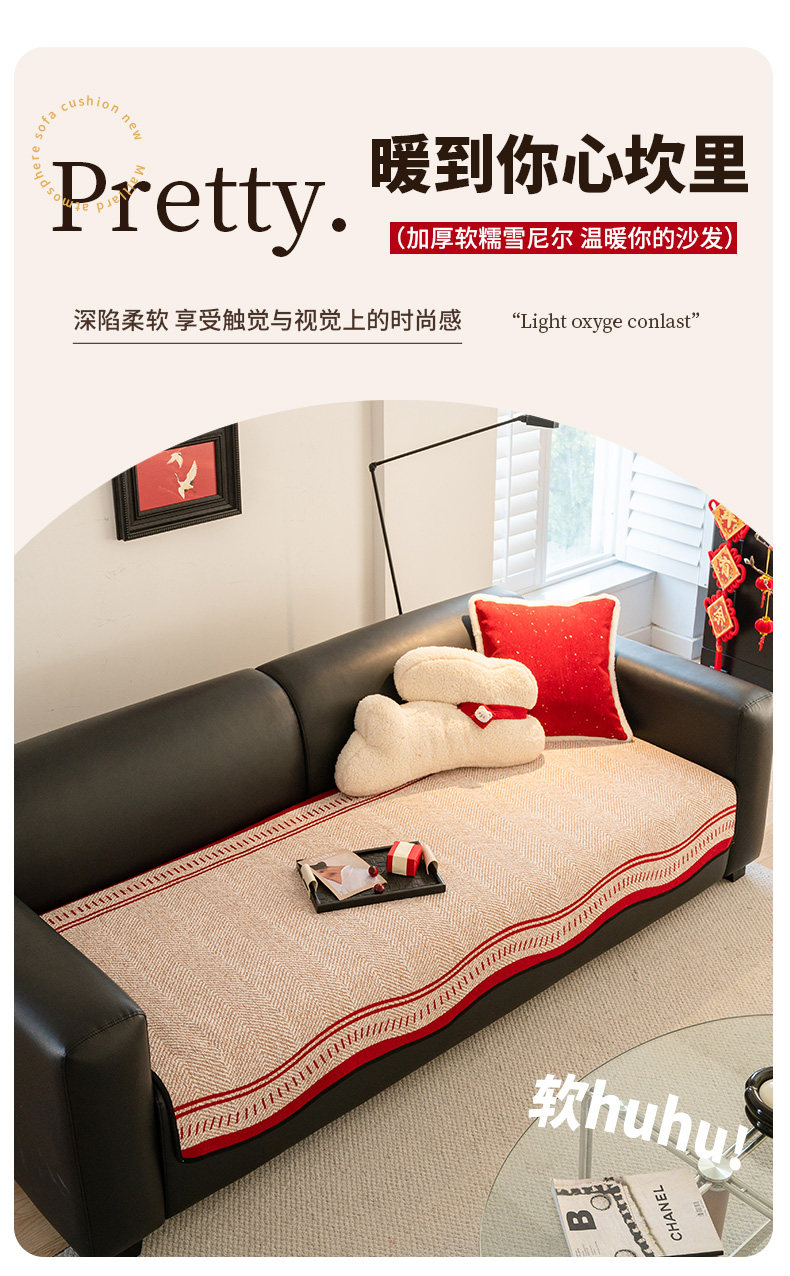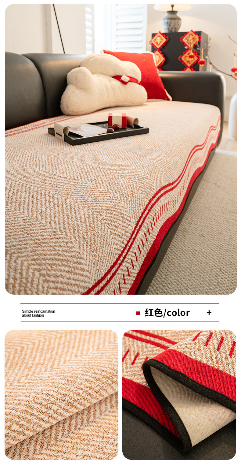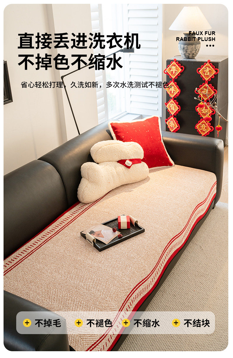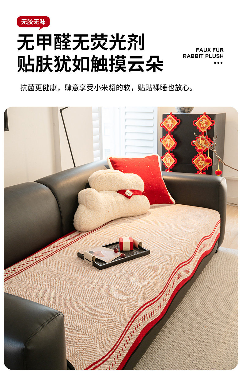 Rojo festivo Año Nuevo cojín de sofá de Año Nuevo 2025 nuevo cojín de cuatro estaciones anti-deslizante sofá cubierta de primavera