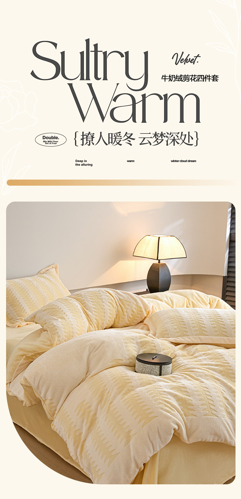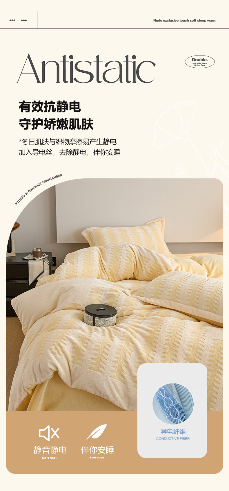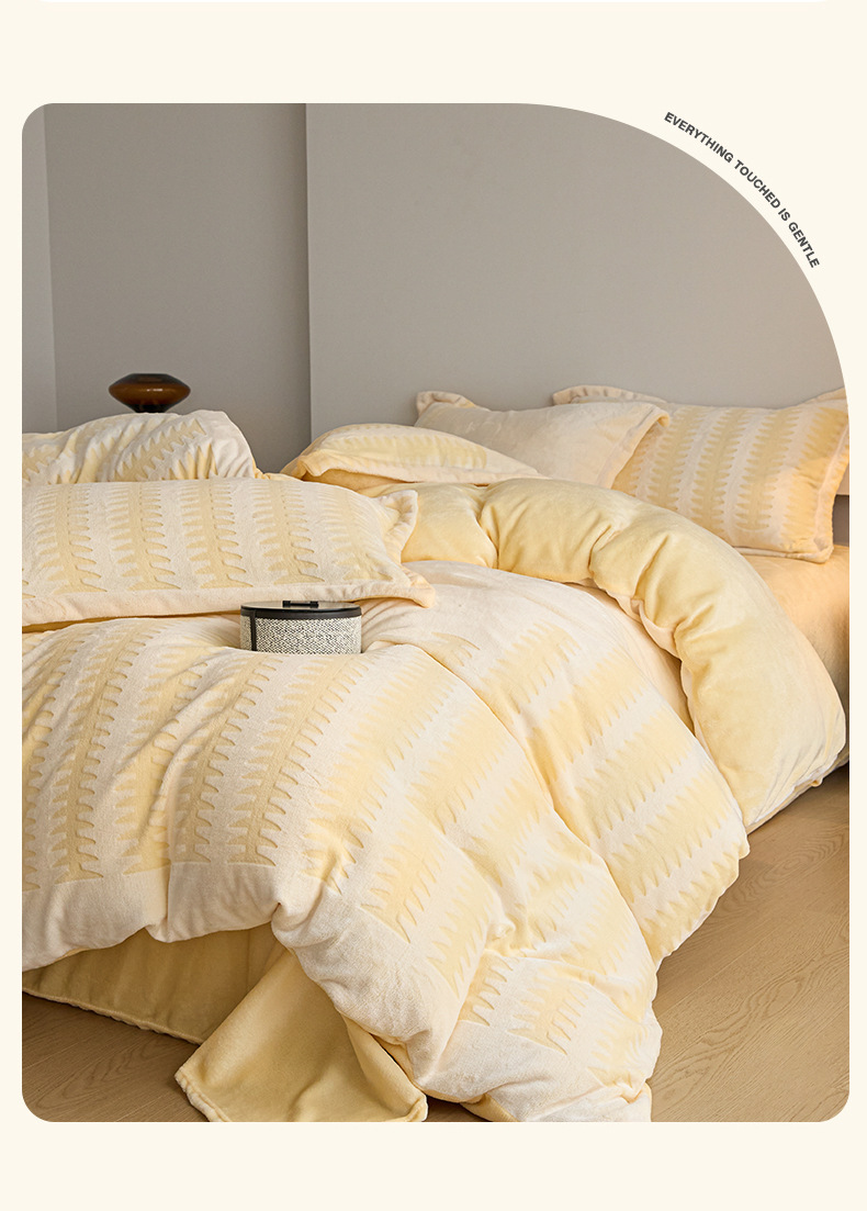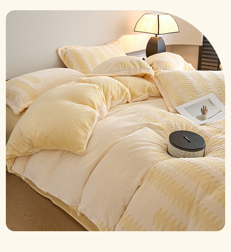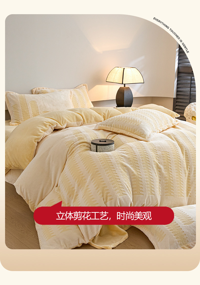 Luz de lujo tallado cama de terciopelo de cuatro piezas de terciopelo de leche engrosado colcha de coral sábanas de terciopelo de invierno más terciopelo de cama cálida