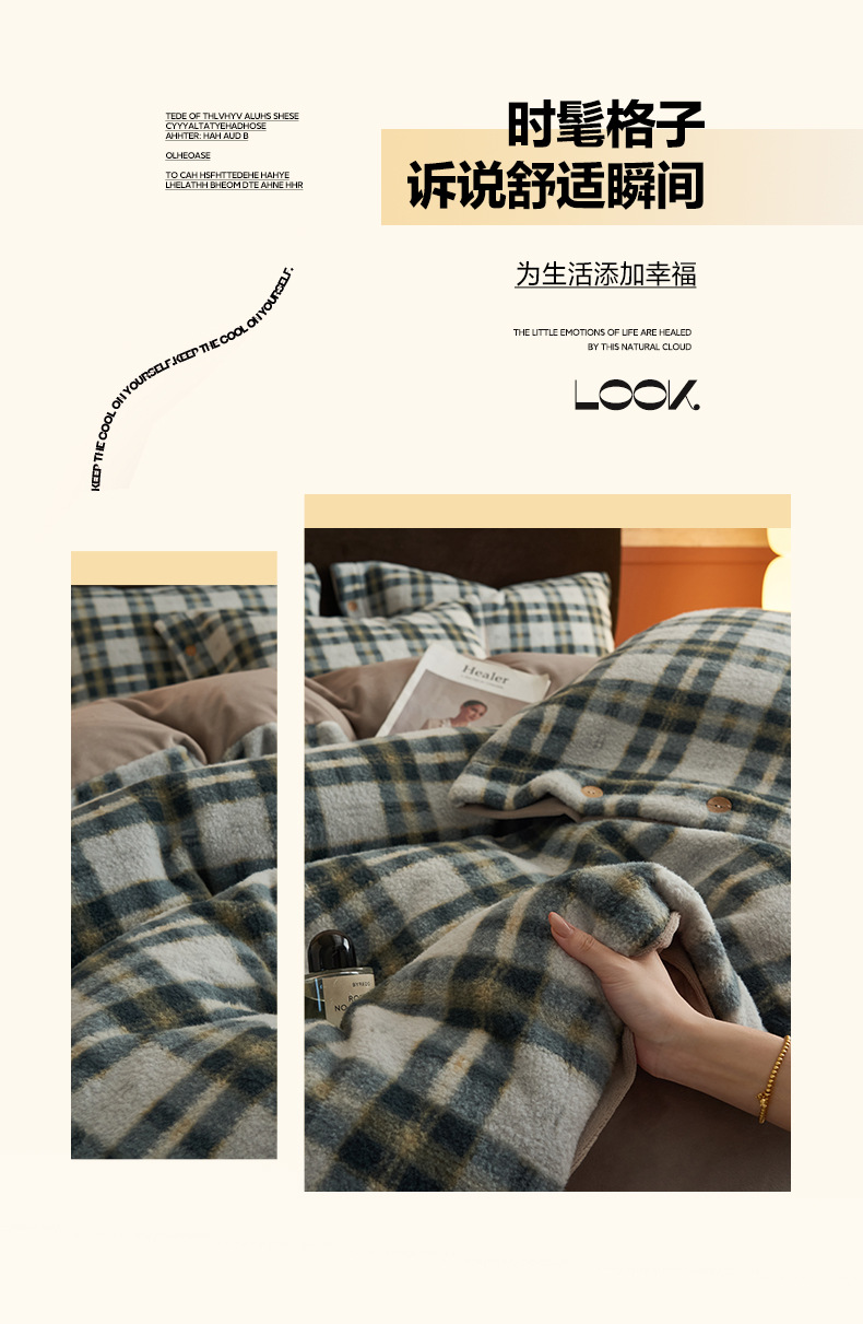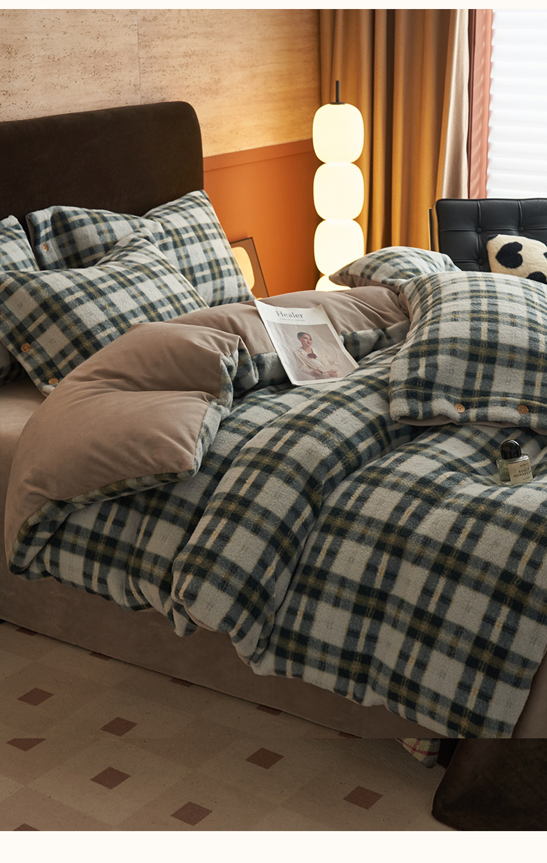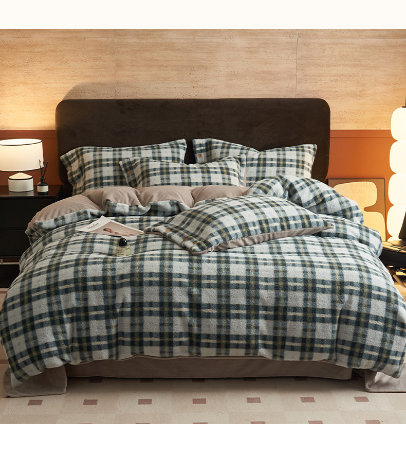 Invierno cálido alpaca espesa leche de lana de cuatro piezas sábanas de lana de coral cubierta cubierta cubierta de cama de tres piezas