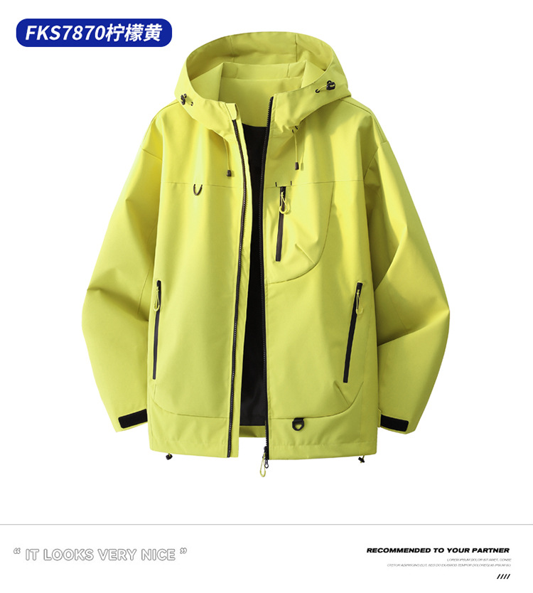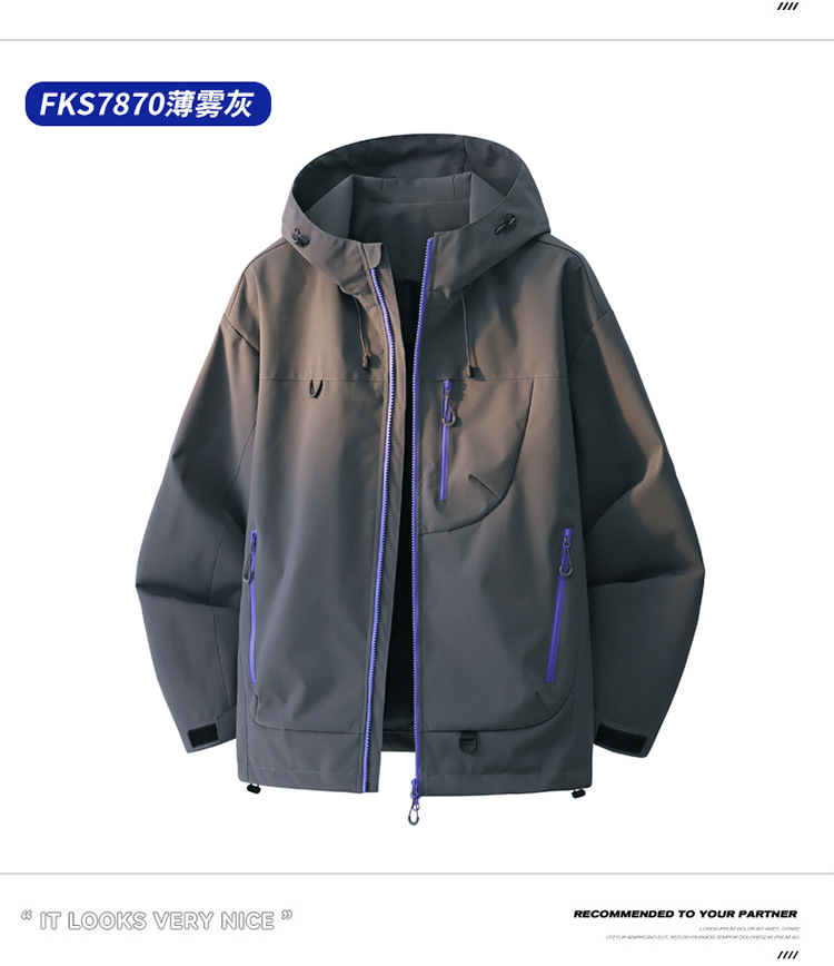 Línea de contraste de color al aire libre capa de asalto con capuz multicolor primavera y otoño para hombres y mujeres empalme chaqueta de trabajo chaqueta superior