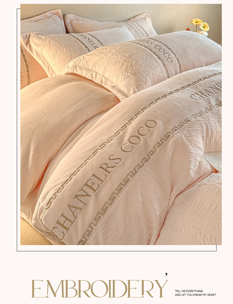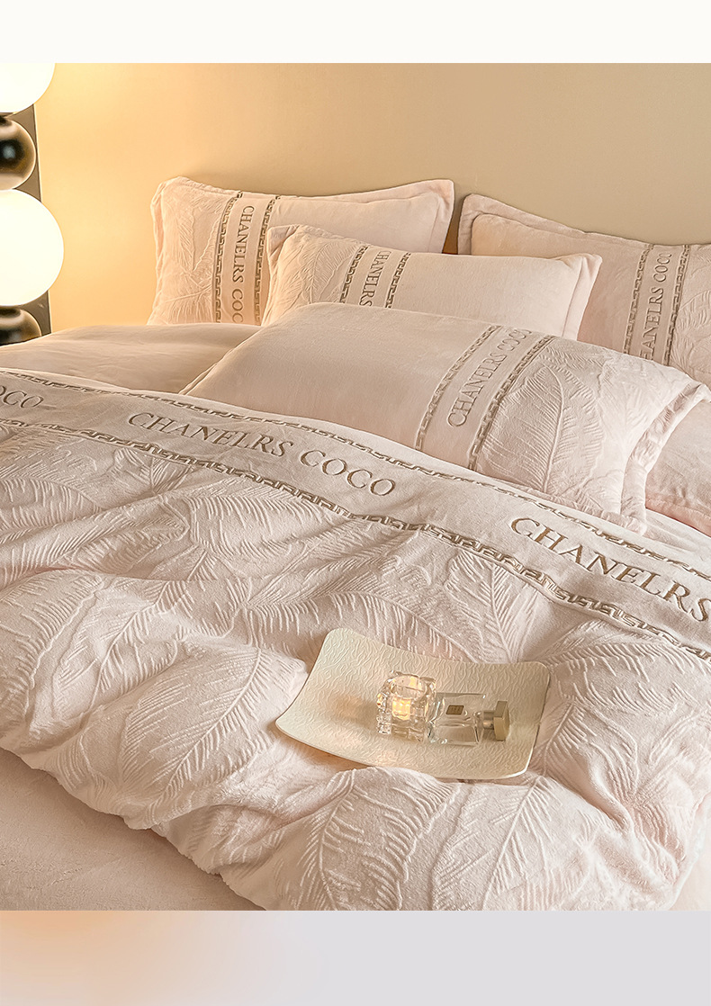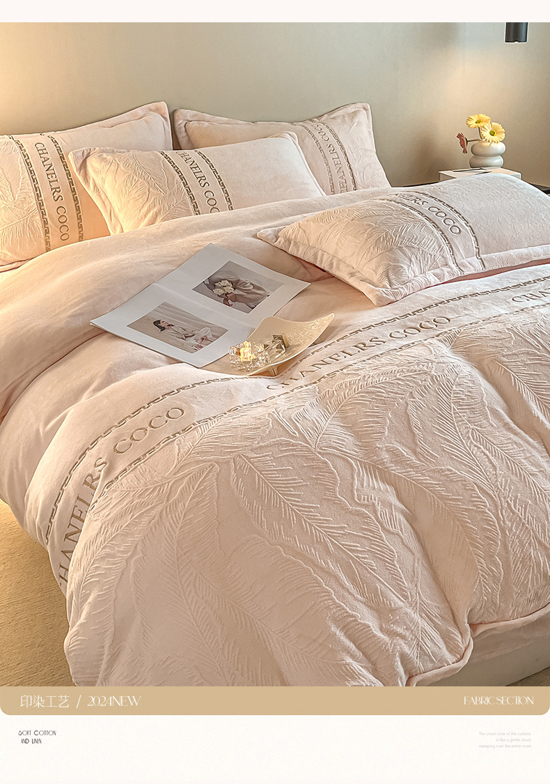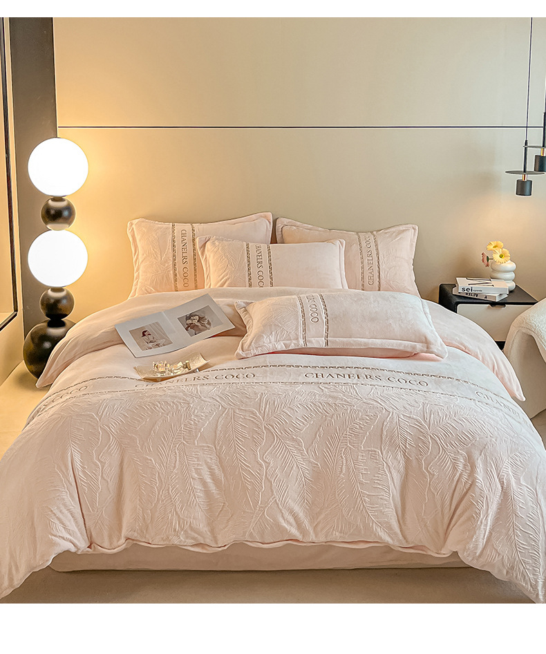 Cama de seda de leche caliente gruesa de cuatro piezas, seda de coral tallada 2025, nueva sopa de cama, colcha de cama de tres piezas