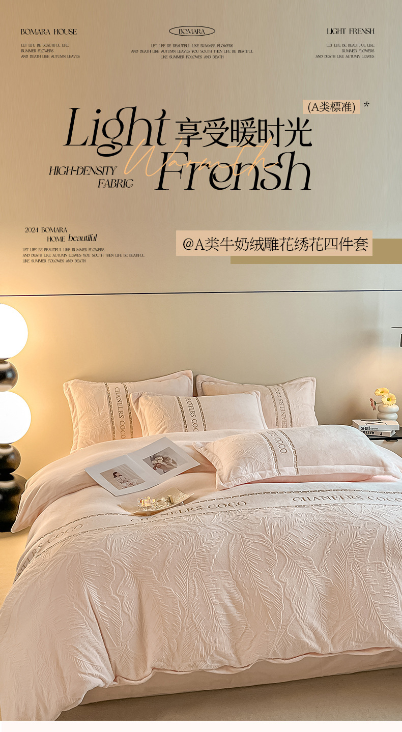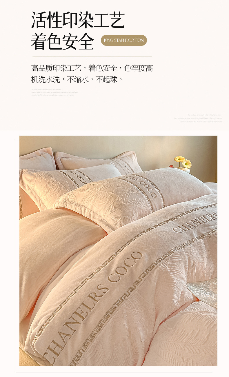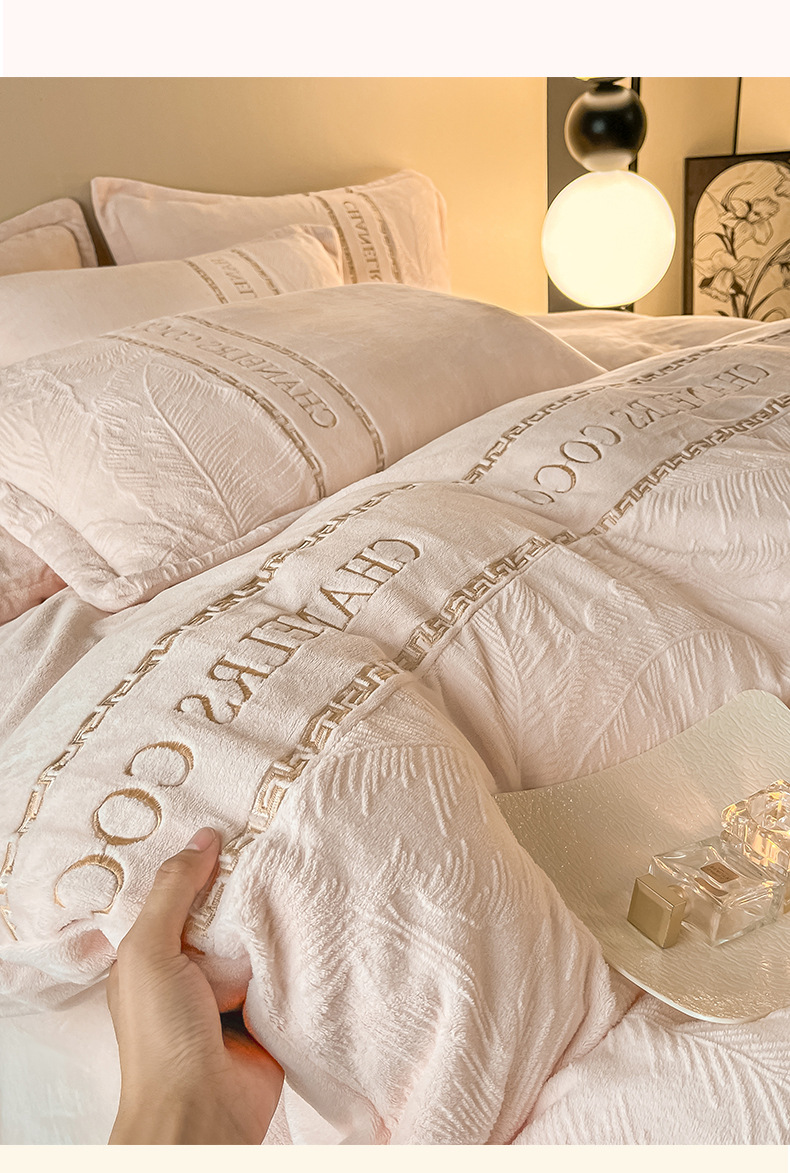 Cama de seda de leche caliente gruesa de cuatro piezas, seda de coral tallada 2025, nueva sopa de cama, colcha de cama de tres piezas
