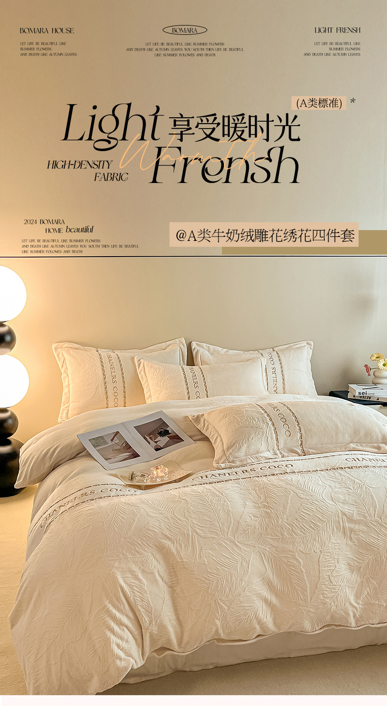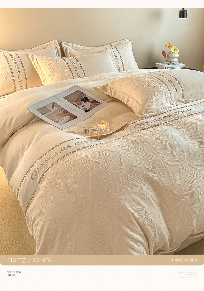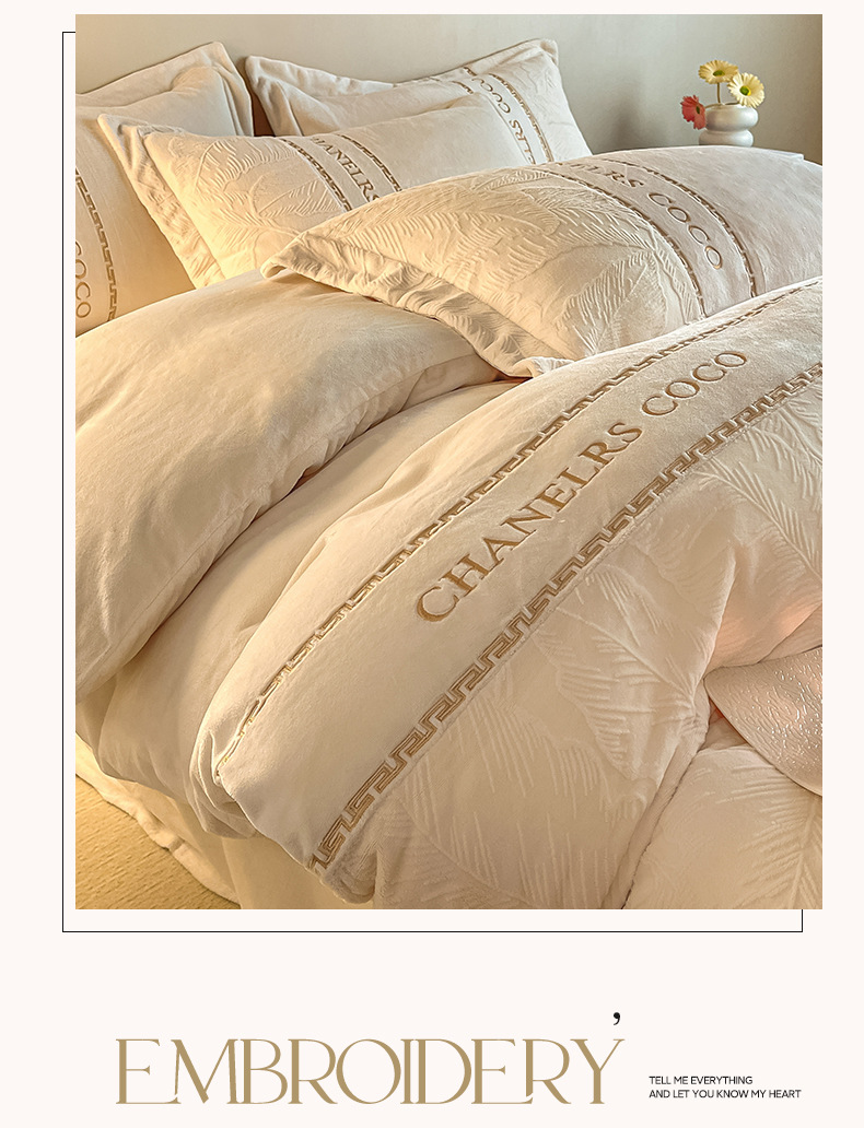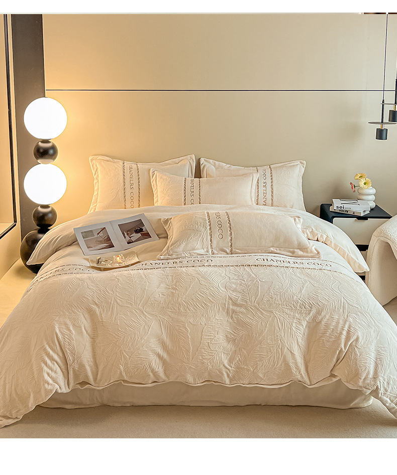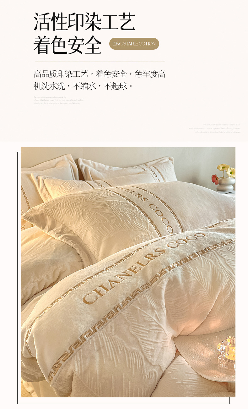 High-end engrosado leche de terciopelo tallado cuatro piezas de otoño y invierno cálido sábanas de terciopelo de doble cara cubierta sábanas de cama
