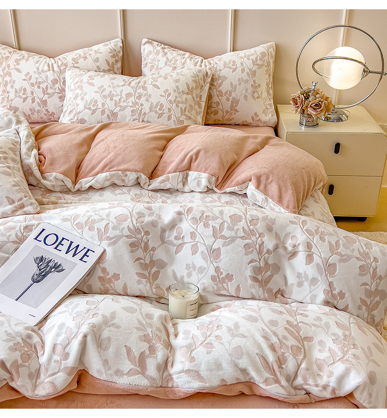Otoño e invierno engrosado leche cama de cuatro piezas conjunto de coral cubierta de edredón de flanel doble sábanas de tres piezas conjunto