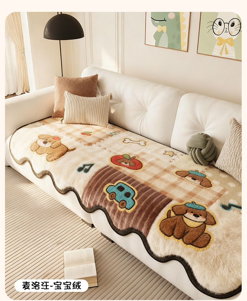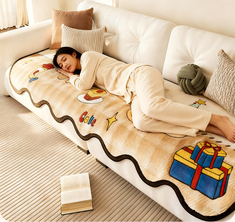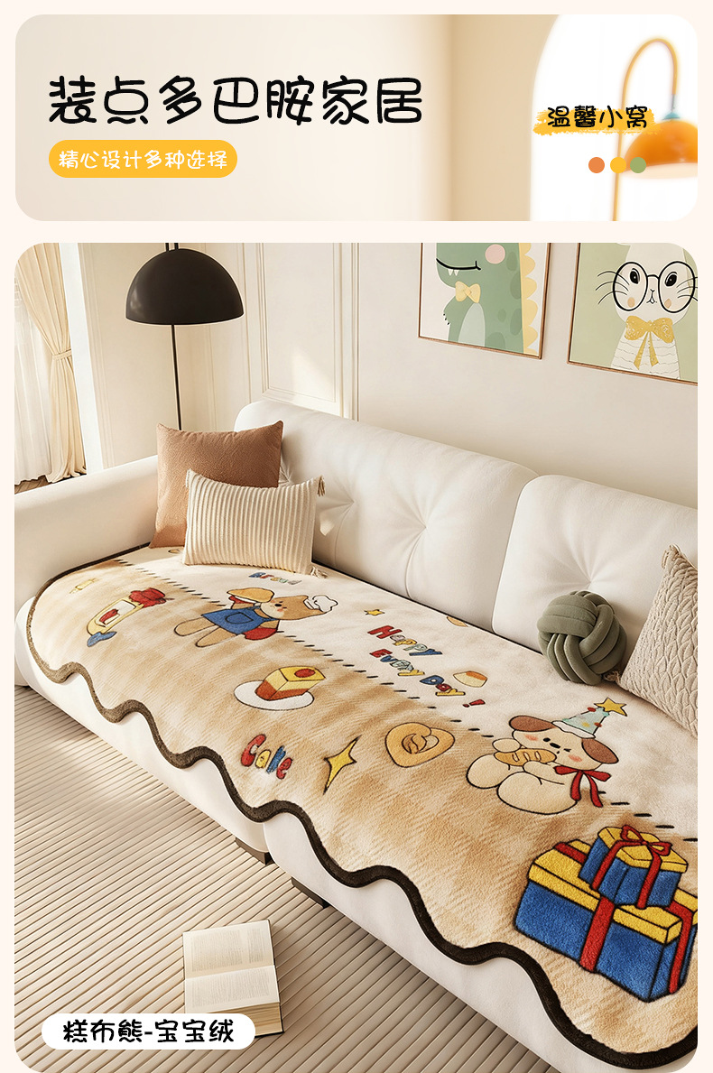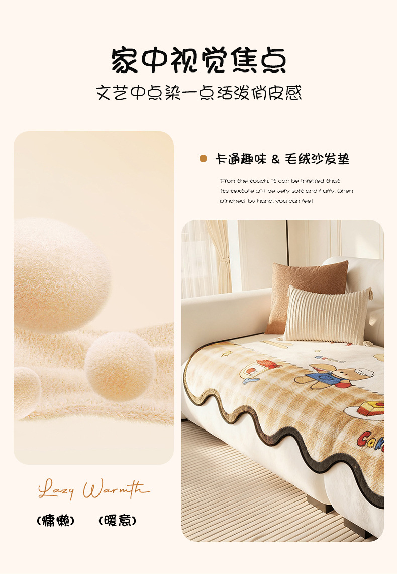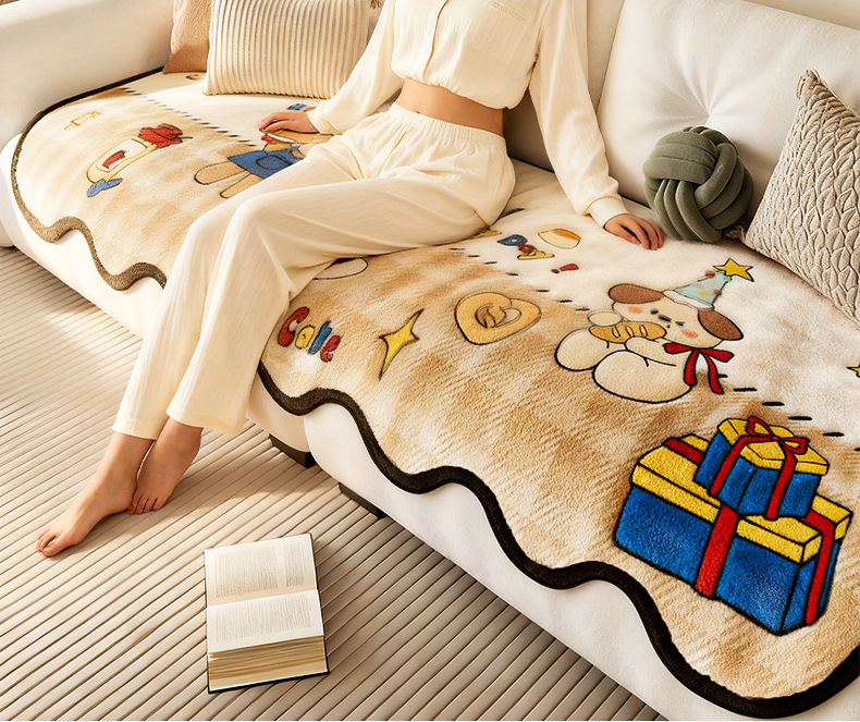 2025 nuevo cojín de sofá grueso peluche cálido sofá cubierta de piel otoño y invierno dibujos animados cojín antideslizante de alta calidad