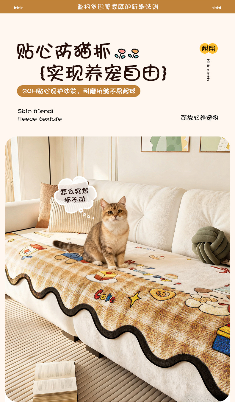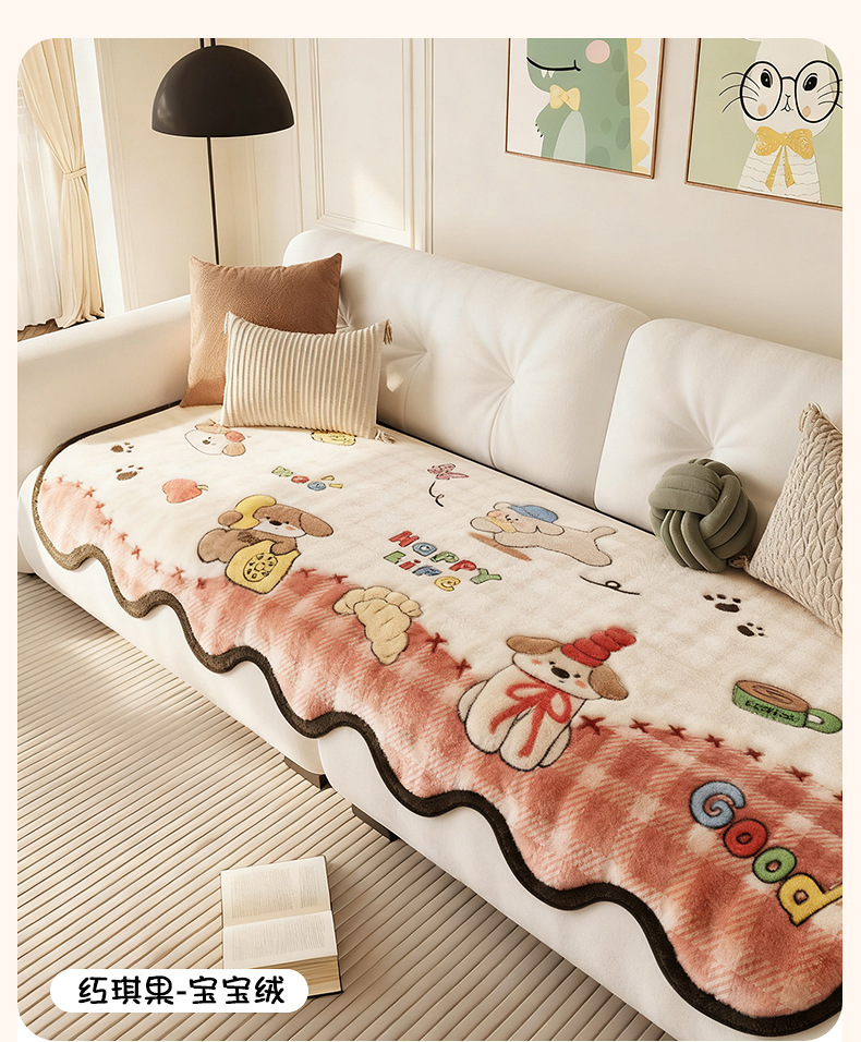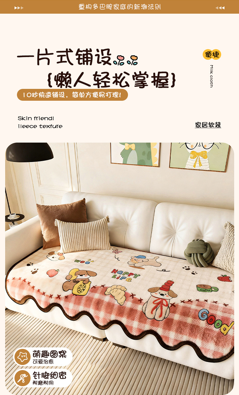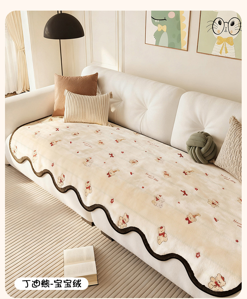 2025 nuevo cojín de sofá grueso peluche cálido sofá cubierta de piel otoño y invierno dibujos animados cojín antideslizante de alta calidad