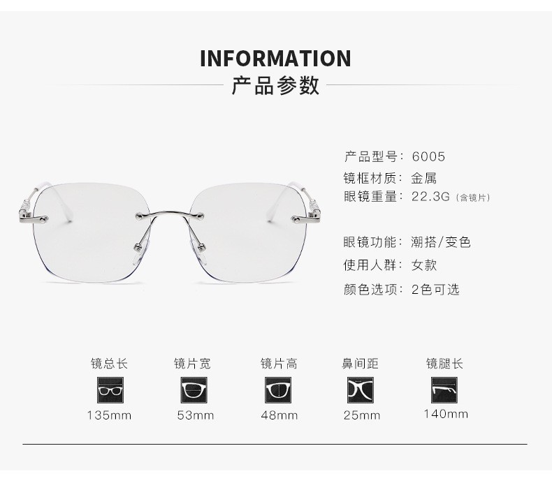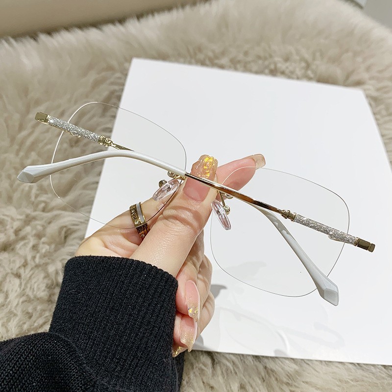 Versión coreana de las gafas sin montura del deseo puro de ins, anti-luz azul de alta definición, espejo de cambio de color sensible al grado, espejo de lectura de diseño de flash fino