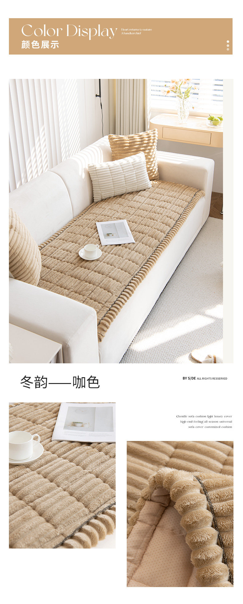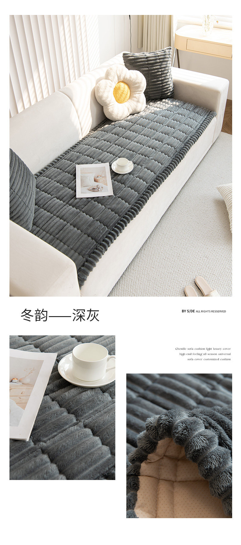 2025 nuevo cojín de sofá de terciopelo otoño y invierno simple cojín de sofá de sala de estar antideslizante sofá cubierta al por mayor