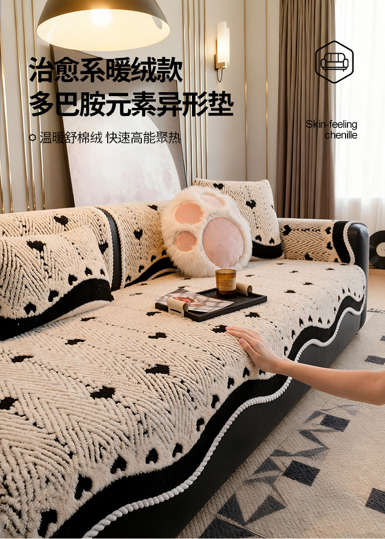 2025 nuevo invierno engrosado tela de peluche irregular cojín de sofá de piel antideslizante cojín de sofá