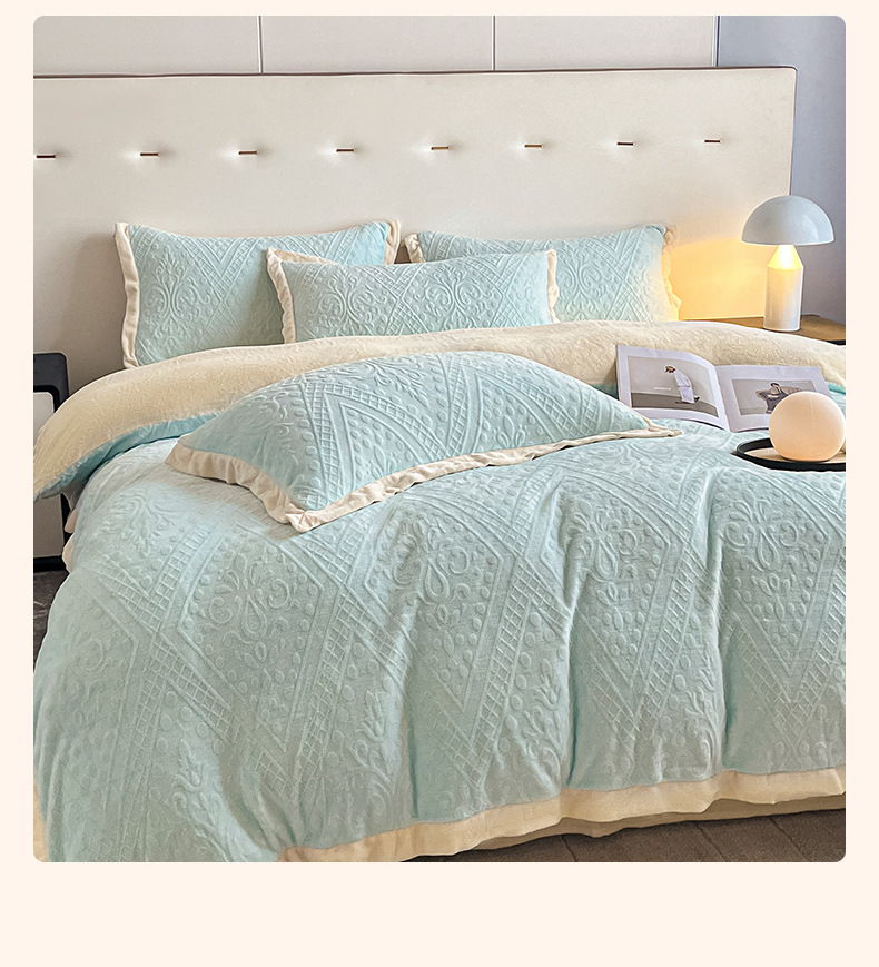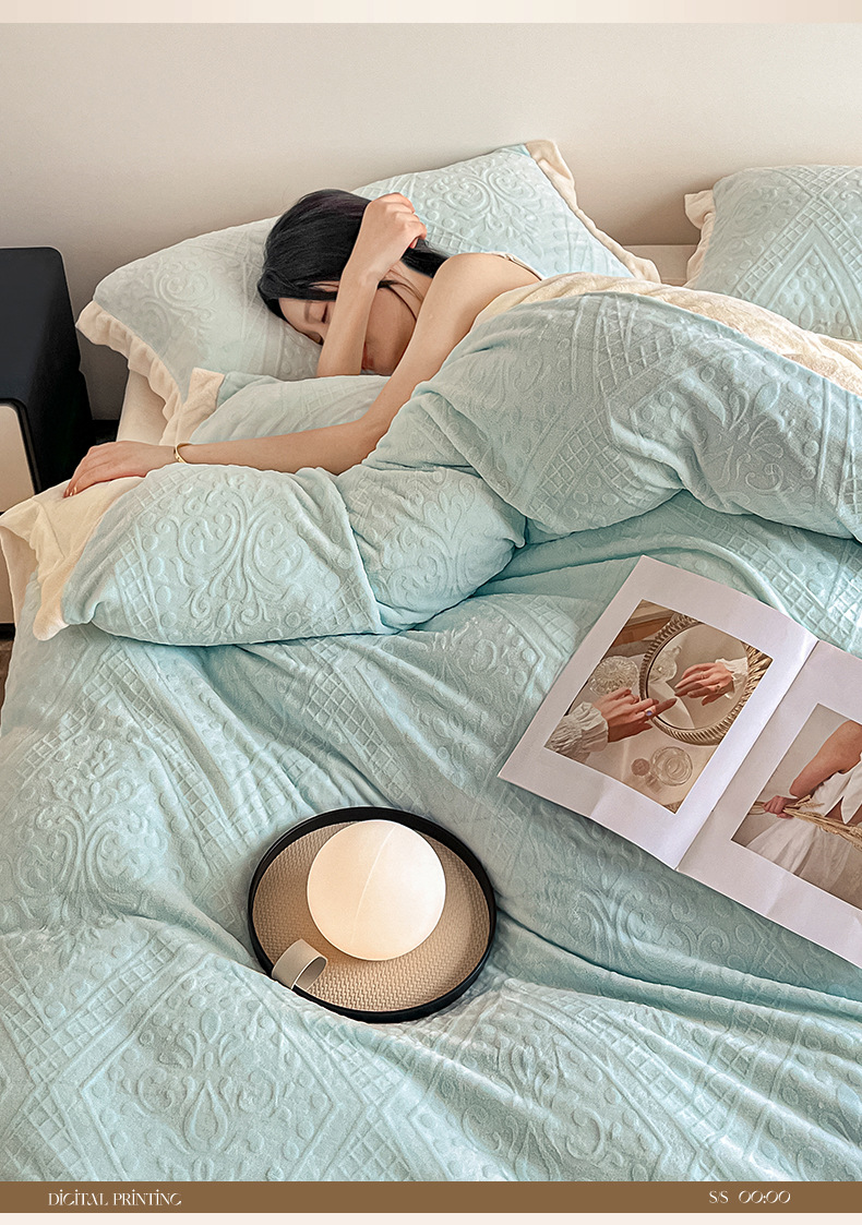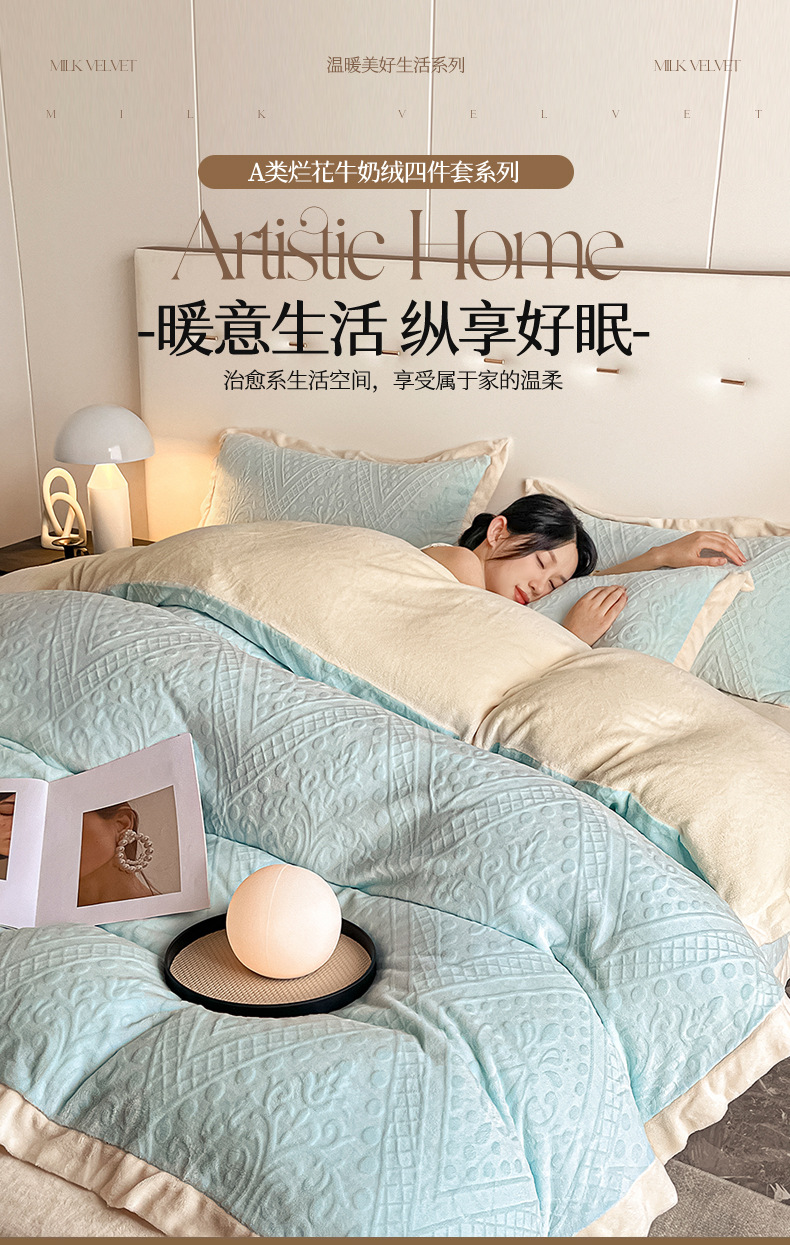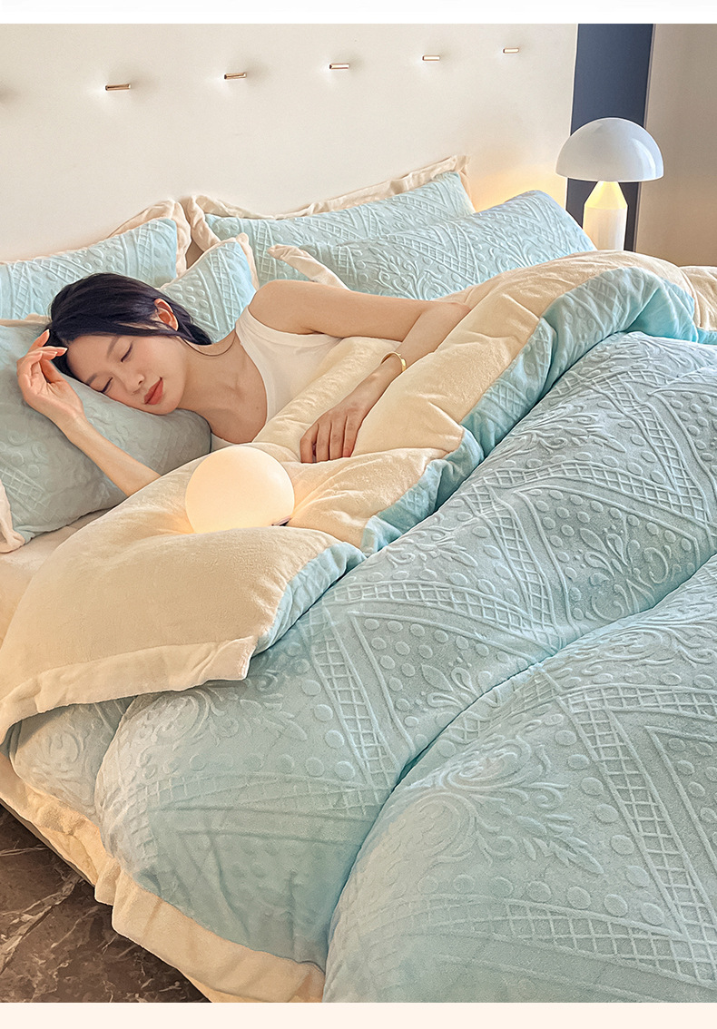 La cama de terciopelo de leche tallada de cuatro piezas set2025 nuevo invierno engrosado colcha de coral sábanas de franela