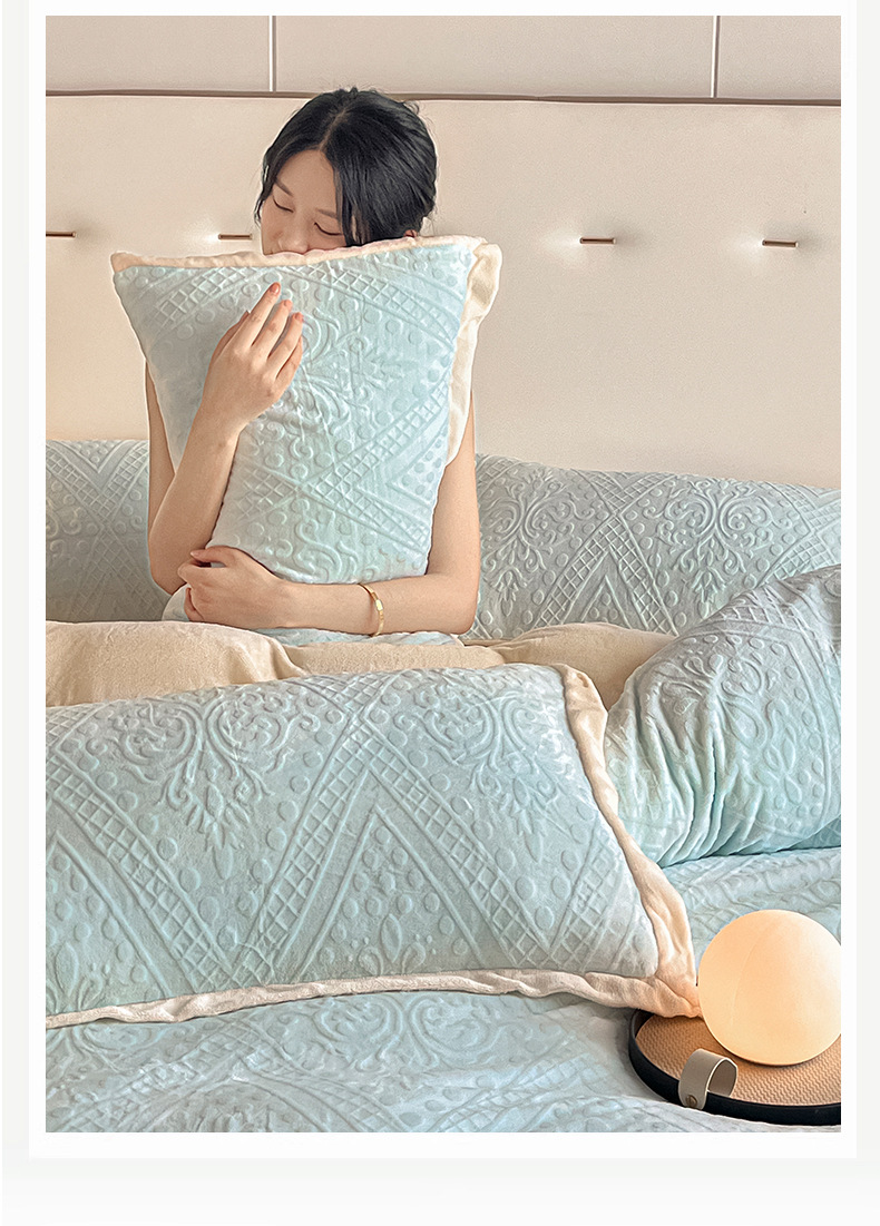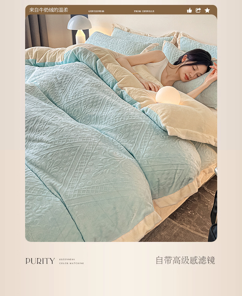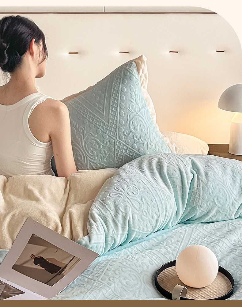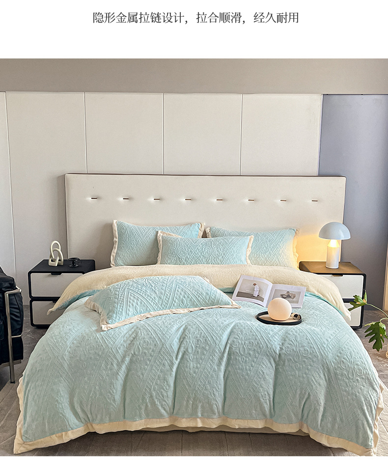 La cama de terciopelo de leche tallada de cuatro piezas set2025 nuevo invierno engrosado colcha de coral sábanas de franela