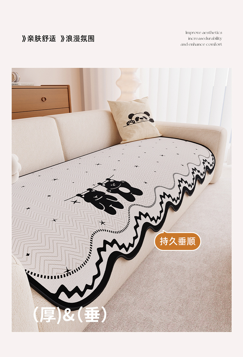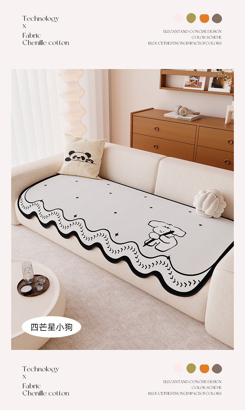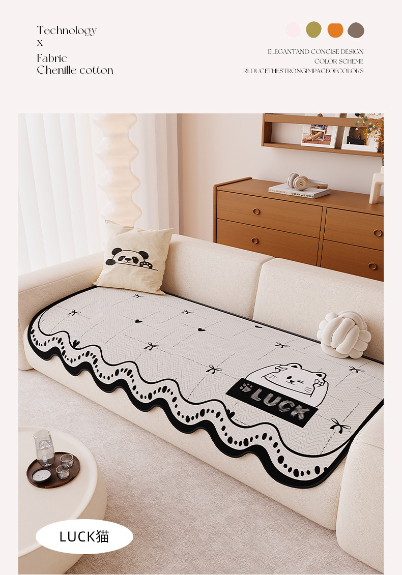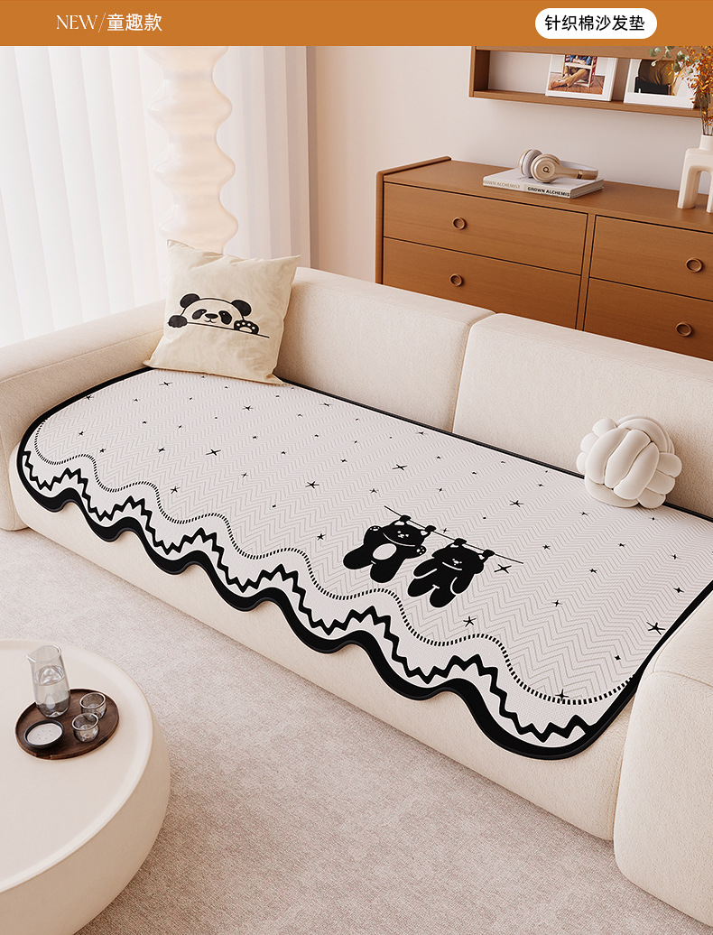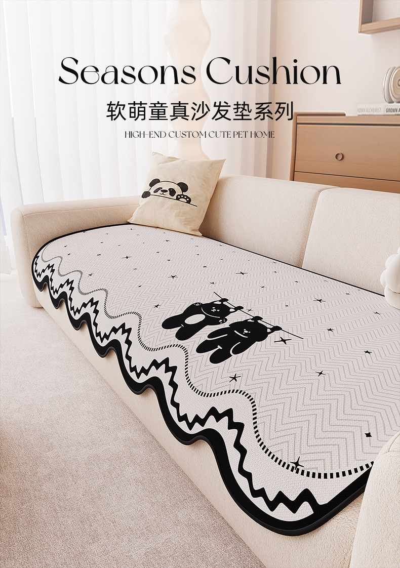 Cojín de sofá cuatro estaciones generales 2025 nuevo tipo fijo antideslizante arena de cuero lanzado cojín de tela cubierta sensación de dibujos animados de alto nivel