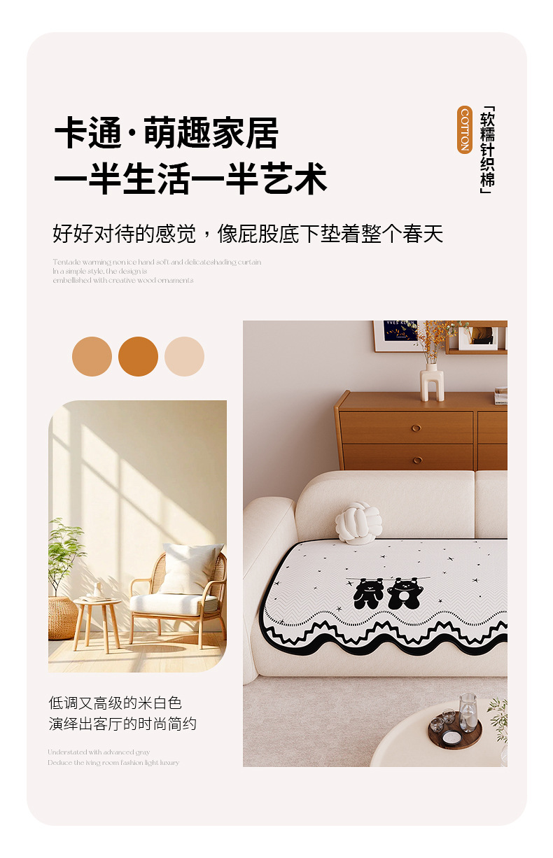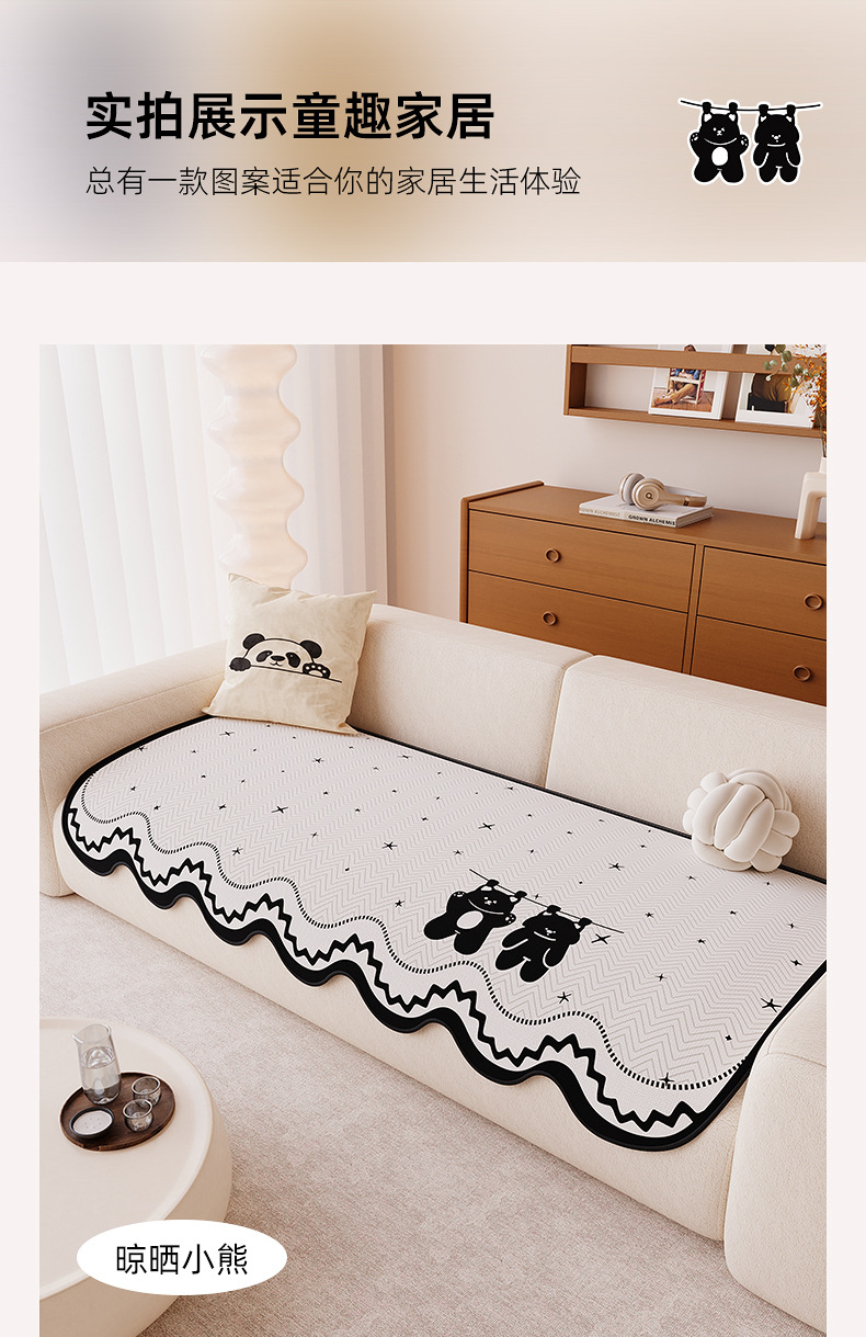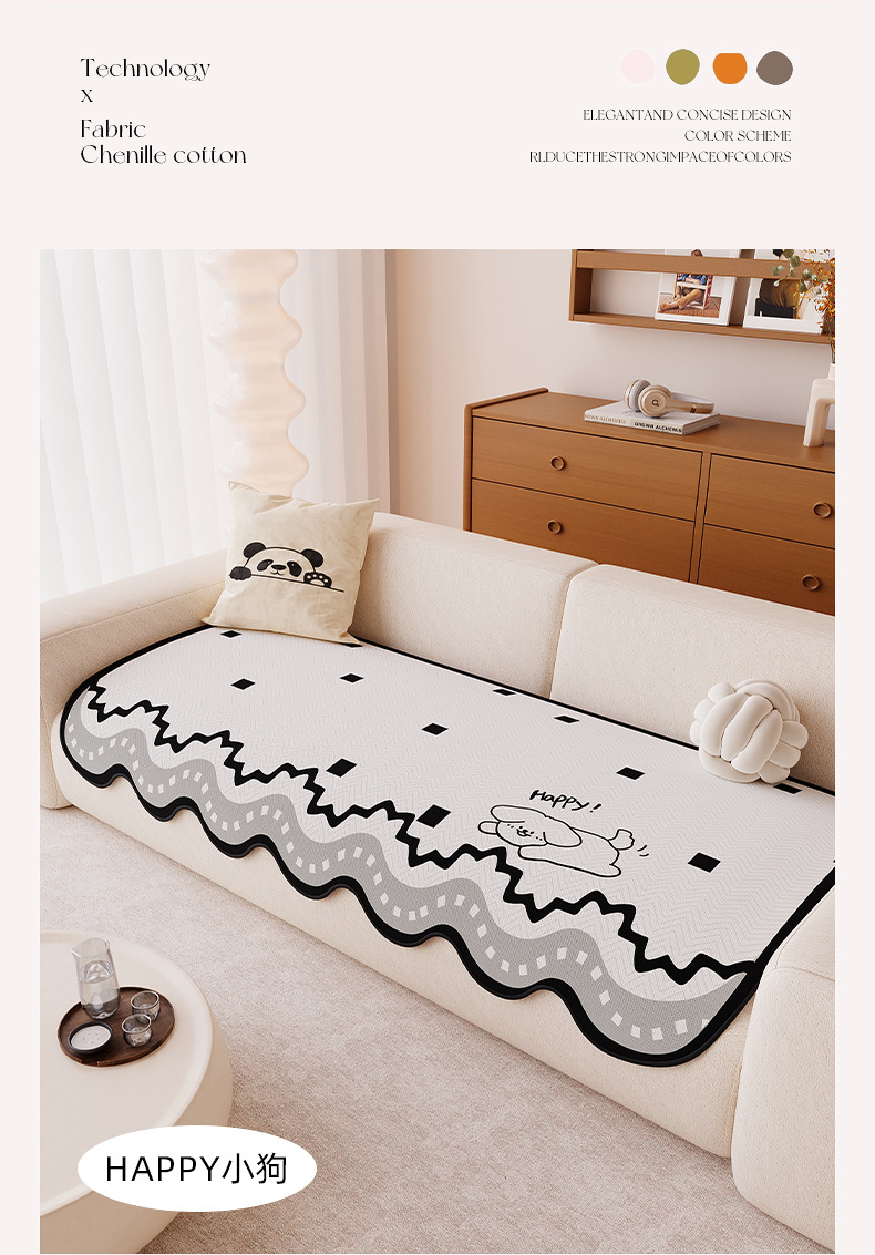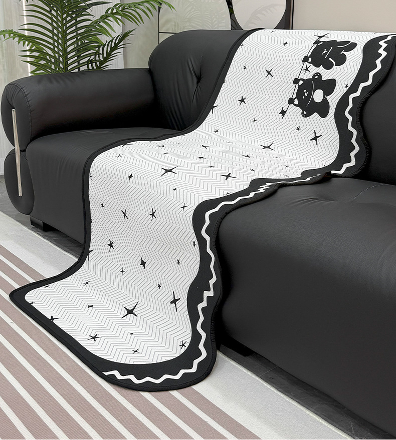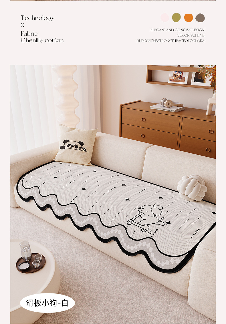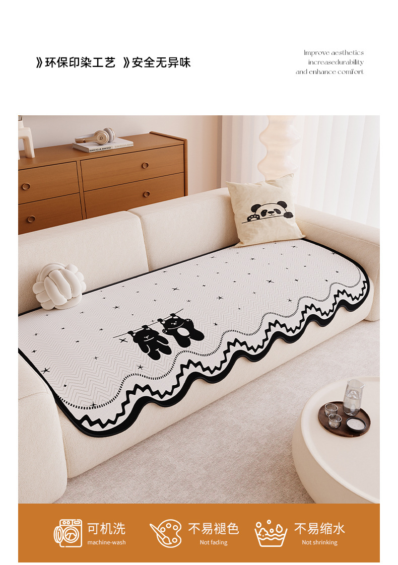 Cojín de sofá cuatro estaciones generales 2025 nuevo tipo fijo antideslizante arena de cuero lanzado cojín de tela cubierta sensación de dibujos animados de alto nivel