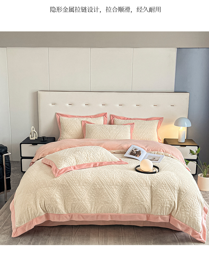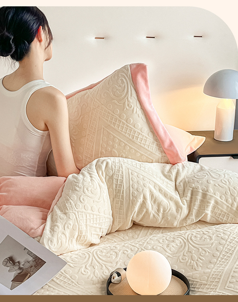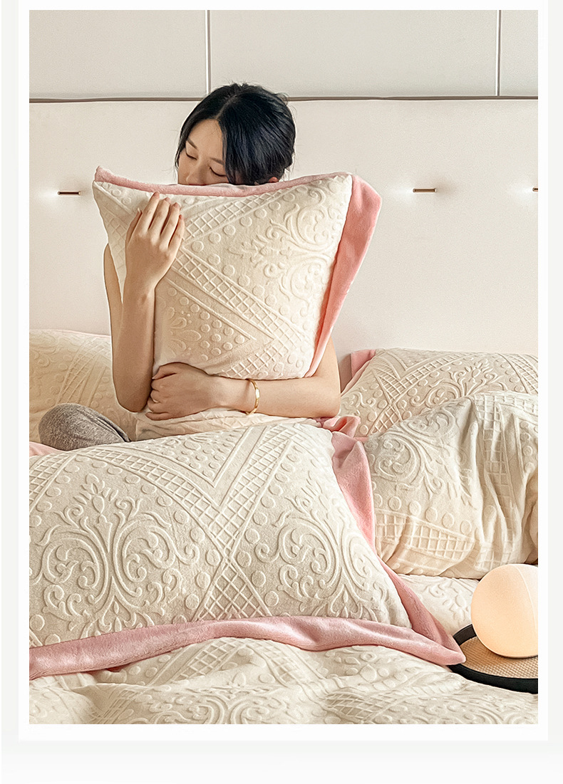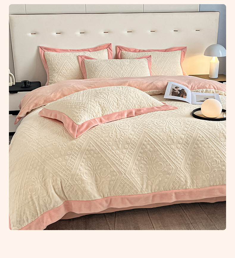 Luz de lujo tallado de leche de seda de cuatro piezas en invierno engrosado cálido coral edredón sábanas de peluche de tres piezas
