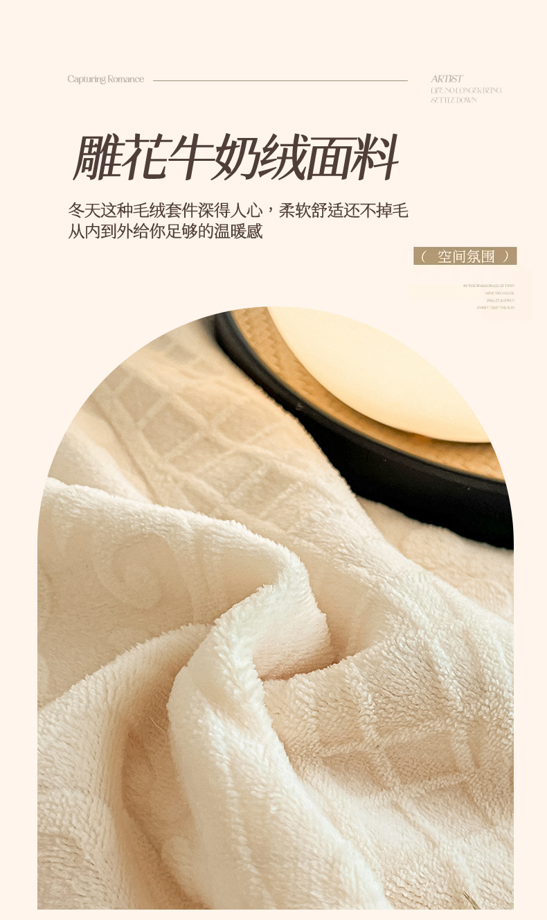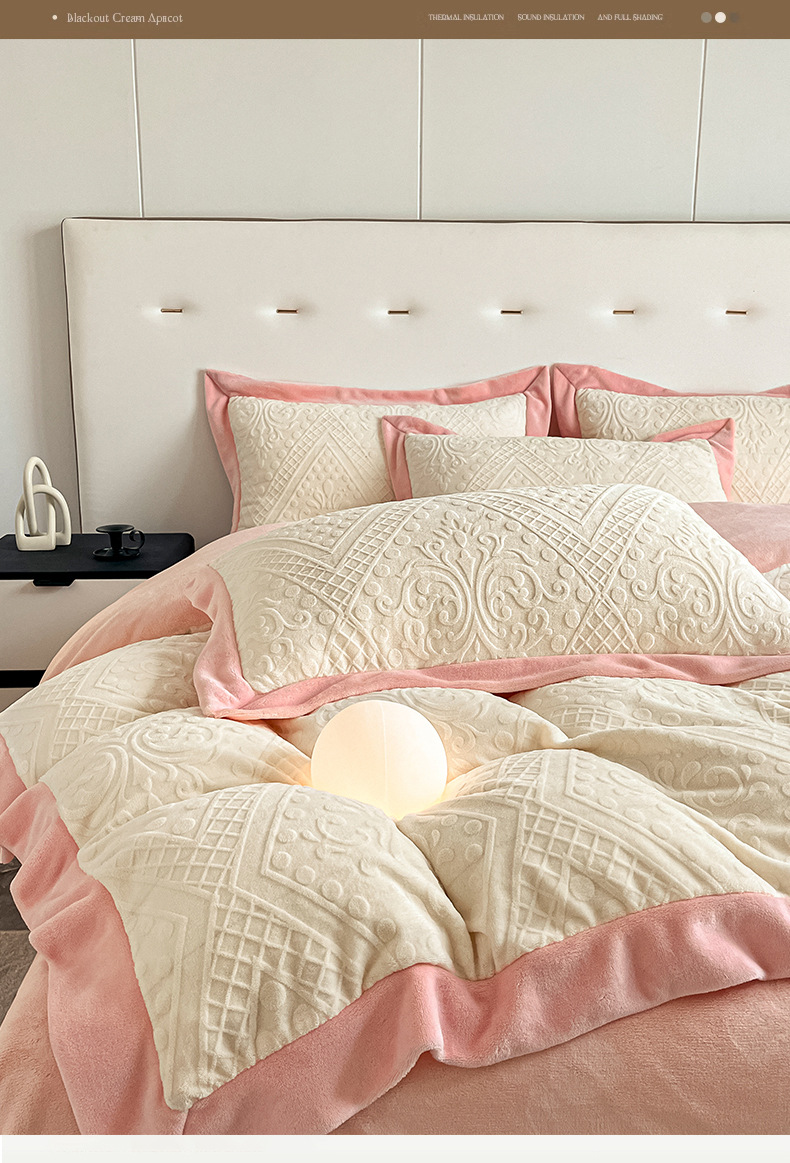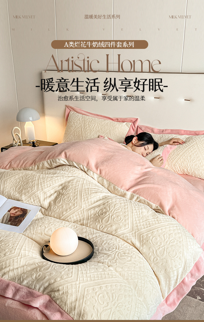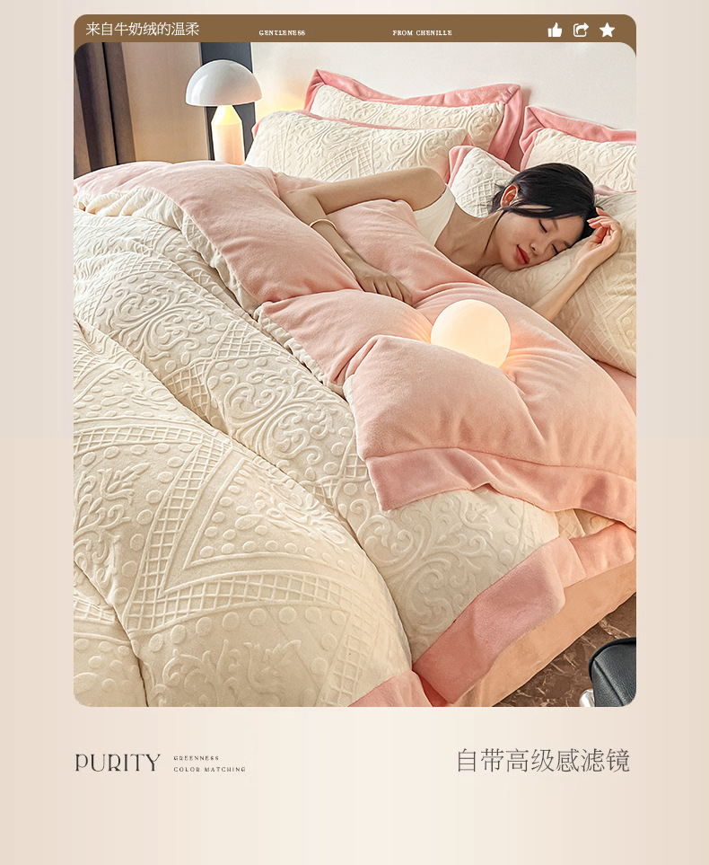 Luz de lujo tallado de leche de seda de cuatro piezas en invierno engrosado cálido coral edredón sábanas de peluche de tres piezas