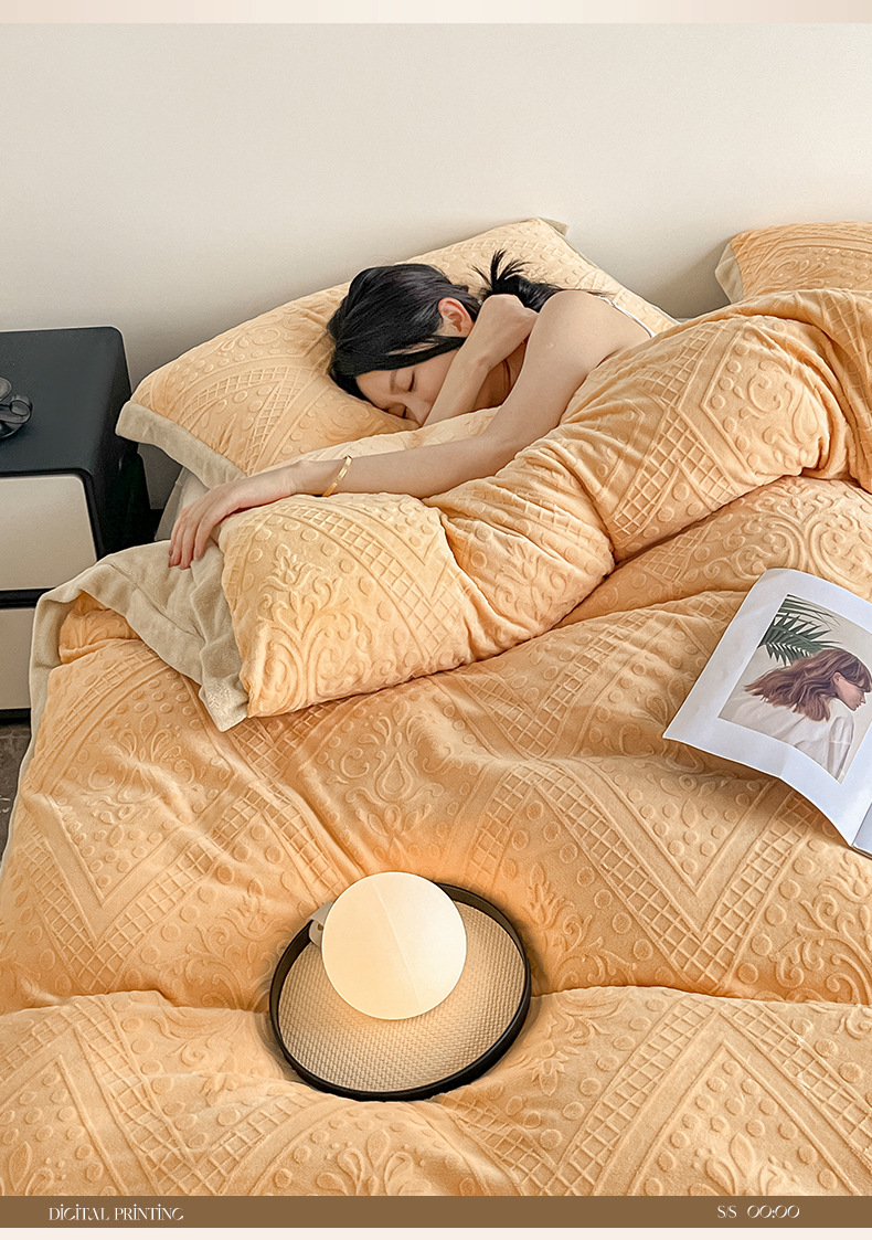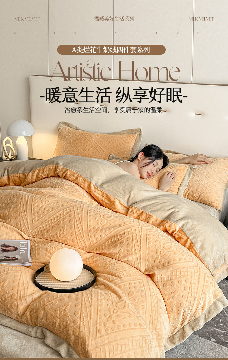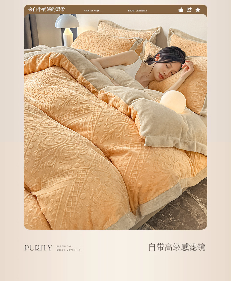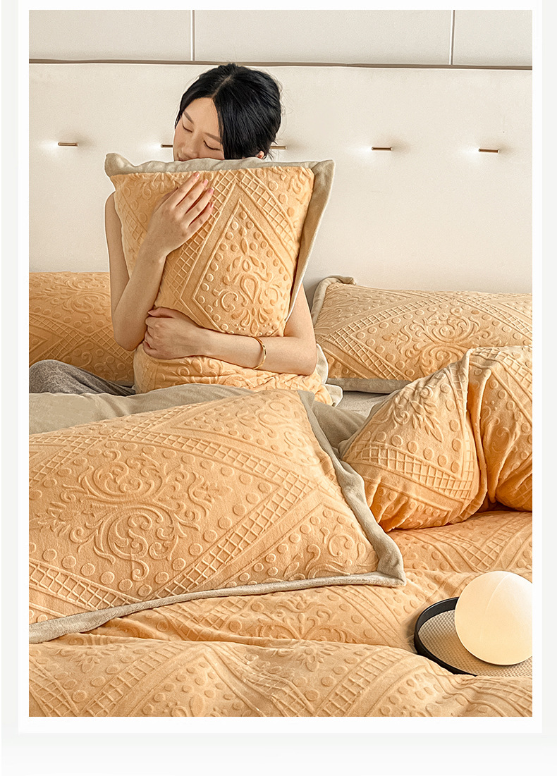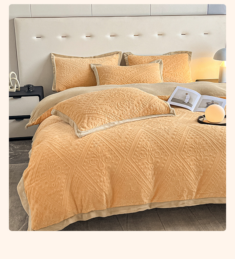 Espesado tallado de leche de lana de cuatro piezas conjunto 2025 nuevo coral lana de invierno sábanas de franela cubierta de cama