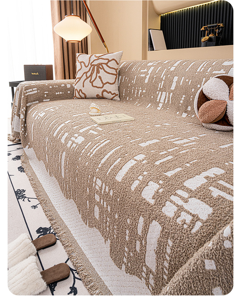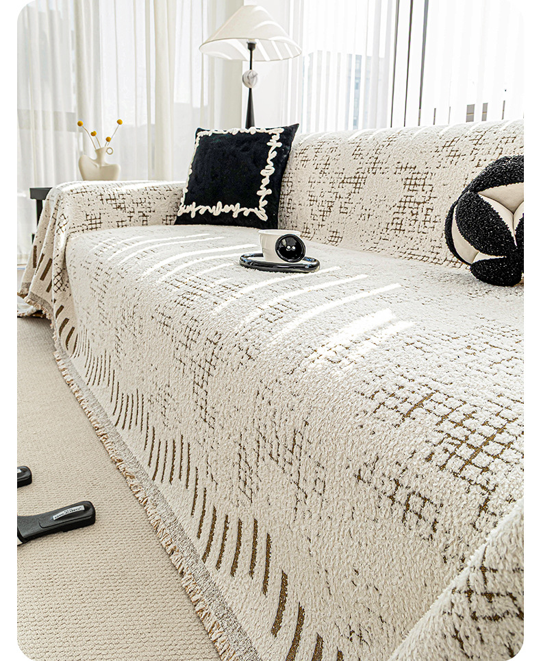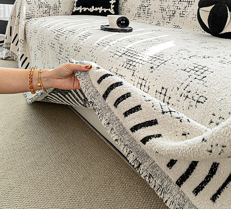 Invierno de peluche sofá cubierta de tela todo incluido, espesado antideslizante, una cubierta de sofá de cubierta completa, invierno de manta cojín