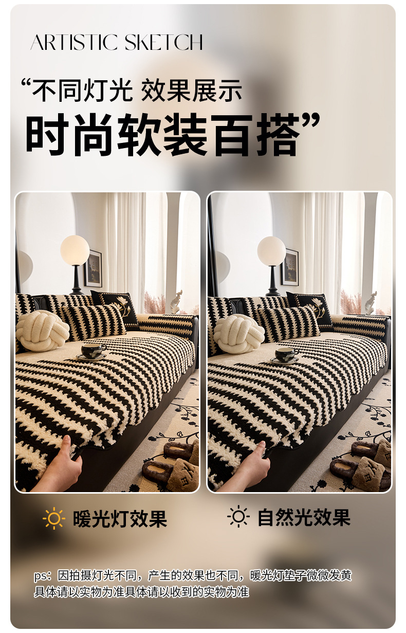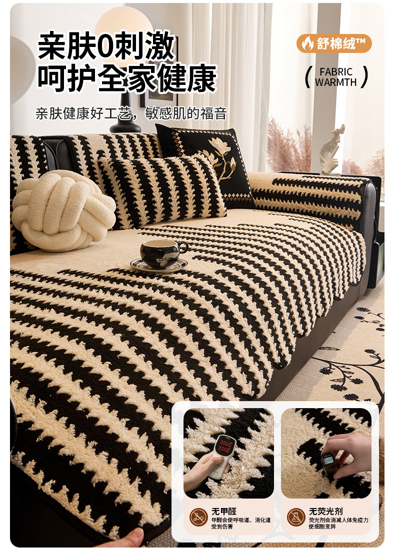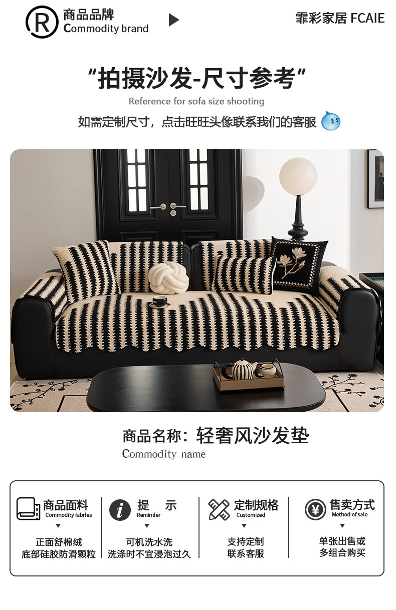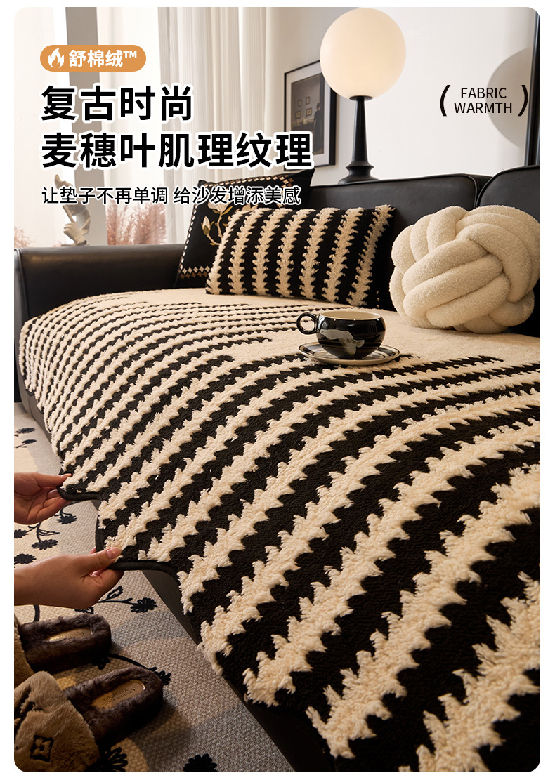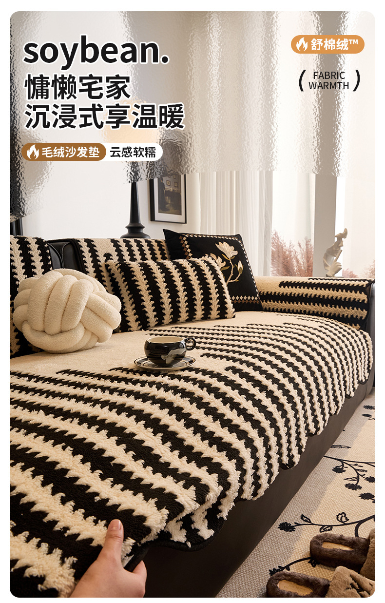 Otoño e invierno engrosado cojín de sofá de peluche 2025 nuevo tipo de forma especial línea recta cojín antideslizante toalla cubierta de sofá todo incluido