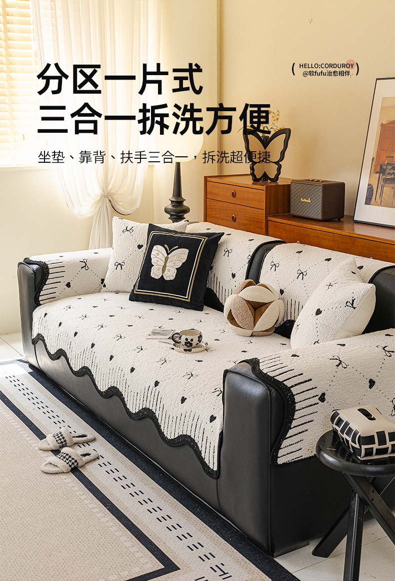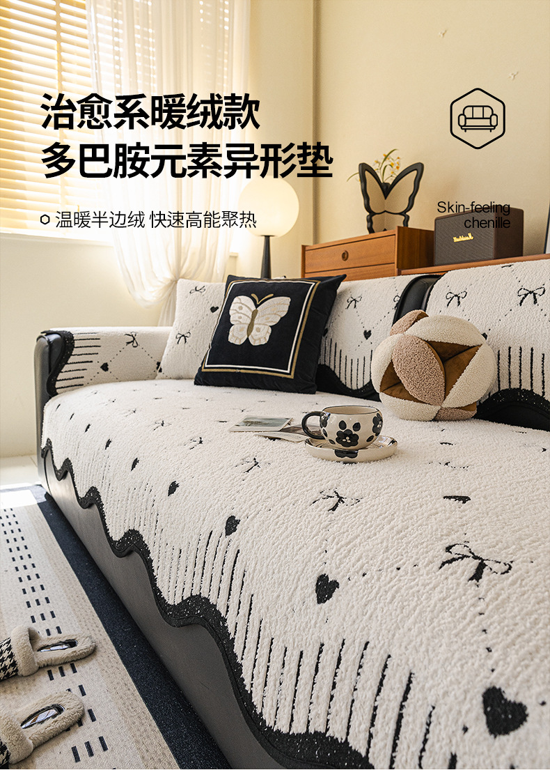 Otoño e invierno engrosado cojín de sofá de peluche 2025 nuevo invierno caliente sofá de piel recta fijo cojín antideslizante tela