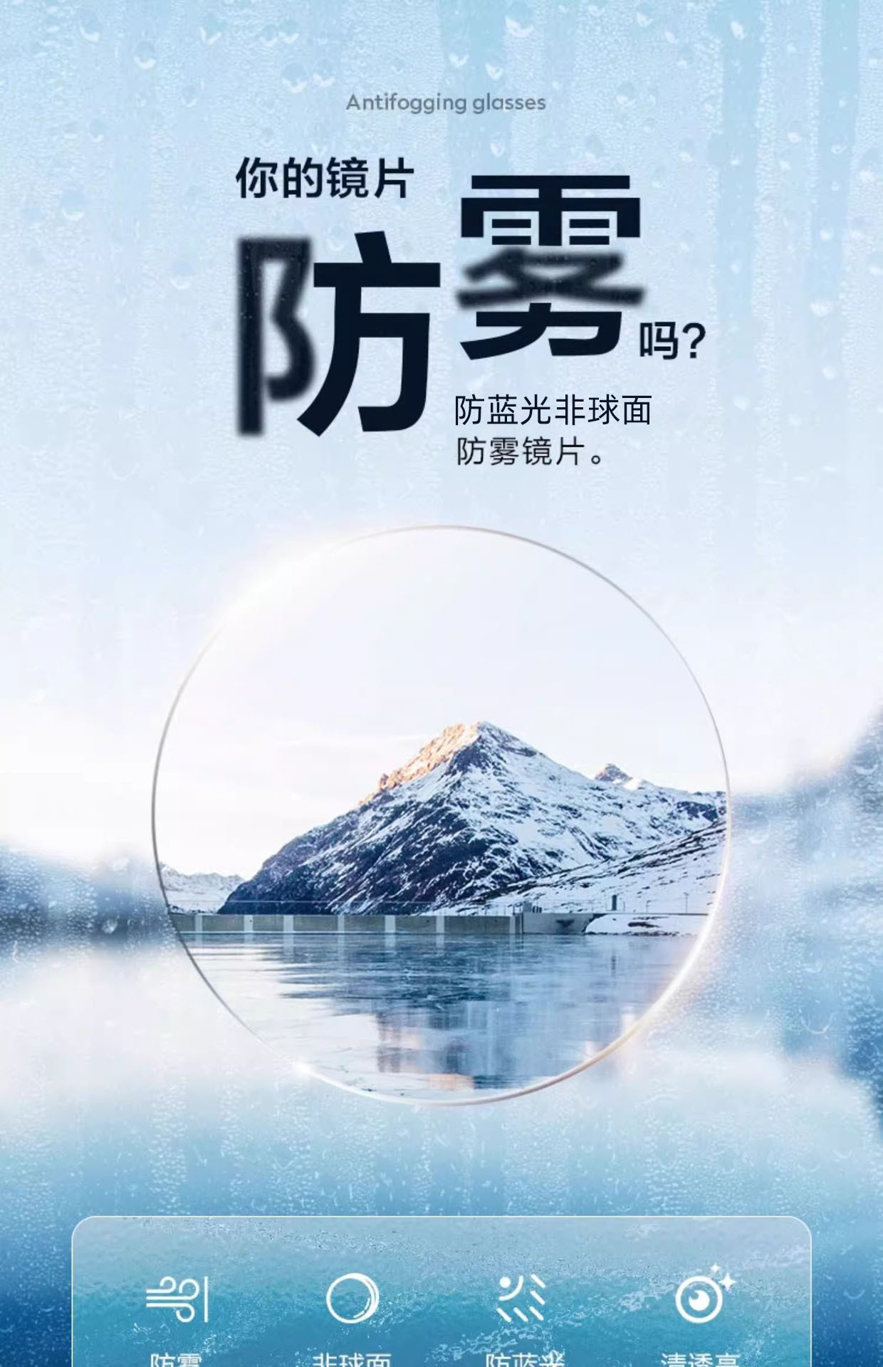1.61 Lentes anti-fog, anti-luz azul, invierno anti-fog, lentes miopes ultra delgadas, asféricas HD, lentes anti-fog AC