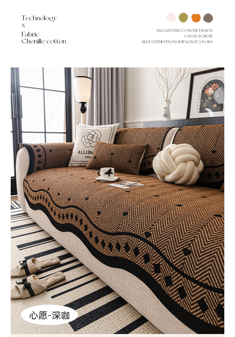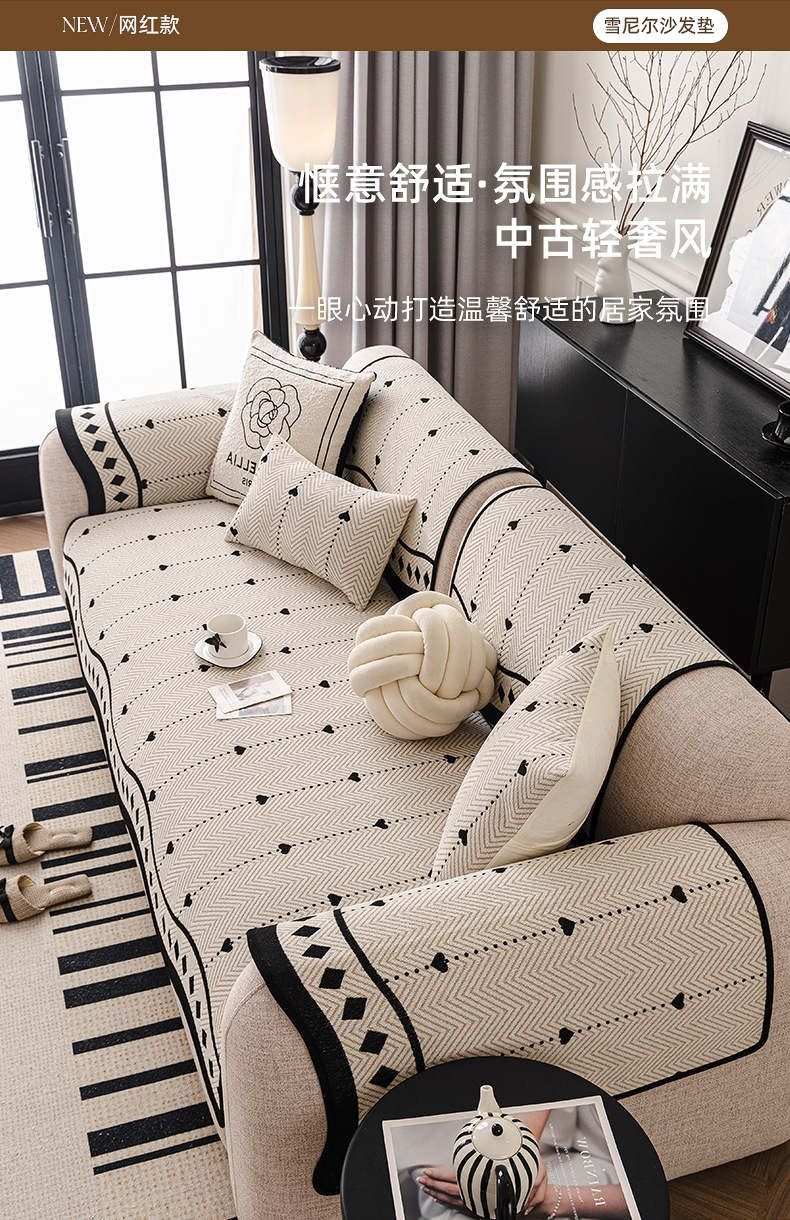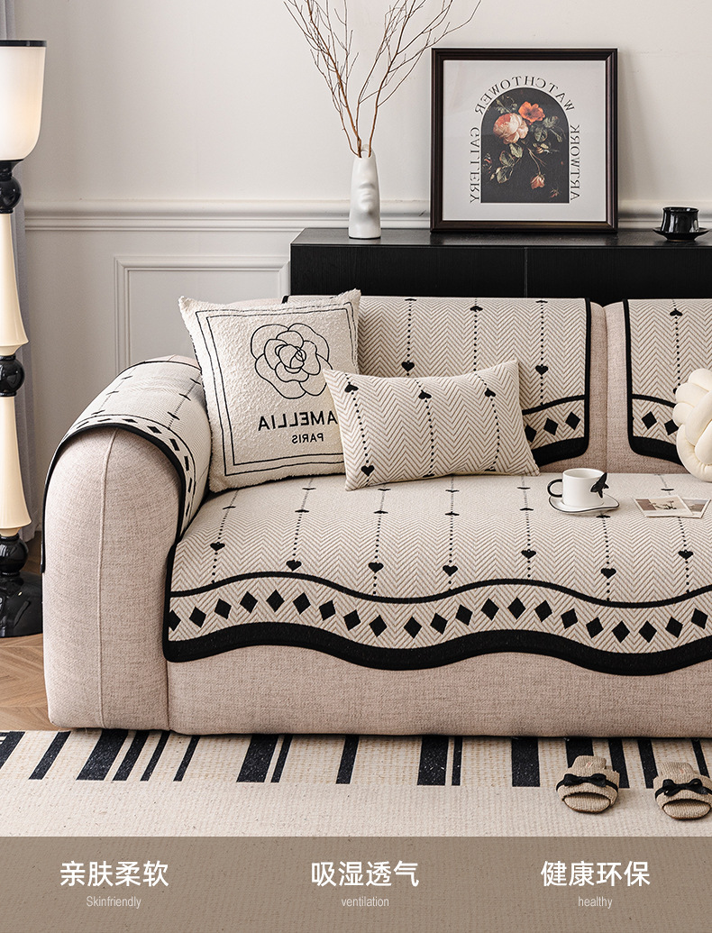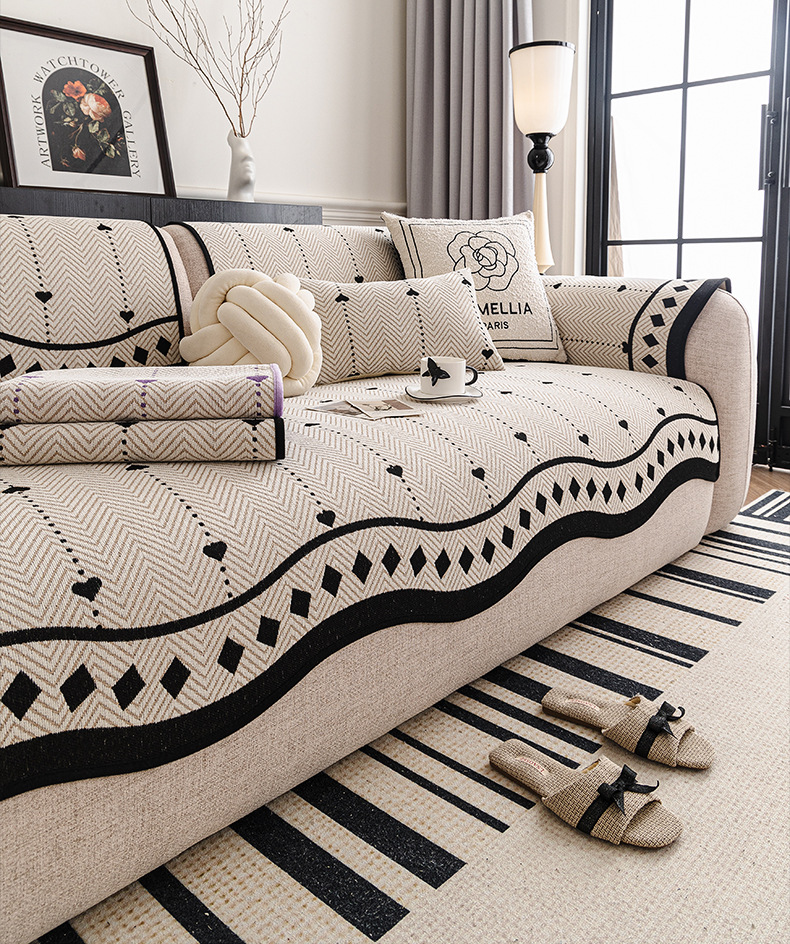 Cojín de sofá de alta calidad de cuatro estaciones generales 2025 nuevo anti-deslizante línea recta cojín de toalla de sofá de cuero