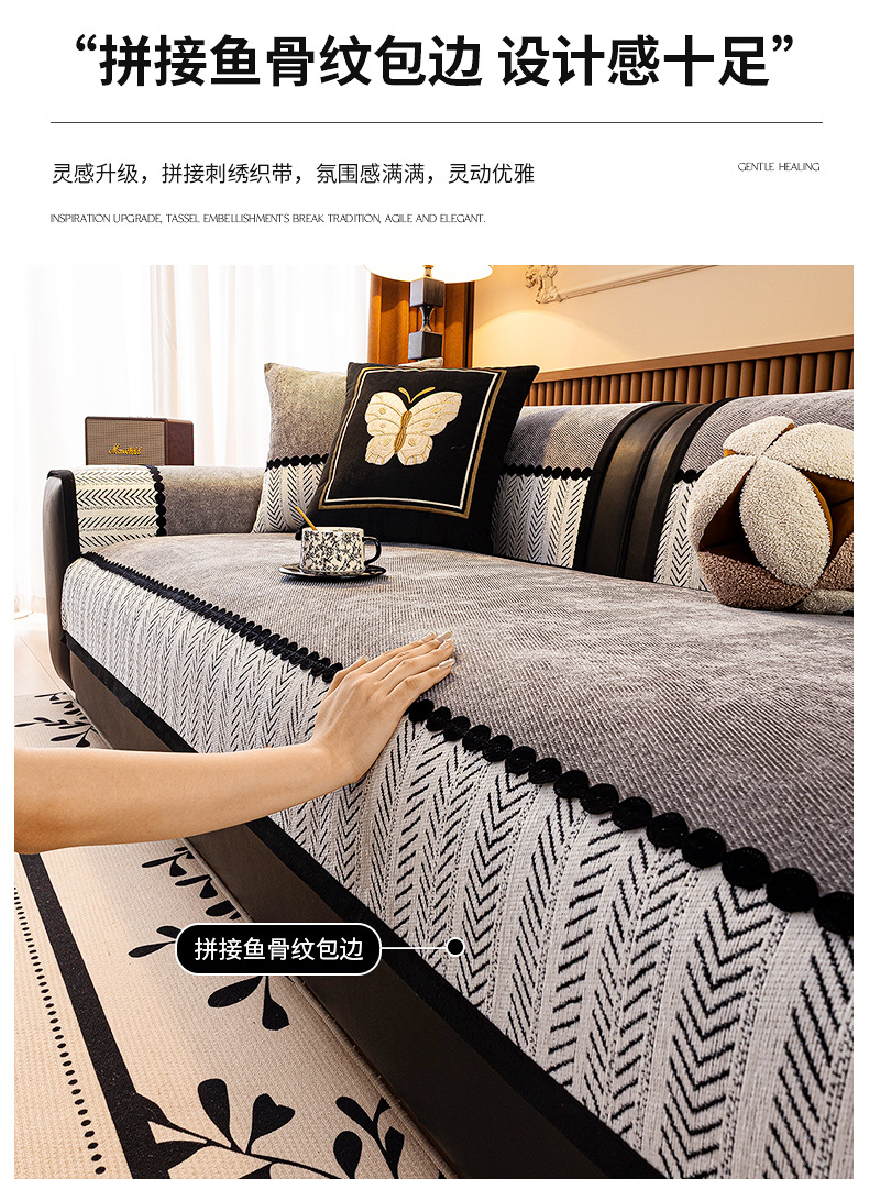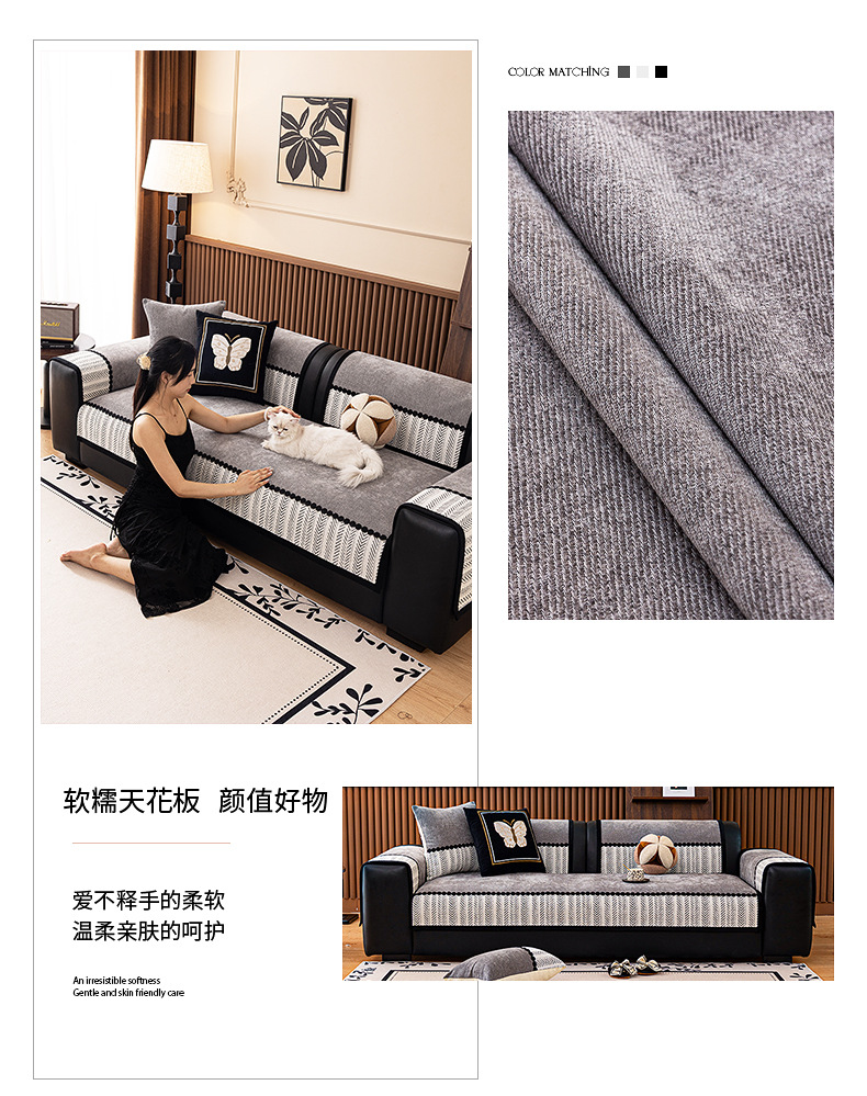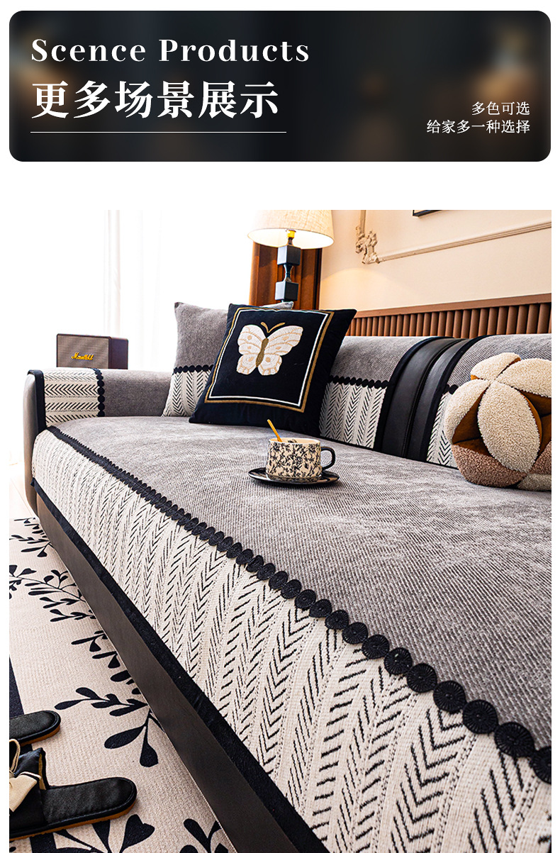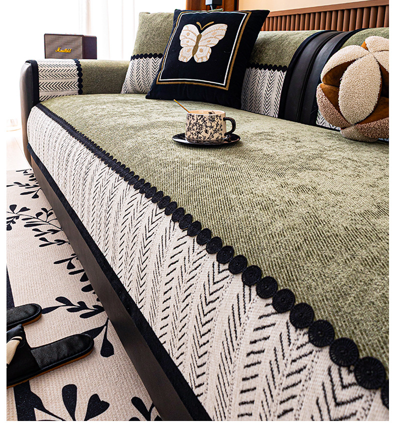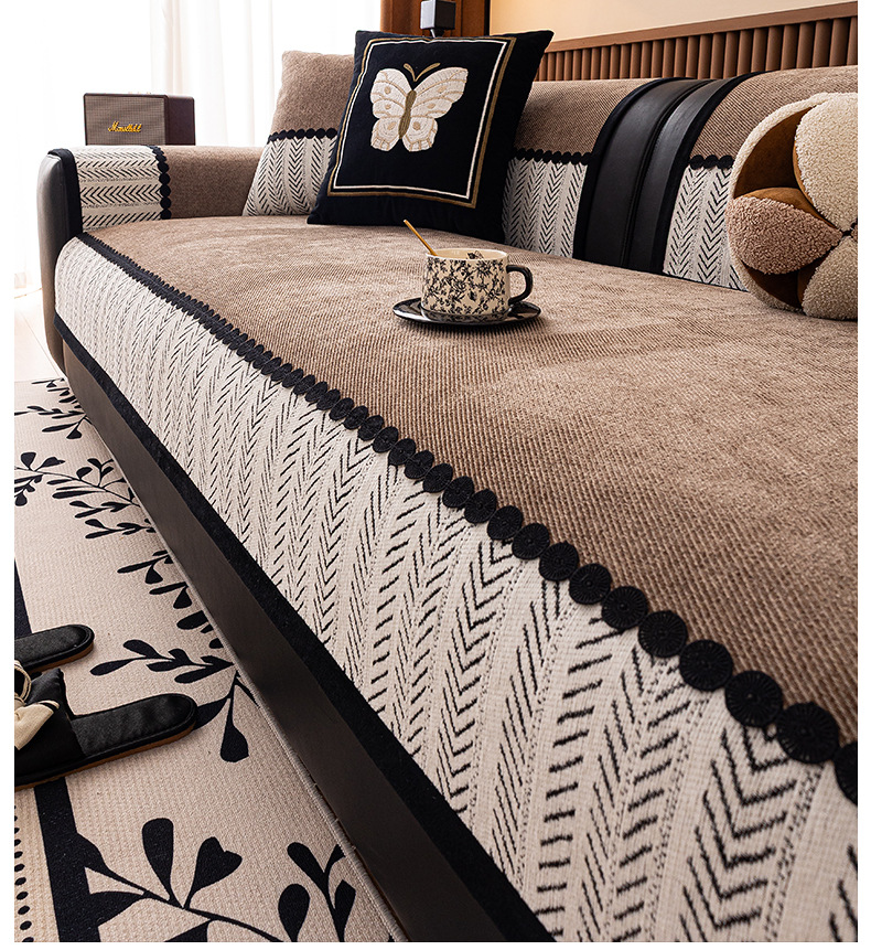 2025 nuevo cojín de sofá cuatro estaciones general Chenille ligero sofá de lujo cojín de asiento anti-deslizante cubierta de tela