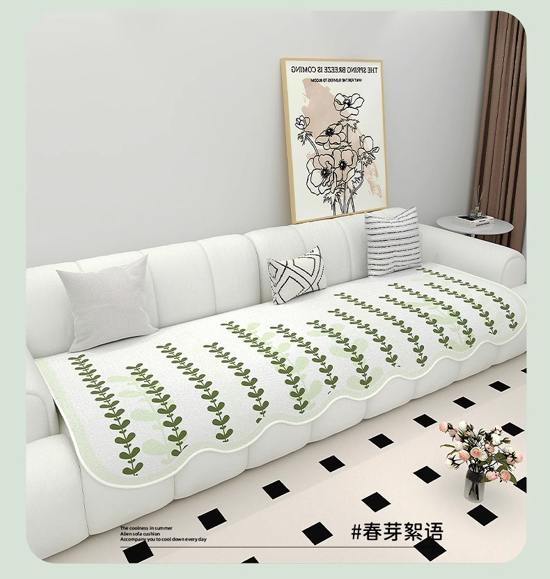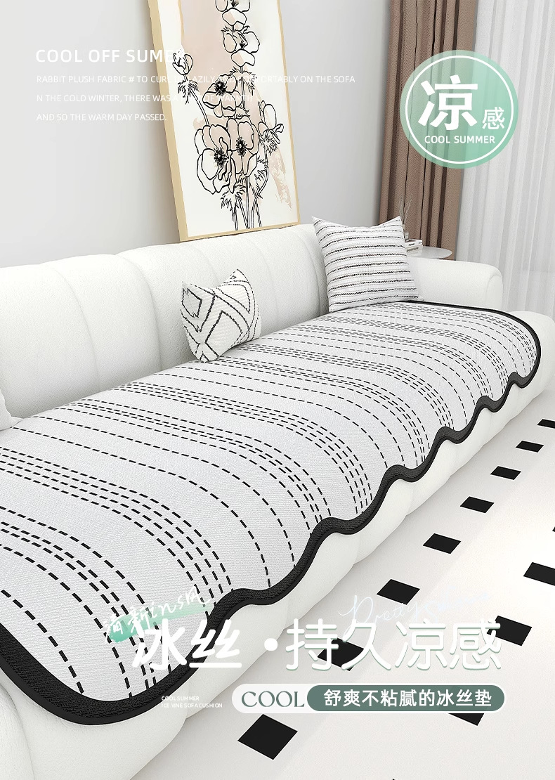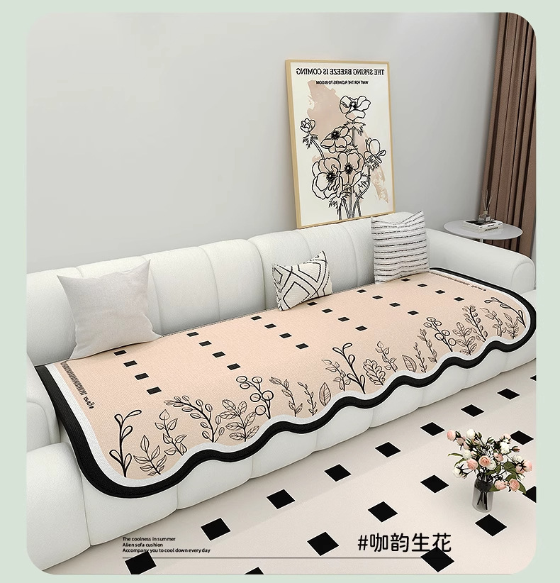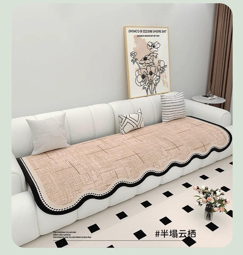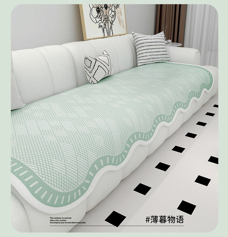 Cojín de sofá de seda de hielo de verano para uso de verano 2025 nuevo cojín de alfombra de sofá de verano, tela de cubierta de cojín antideslizante fijo