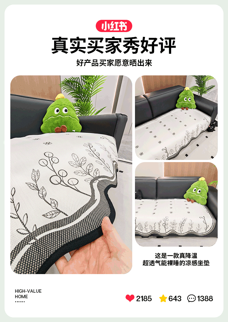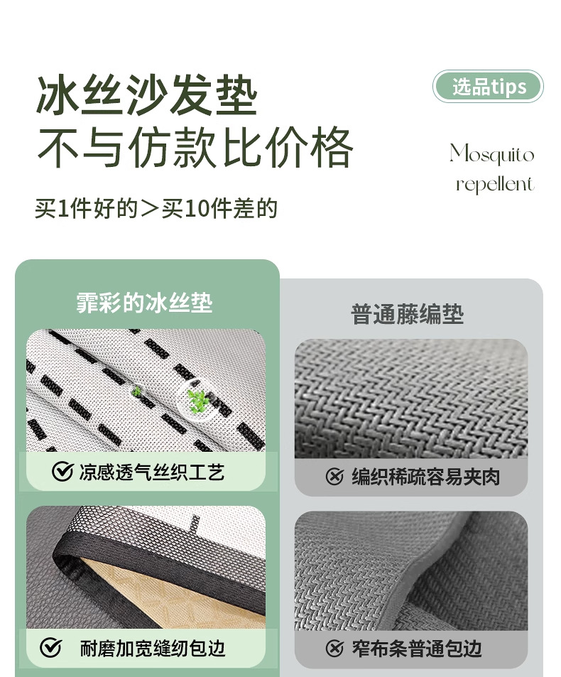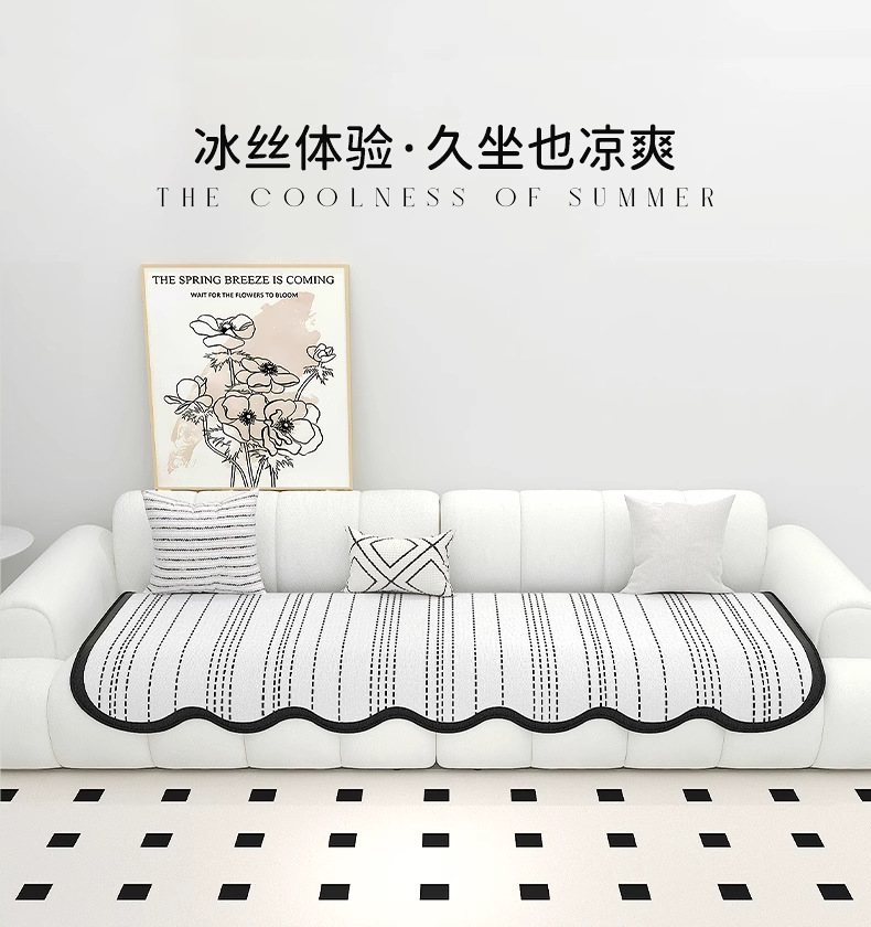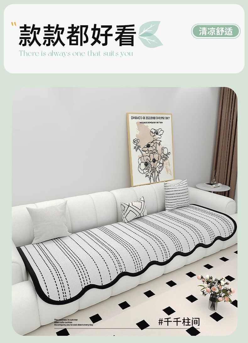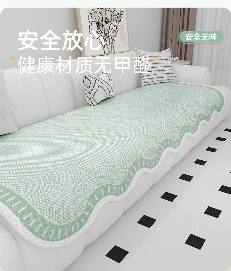 Cojín de sofá de seda de hielo de verano para uso de verano 2025 nuevo cojín de alfombra de sofá de verano, tela de cubierta de cojín antideslizante fijo
