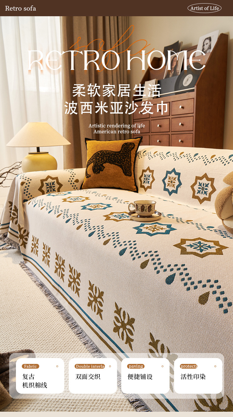 American retro toalla de sofá de una sola pieza cuatro estaciones generales 2025 nuevo todo incluido cojín antideslizante recto universal