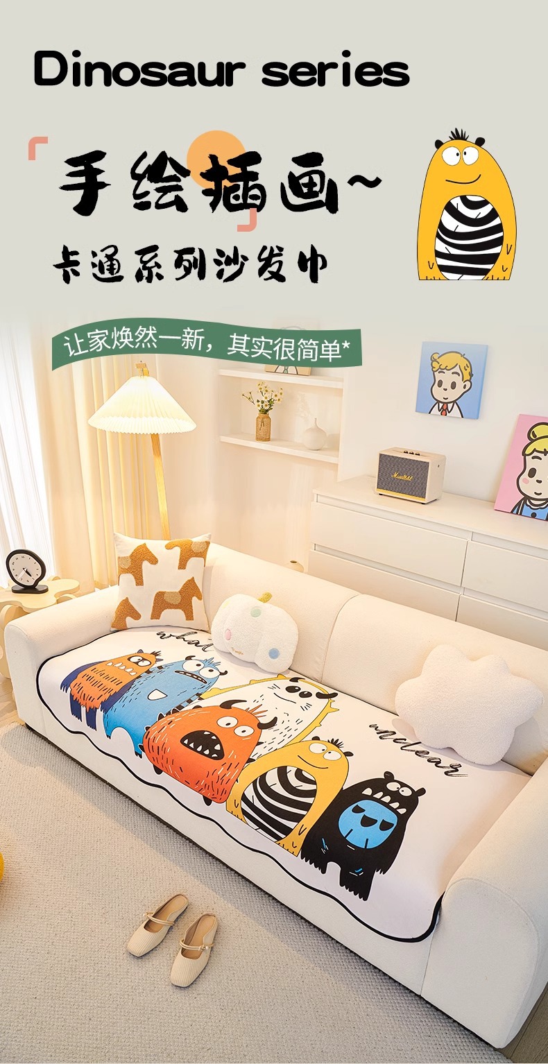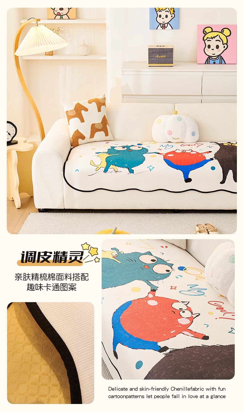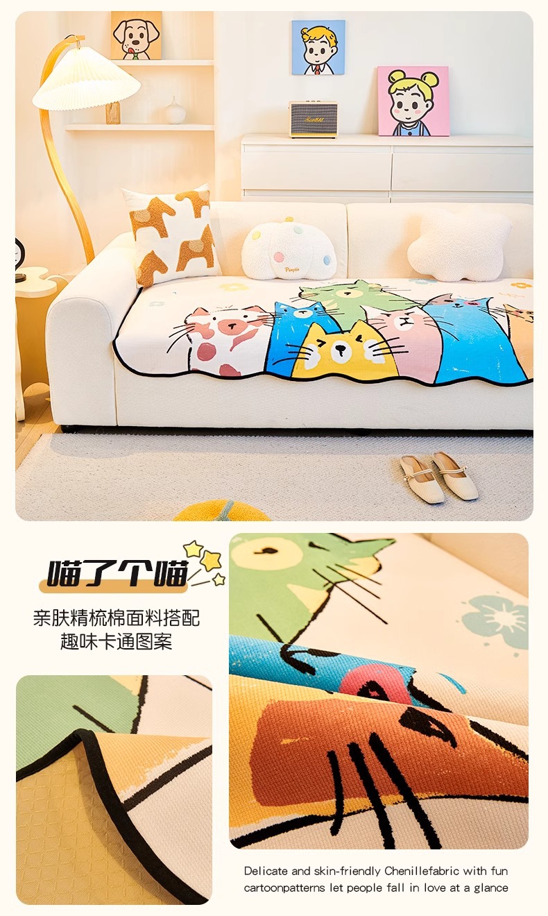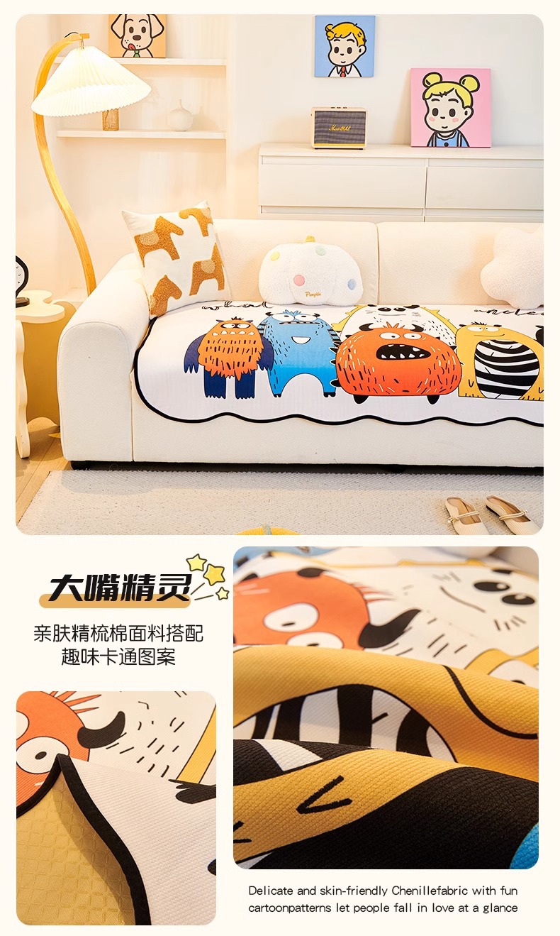 2025 nuevo sofá de forma especial cojín de sofá de cuatro estaciones cojín de dibujos animados antideslizante sofá cubierta toallas