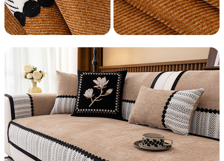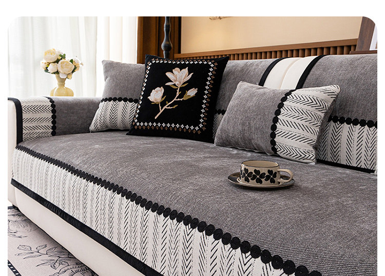 Alta sensación de sofá de estilo medieval 2024 nuevo cojín de cojín de cuatro estaciones general Schneider fijo antideslizante cubierta de tela