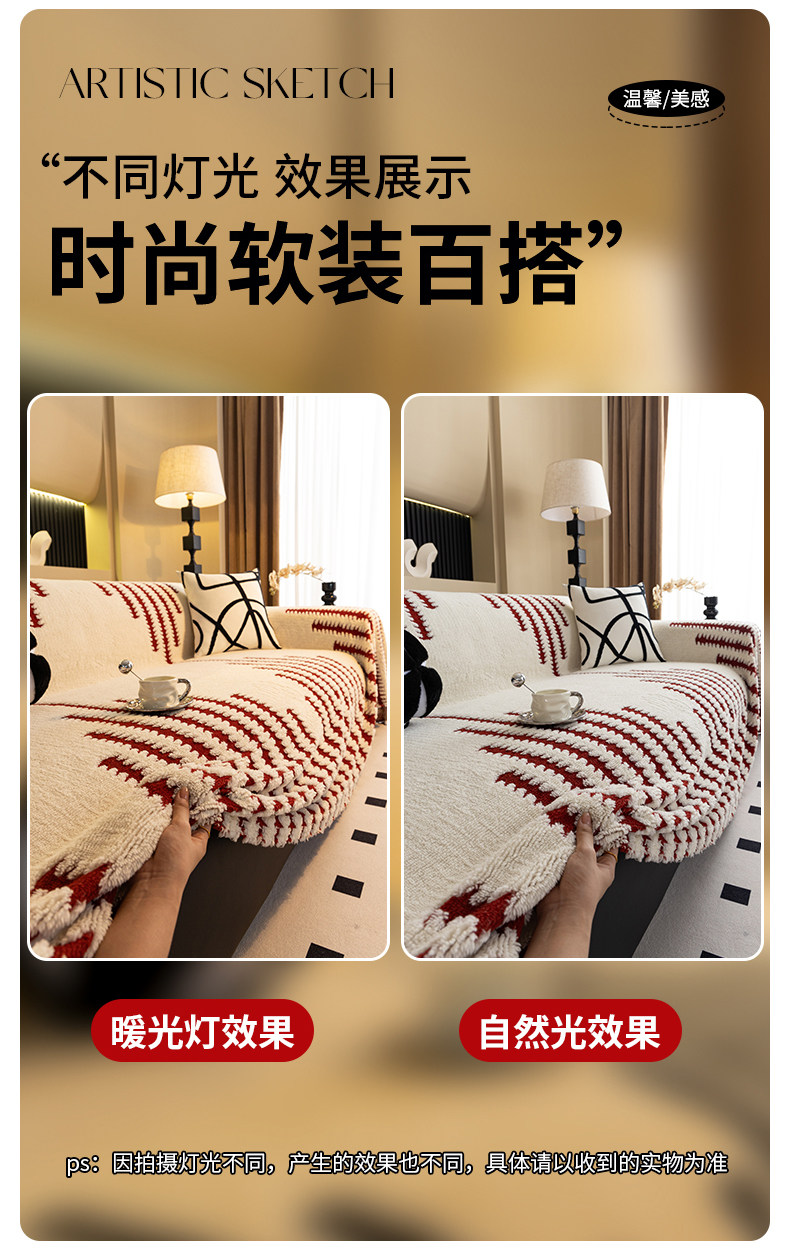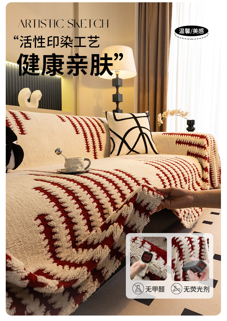 Año Nuevo rojo sensación de atmósfera sofá toalla de peluche otoño invierno 2024 nuevo todo incluido recto cojín antideslizante cubierta