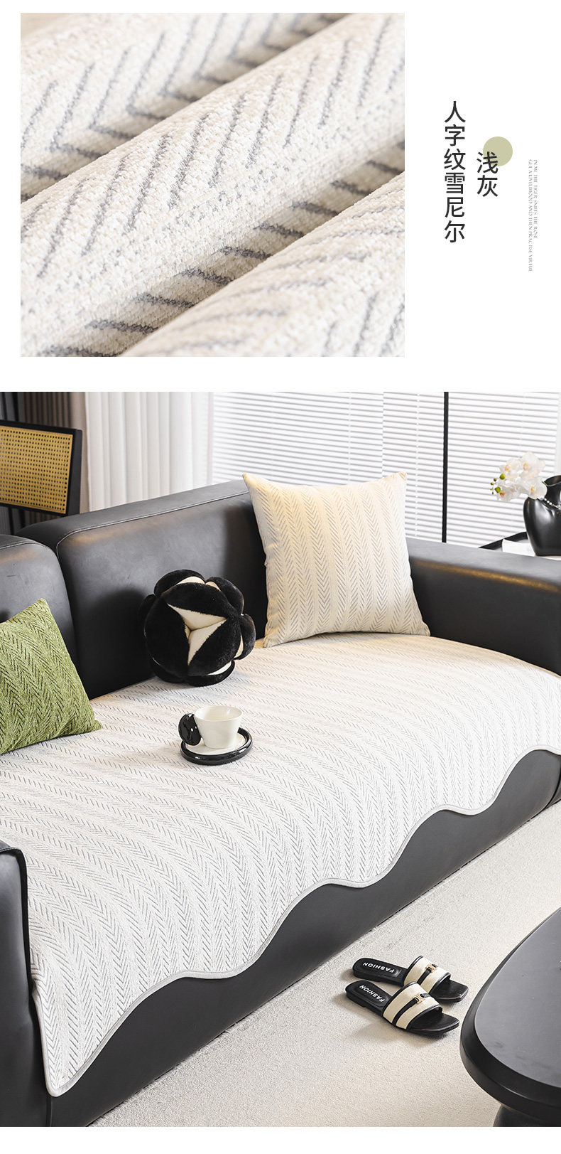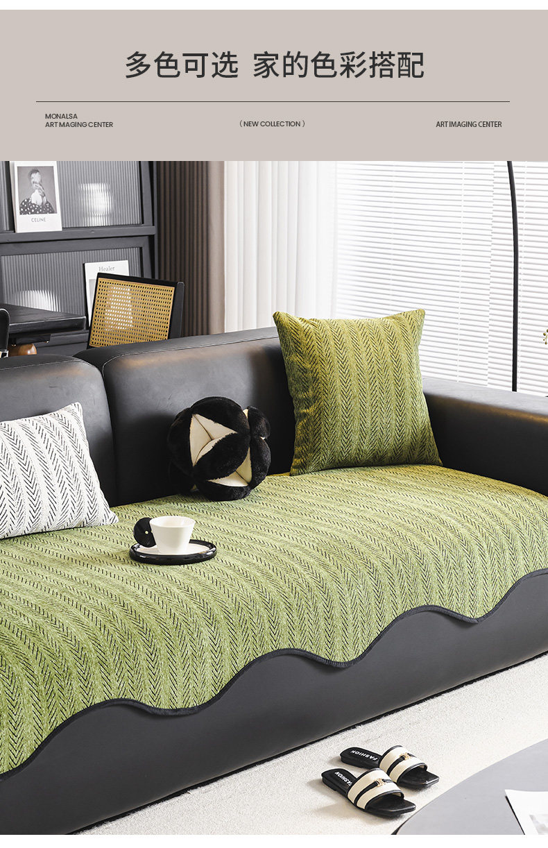 Luz de lujo de alto nivel sensación sofá cojín de invierno antideslizante cojín de sofá de cuero recto cuatro estaciones generales 2024 nueva toalla de tela