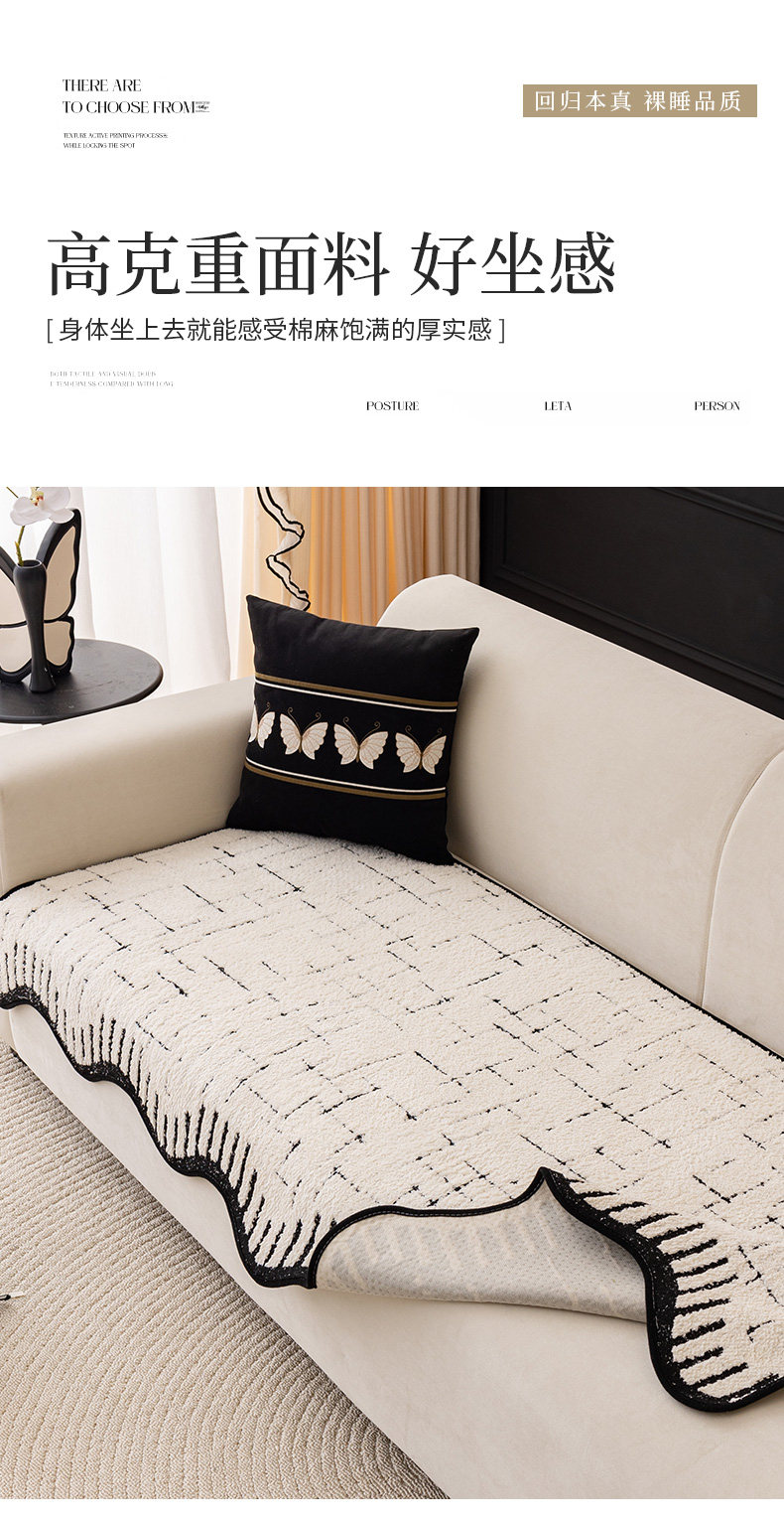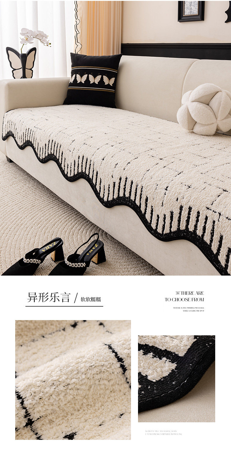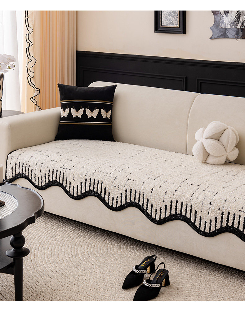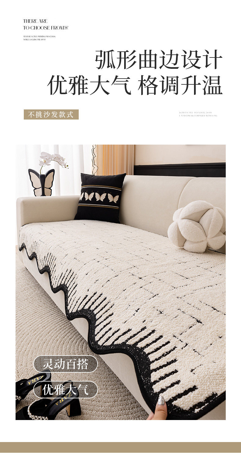 Alta sensación de cojín de sofá otoño y invierno 2024 nuevo tipo de peluche de una pieza de fila recta cojín antideslizante sofá cubierta
