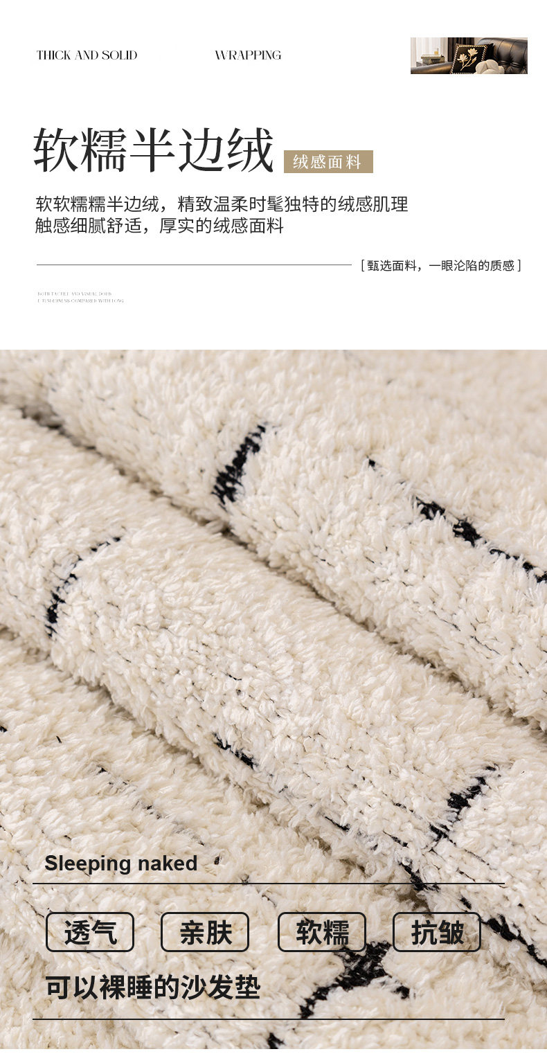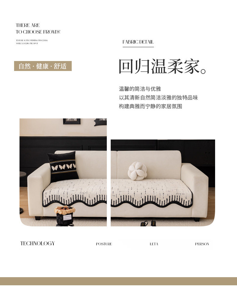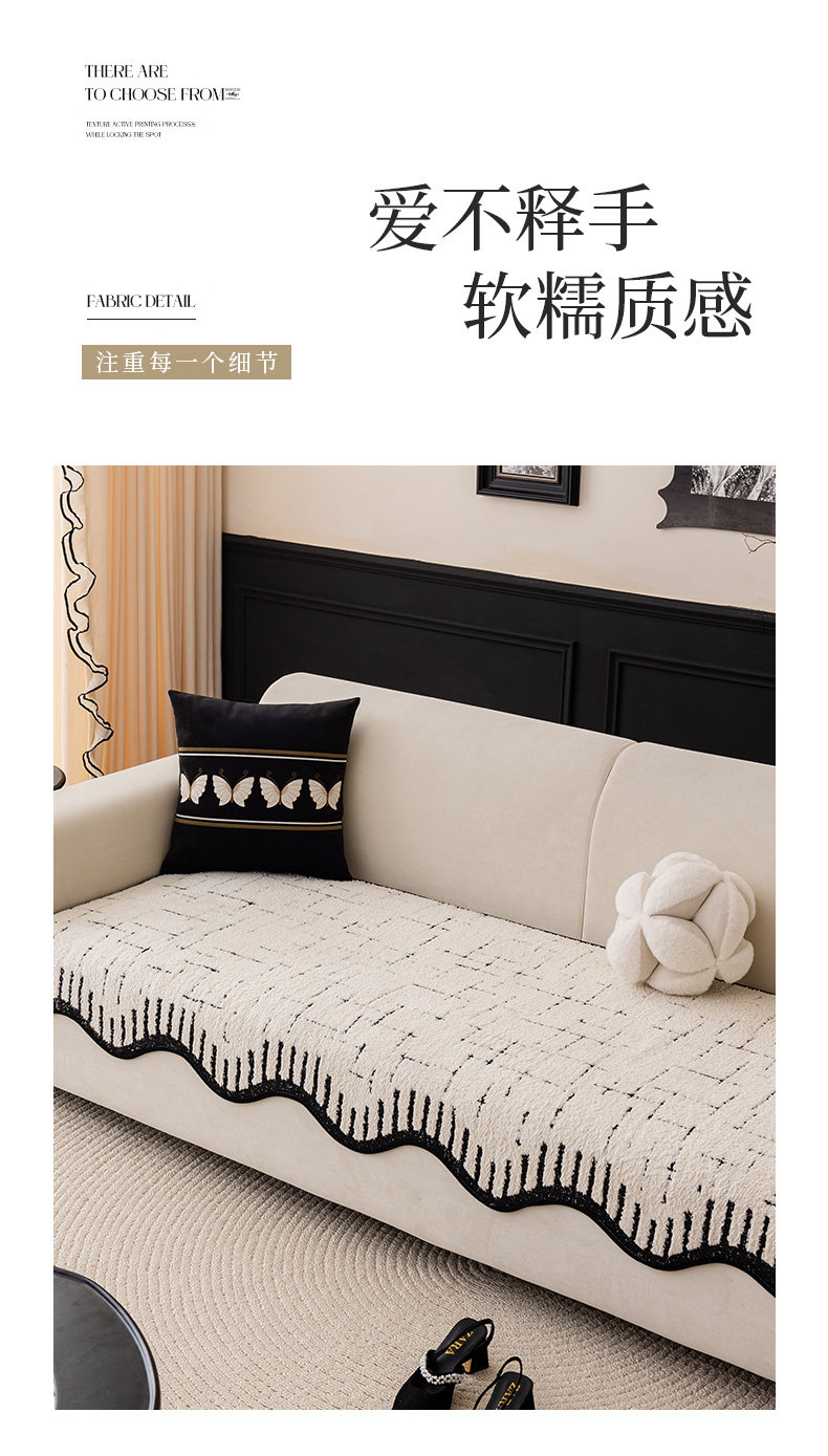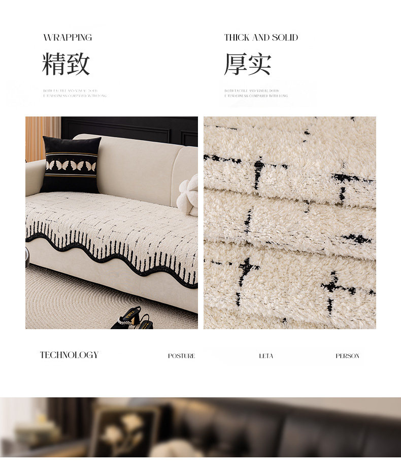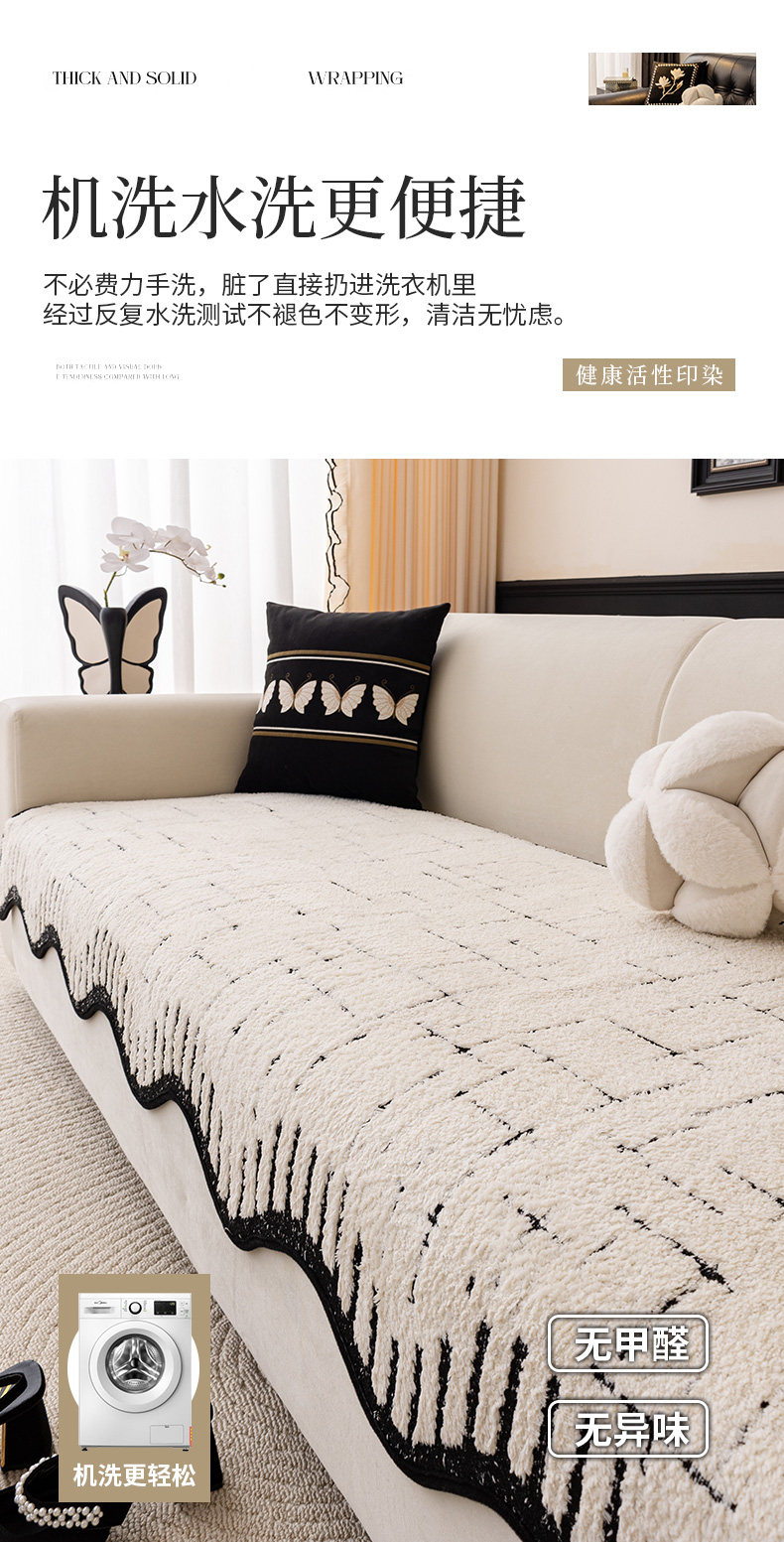 Alta sensación de cojín de sofá otoño y invierno 2024 nuevo tipo de peluche de una pieza de fila recta cojín antideslizante sofá cubierta