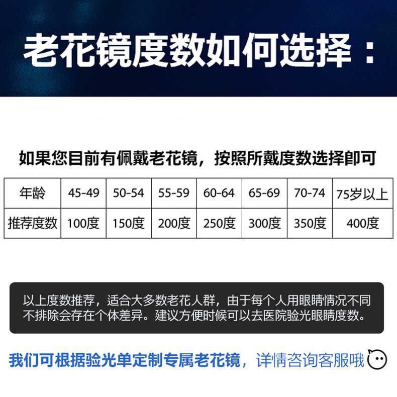 | Grado | Lentes de alta definición alrededor de 45 años [Lao Hua 100 grados], lentes de alta definición alrededor de 50 años [Lao Hua 150 grados], lentes de alta definición alrededor de 55 años [Lao Hua 200 grados], lentes de alta definición alrededor de 60 años [Lao Hua 250 grados], lentes de alta definición alrededor de 65 años [Lao Hua 300 grados], lentes de alta definición alrededor de 70 años [Lao Hua 350 grados], lentes de alta definición alrededor de 75 años [Lao Hua 400 grados] Lentes de alta definición |