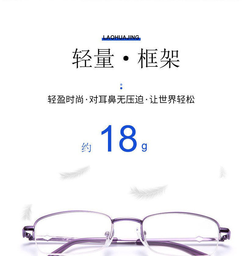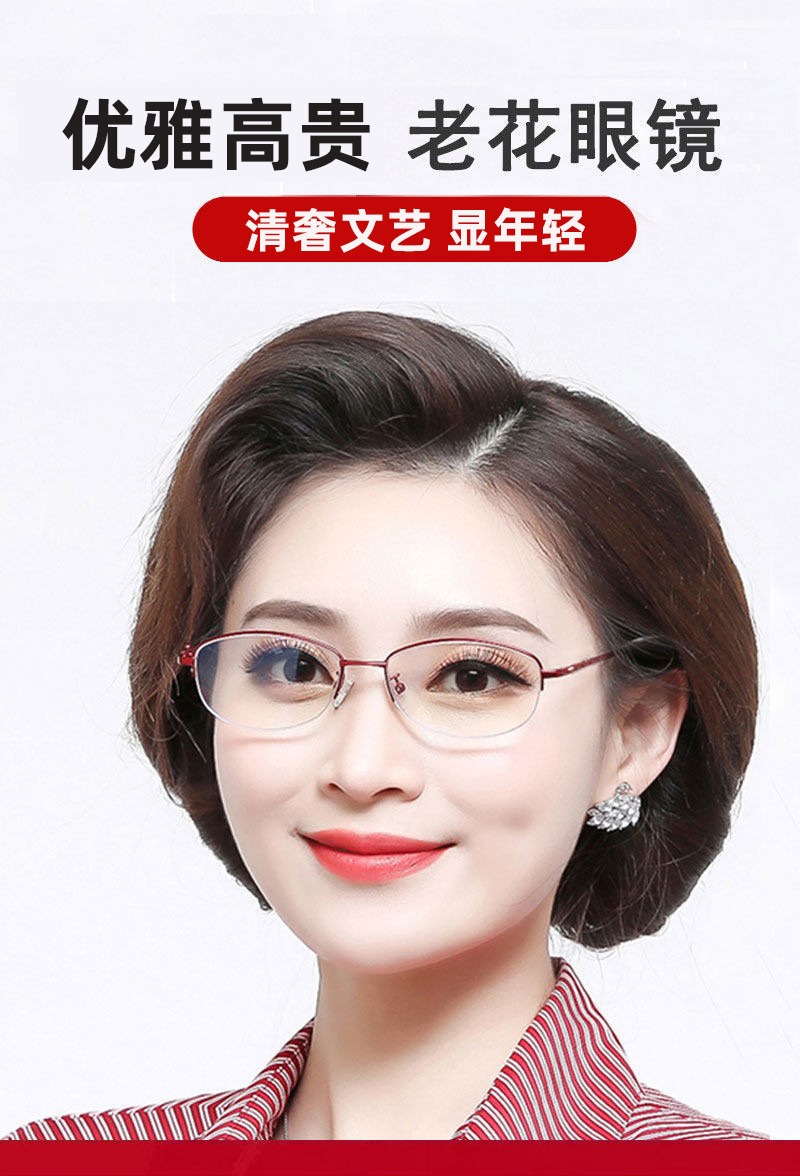 Arte y literatura de medio marco anti-luz azul gafas de edad 50 a 60 años de edad muestran temperamento joven de alta calidad gafas de protección de ojos de edad media y vieja