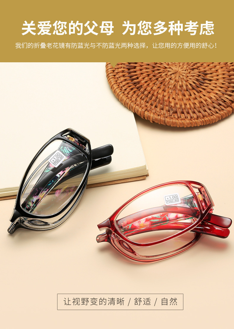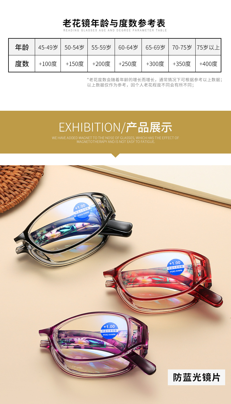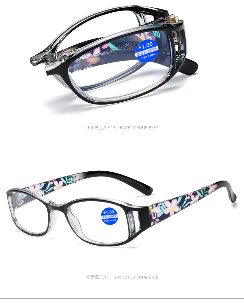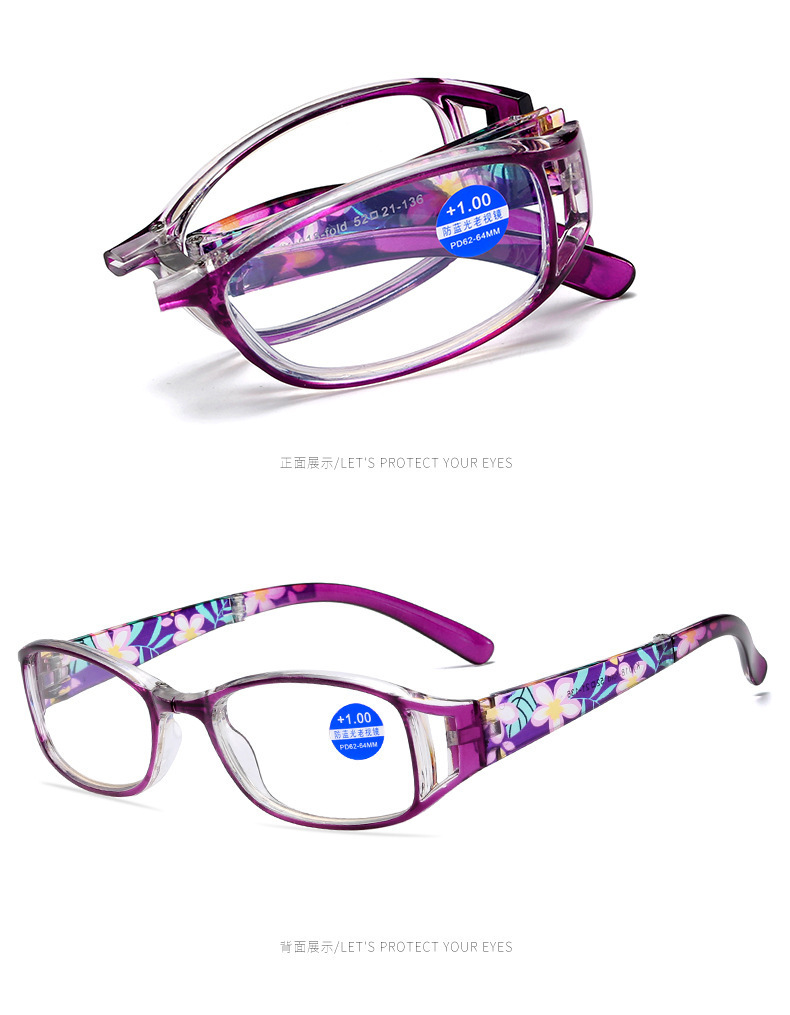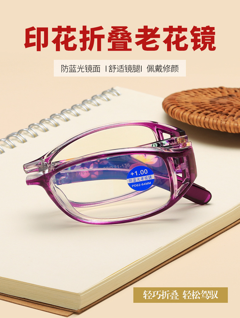 Nueva impresión portátil plegable moda ultra ligera y elegante confortable resina anti-luz azul gafas de edad alta definición