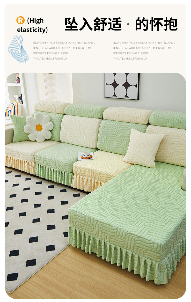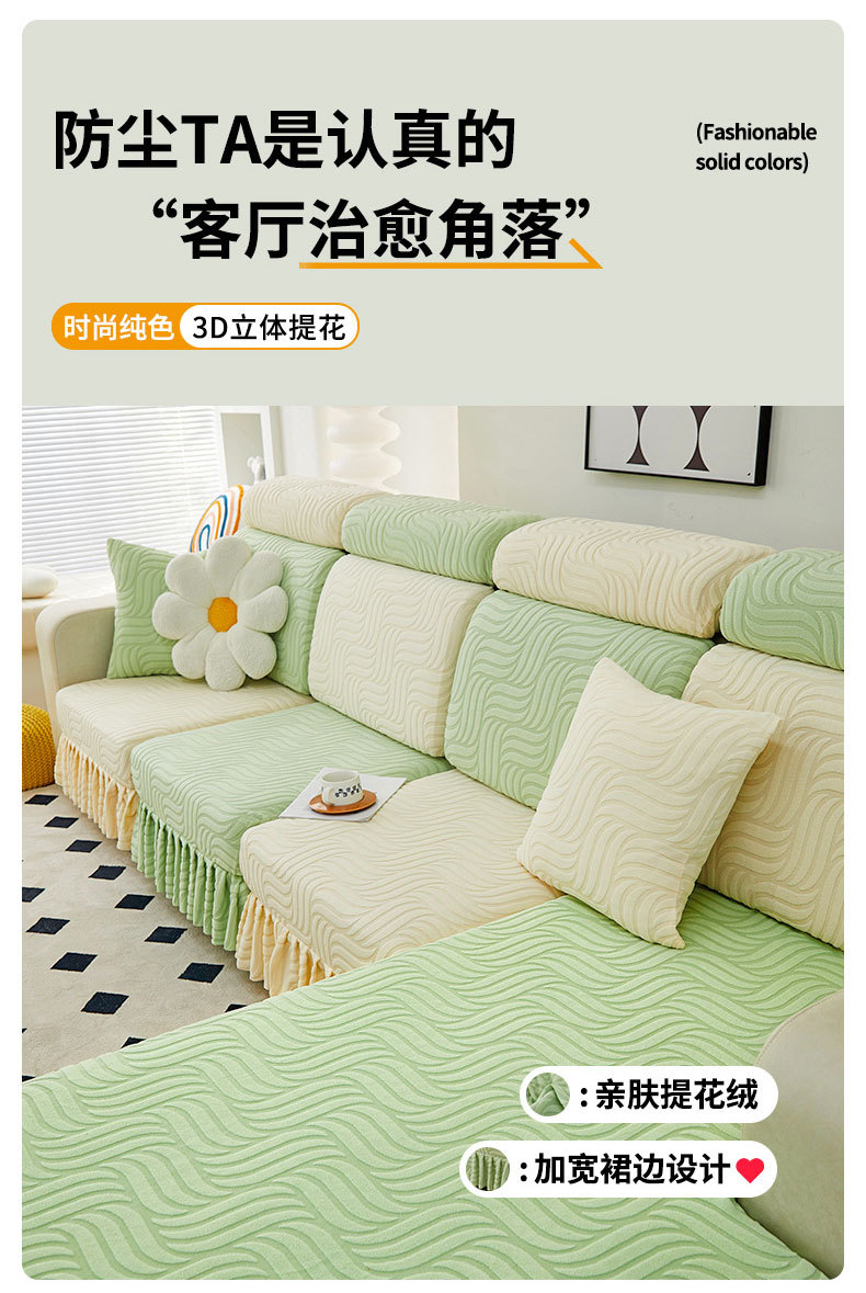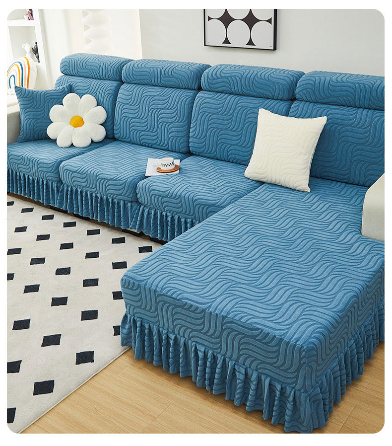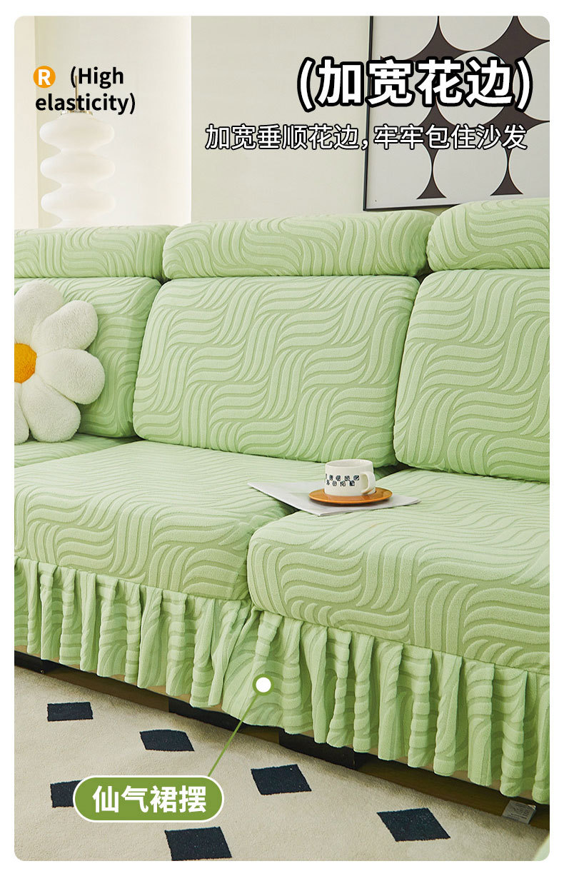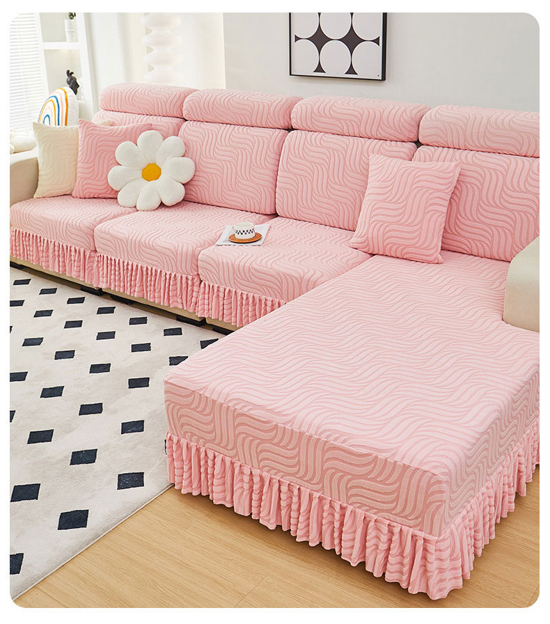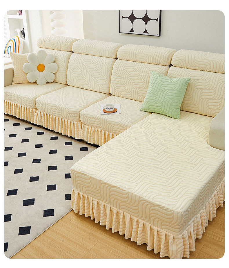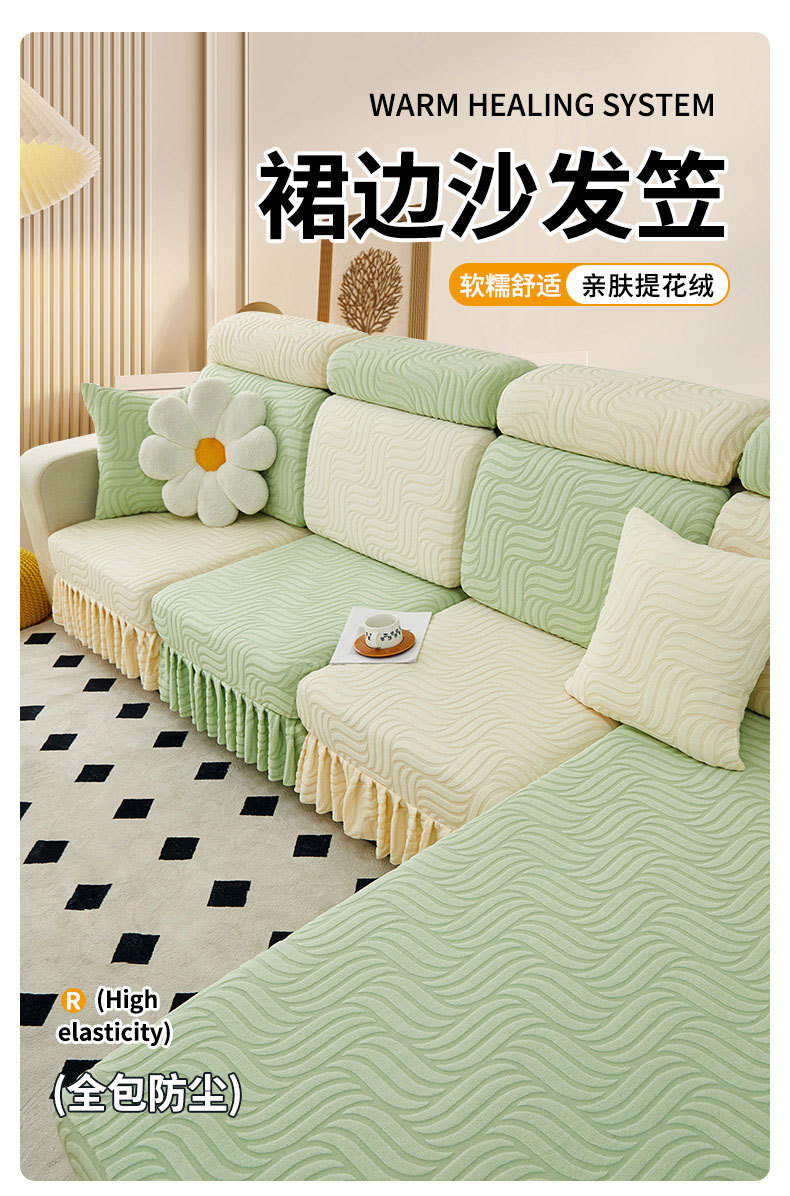 Cubierta de sofá de terciopelo de grano de agitación cubierta completa nueva falda simple elástica cuatro estaciones general sofá de princesa a prueba de polvo