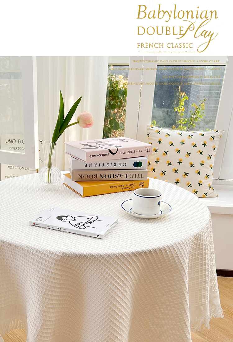 Manto de mesa estilo francés manto de mesa redondo sala de estar nórdica simple blanco ligero lujoso alto sentido cuadrado manto de mesa de té