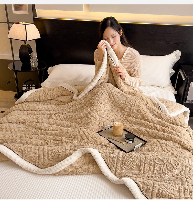 Comercio exterior transfronterizo tallado mantas de peluche gruesas sofá siesta cubierta mantas sábanas de peluche de coral manta pequeña al por mayor