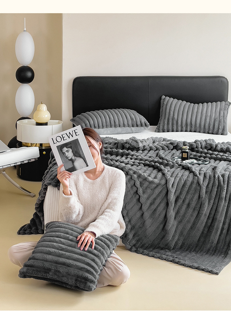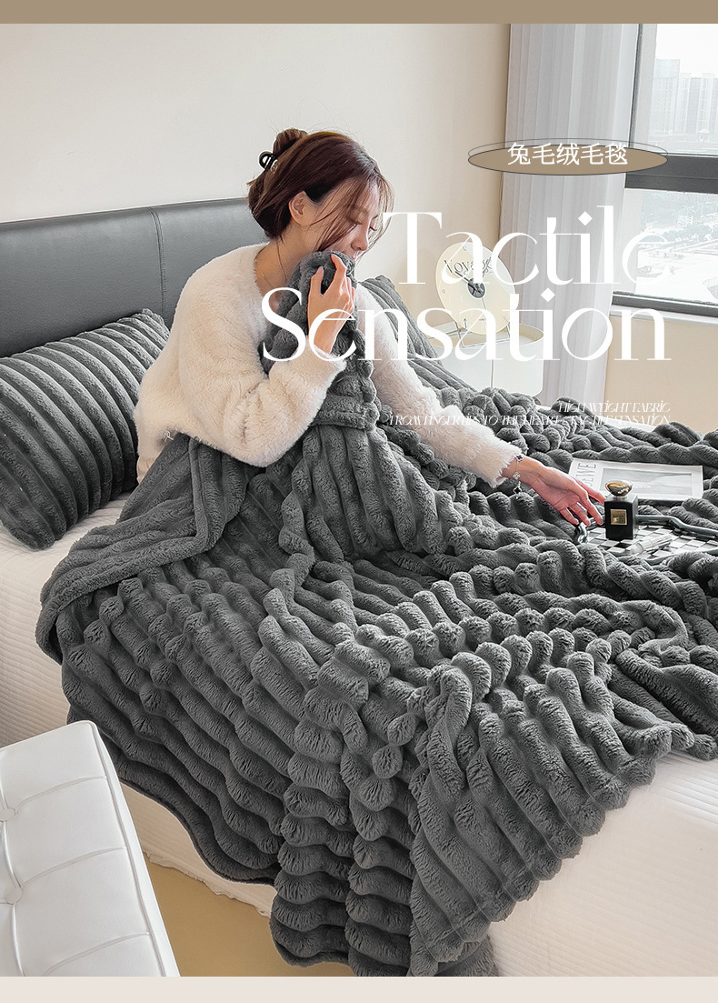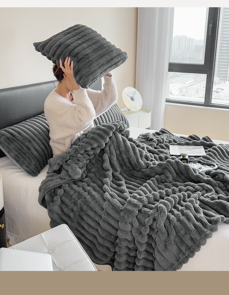 Sábanas de peluche de conejo otoño y invierno engrosadas mantas de peluche de coral dormitorio una sola colcha de tres piezas con peluche