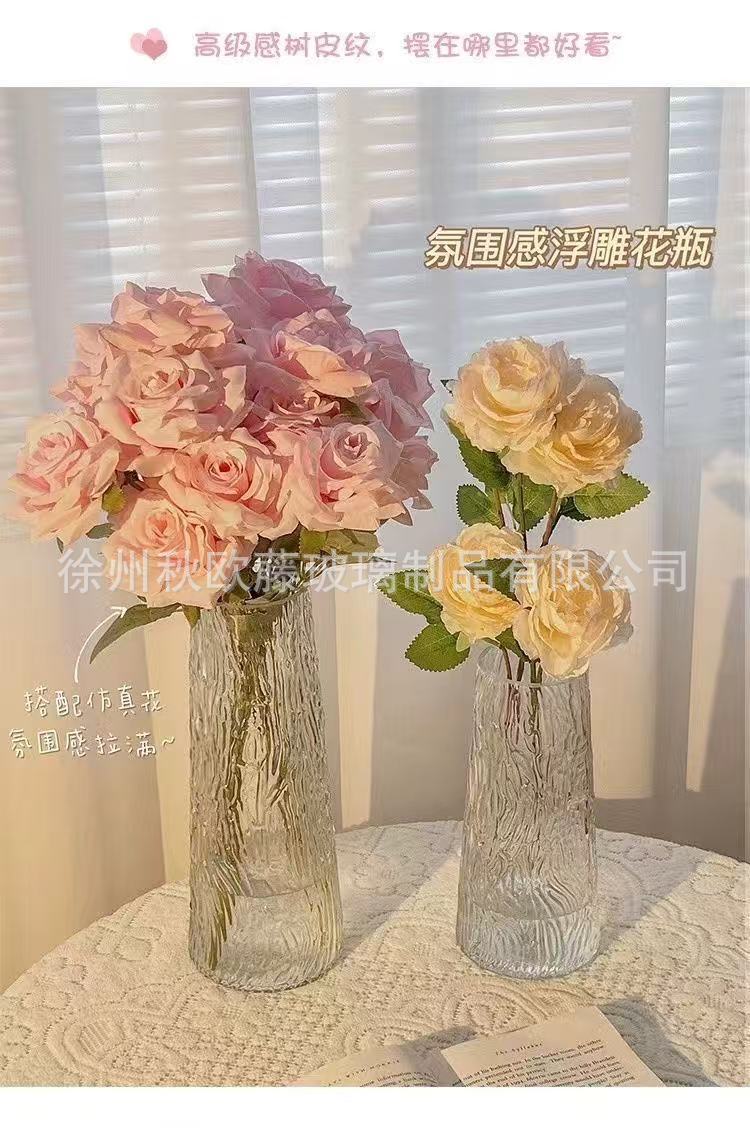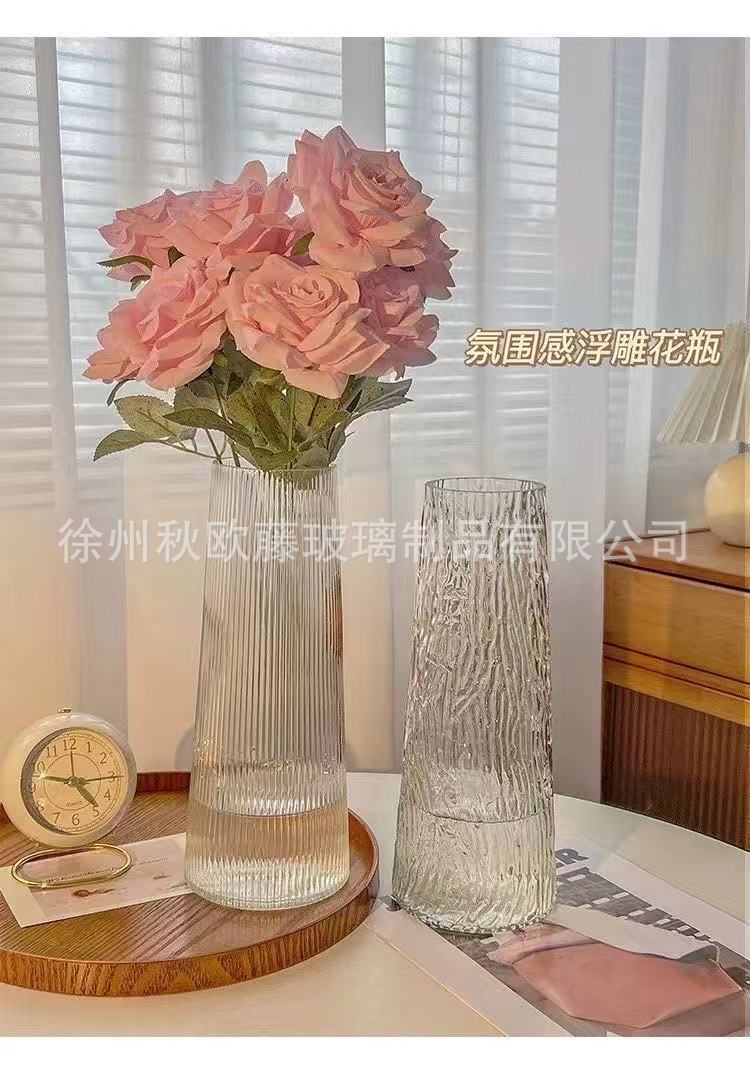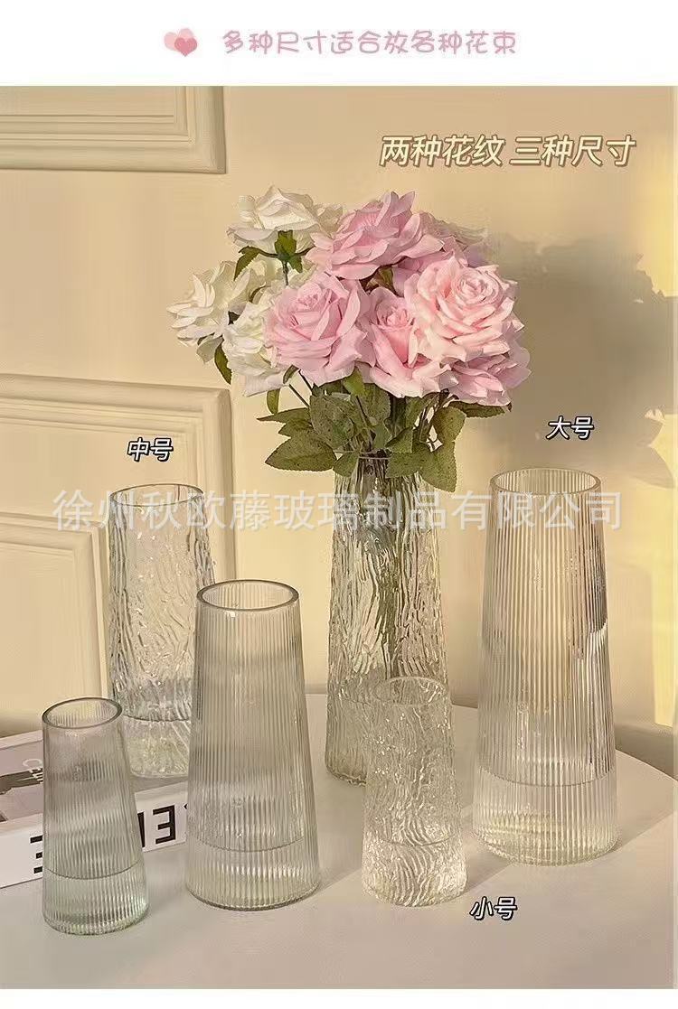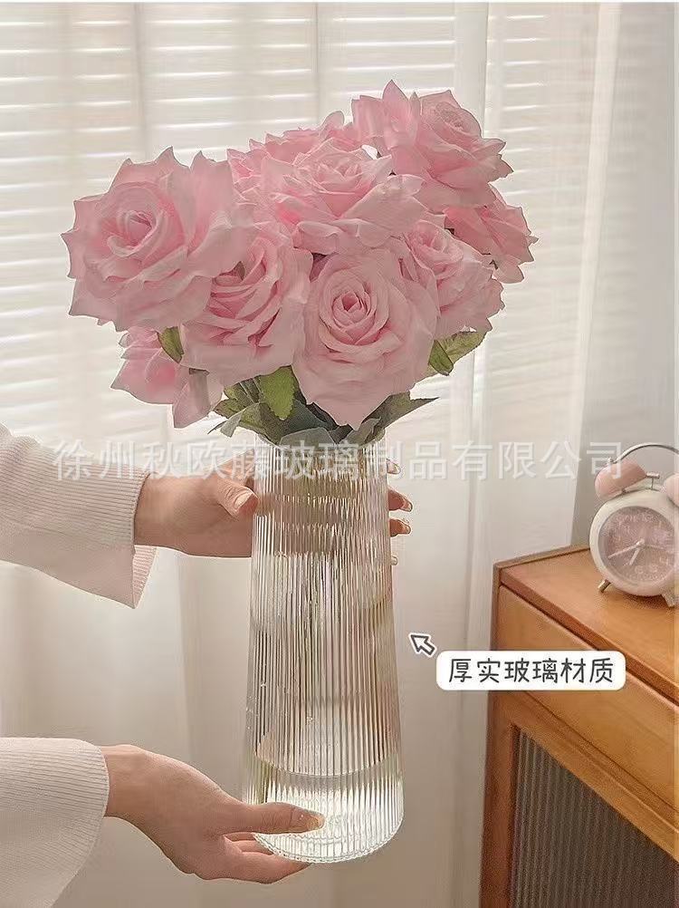 Jarrón de vidrio de barril cónico, estilo nórdico, simple, grande, jarrón transparente, arreglo floral, decoración de escritorio de alta gama, sala de estar