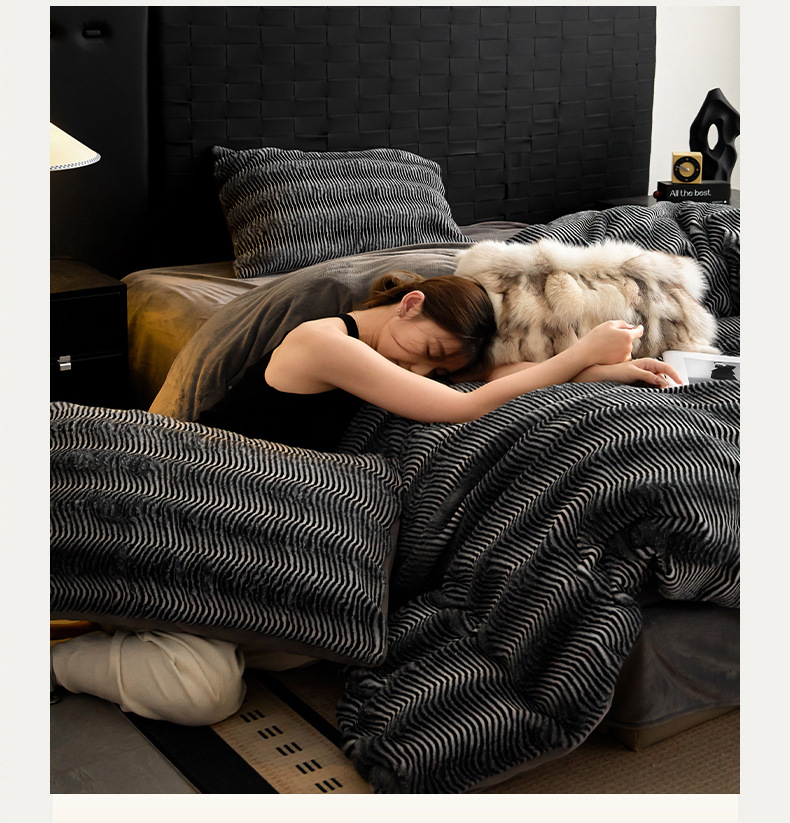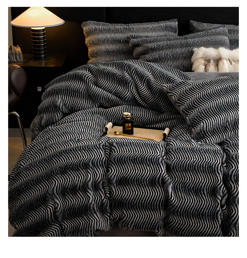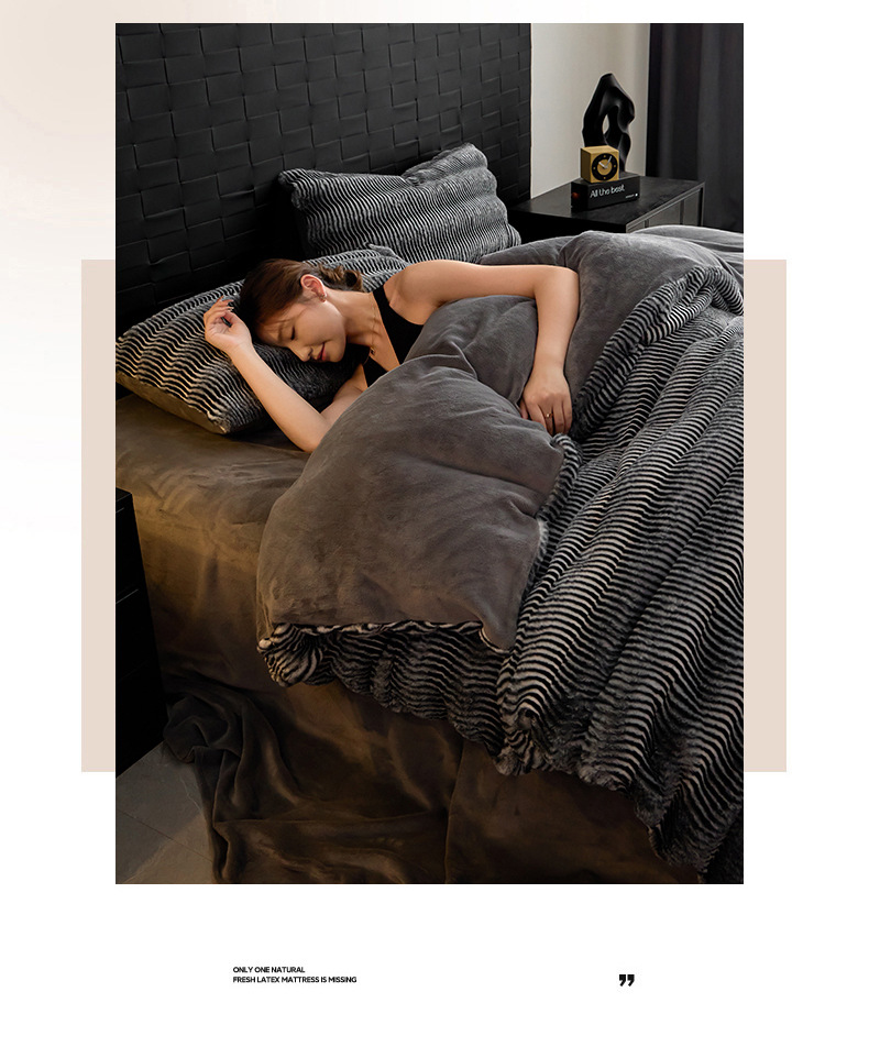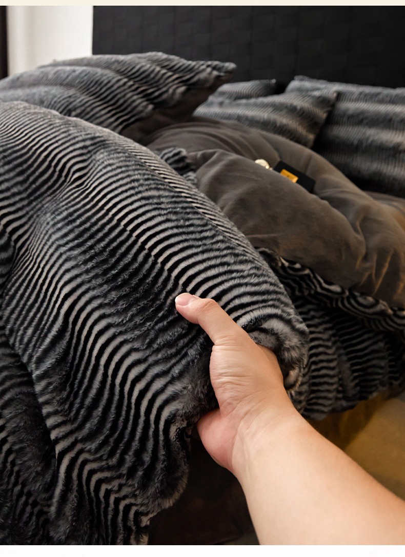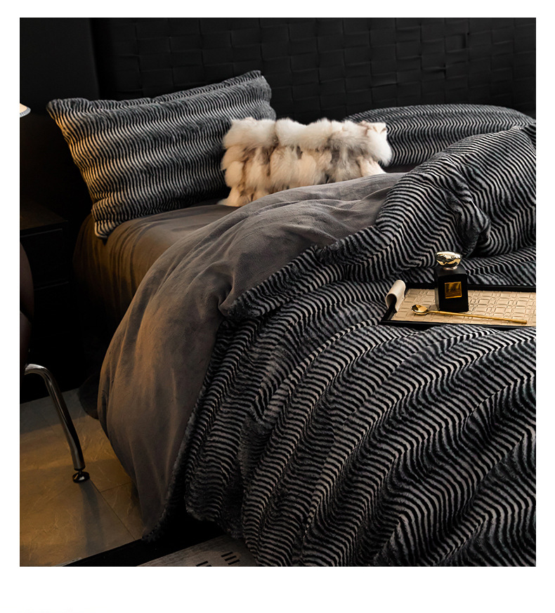 Luz de lujo conejo cama de peluche de cuatro piezas set sábanas de invierno de peluche de coral leche de peluche de doble cara más gruesa cama de peluche