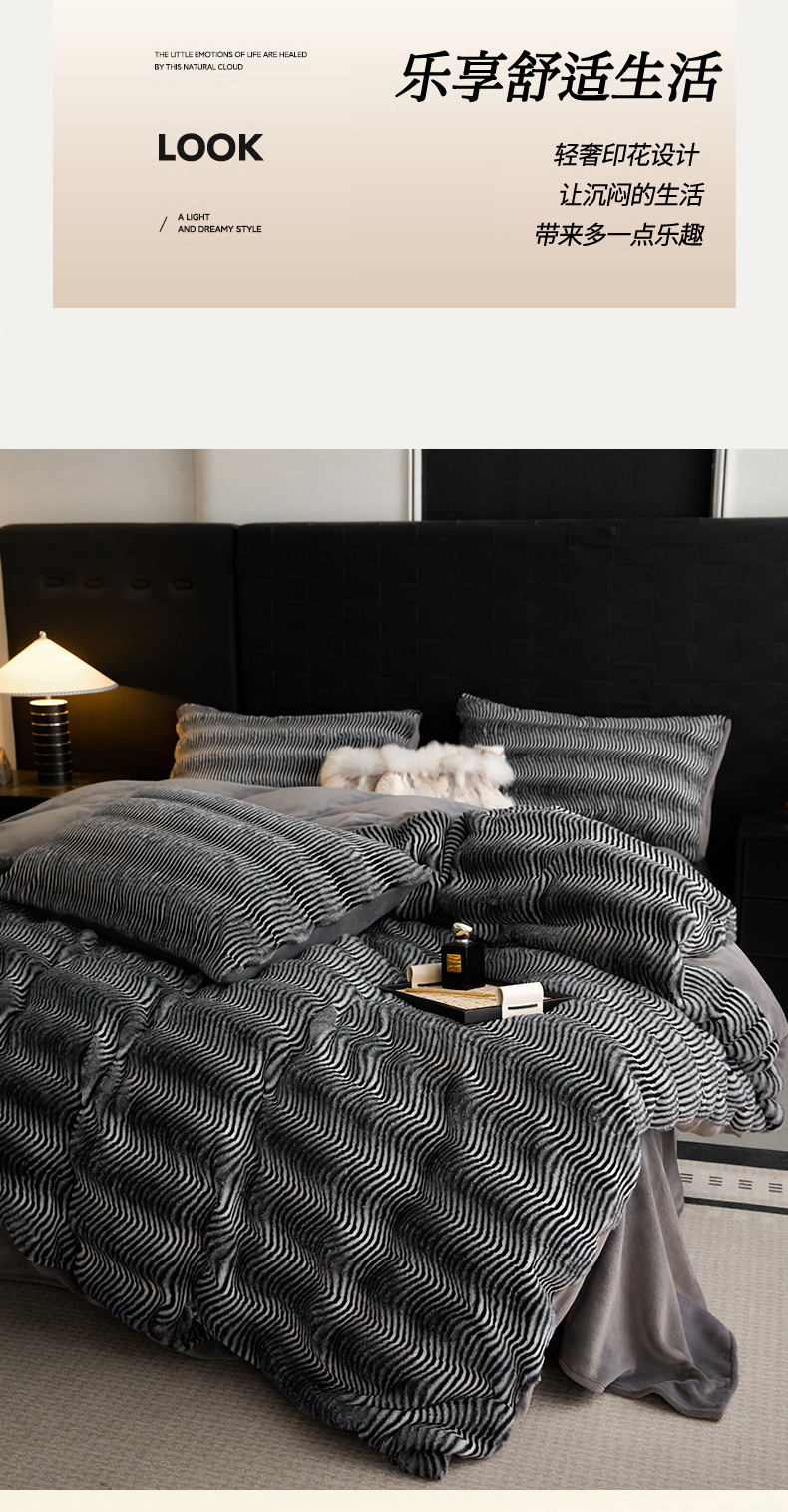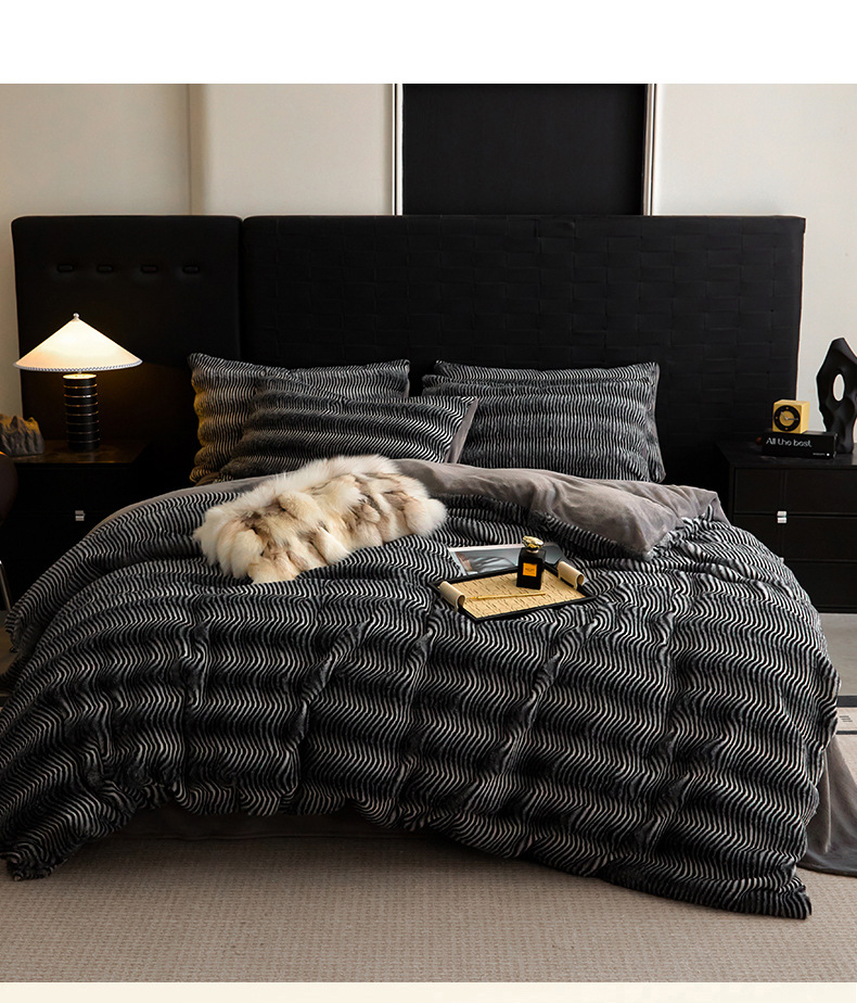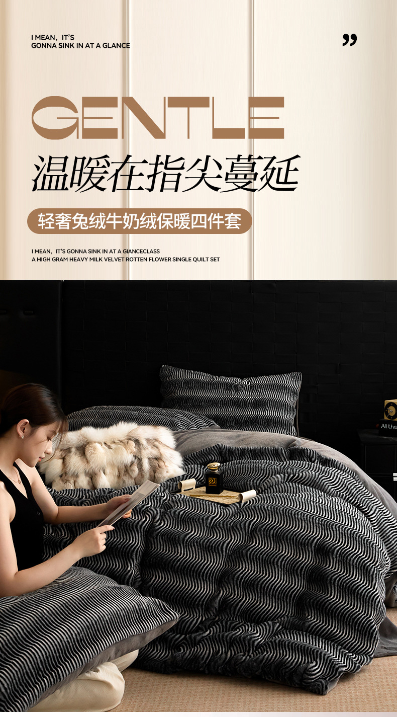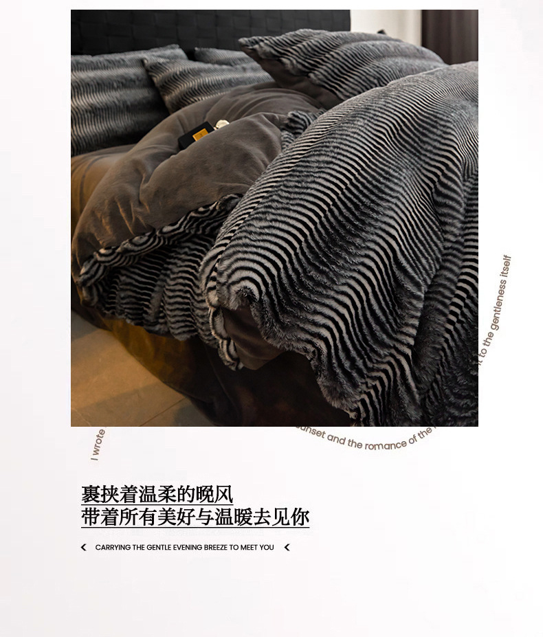Luz de lujo conejo cama de peluche de cuatro piezas set sábanas de invierno de peluche de coral leche de peluche de doble cara más gruesa cama de peluche
