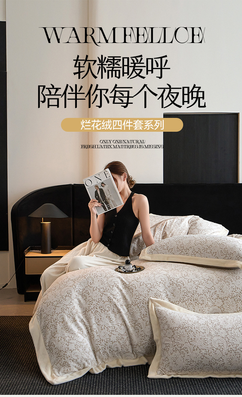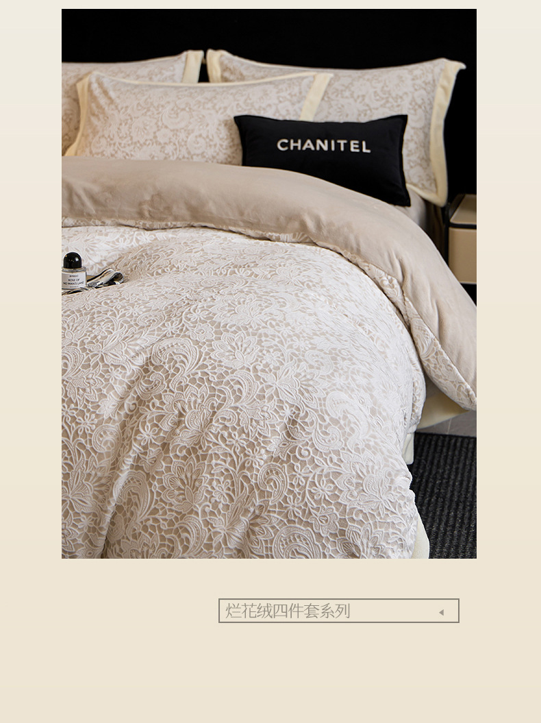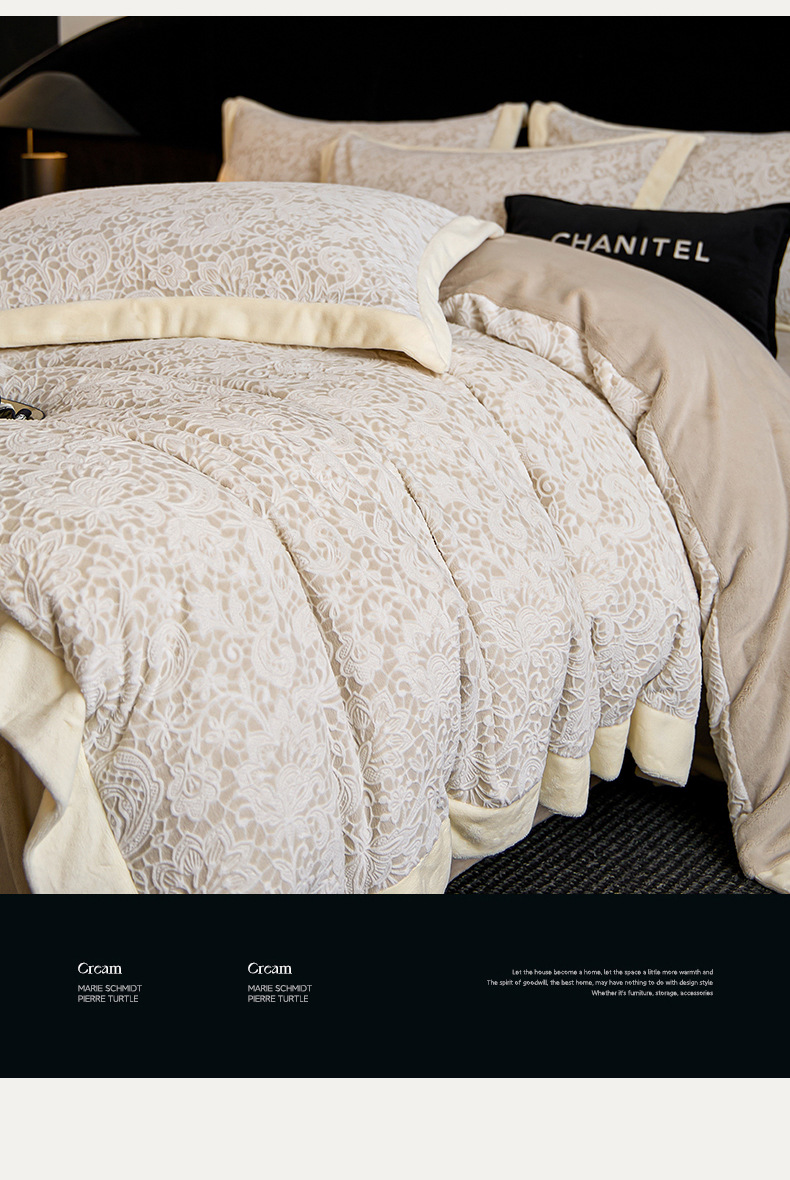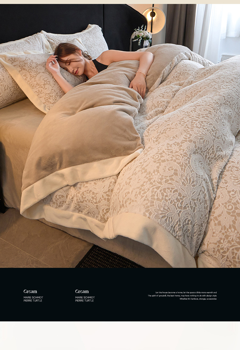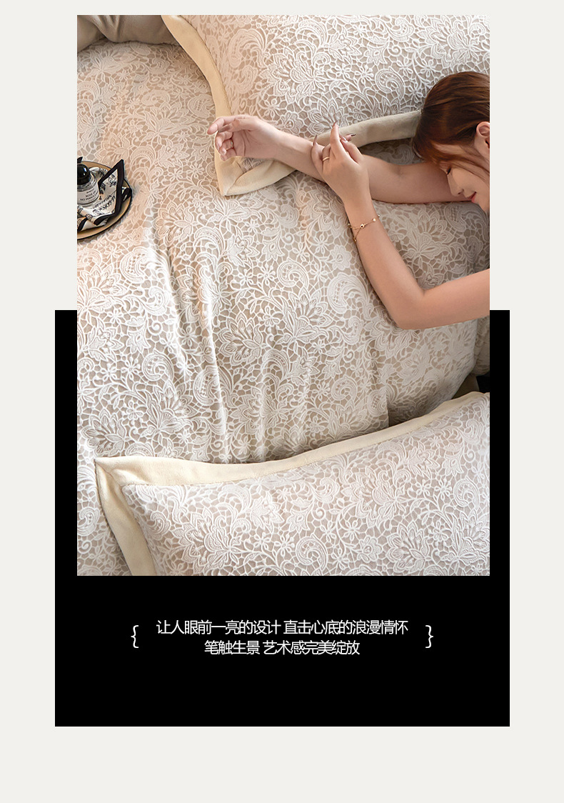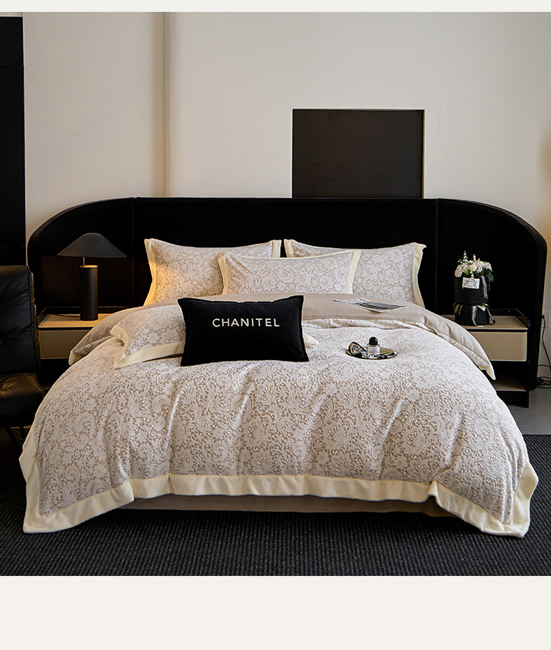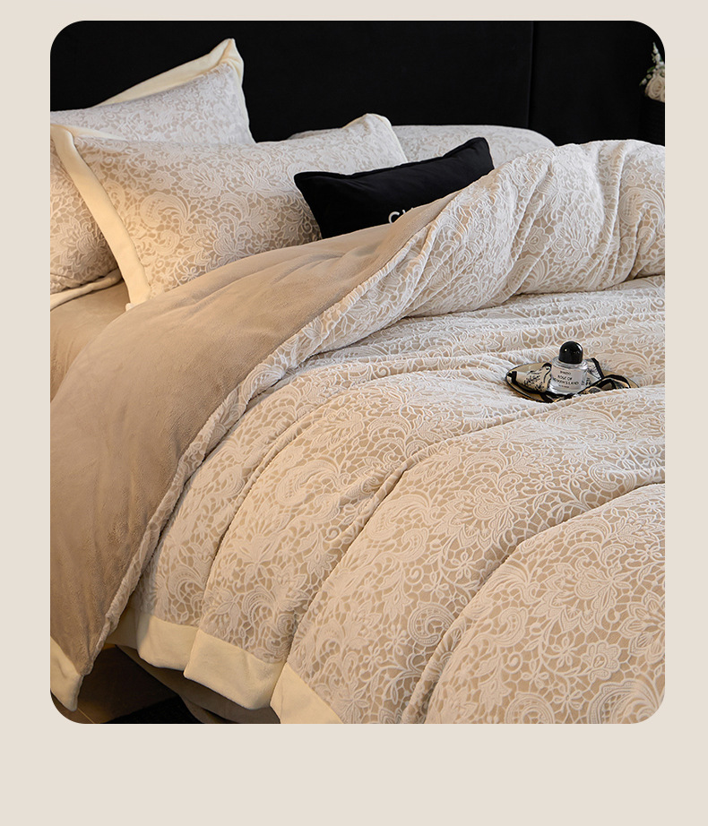 Invierno tallado de leche de lana de cuatro piezas con sábanas de lana de coral caliente engrosadas cubierta de cama antiestática