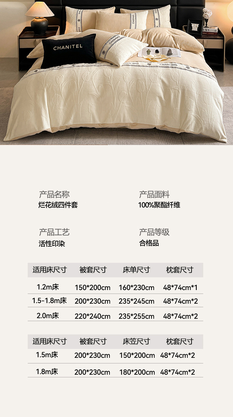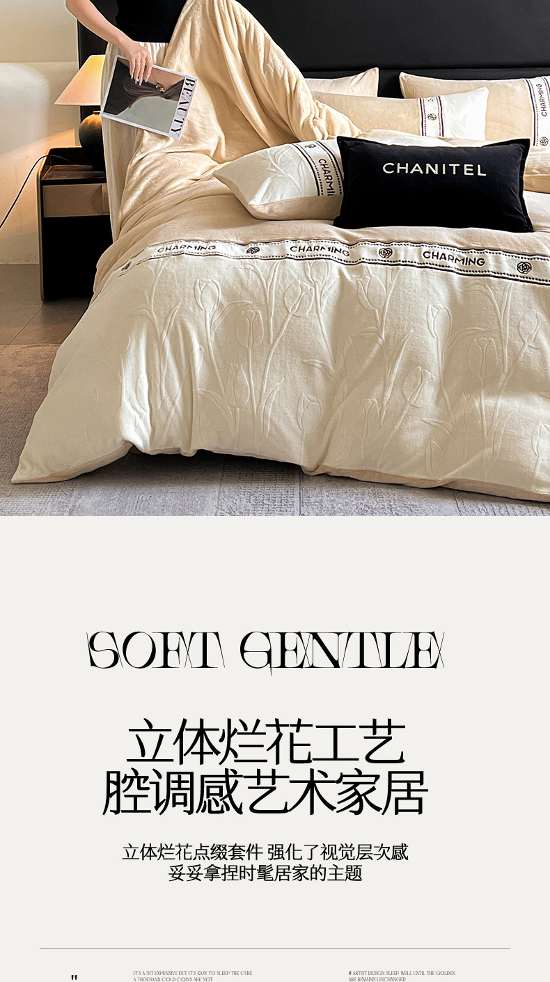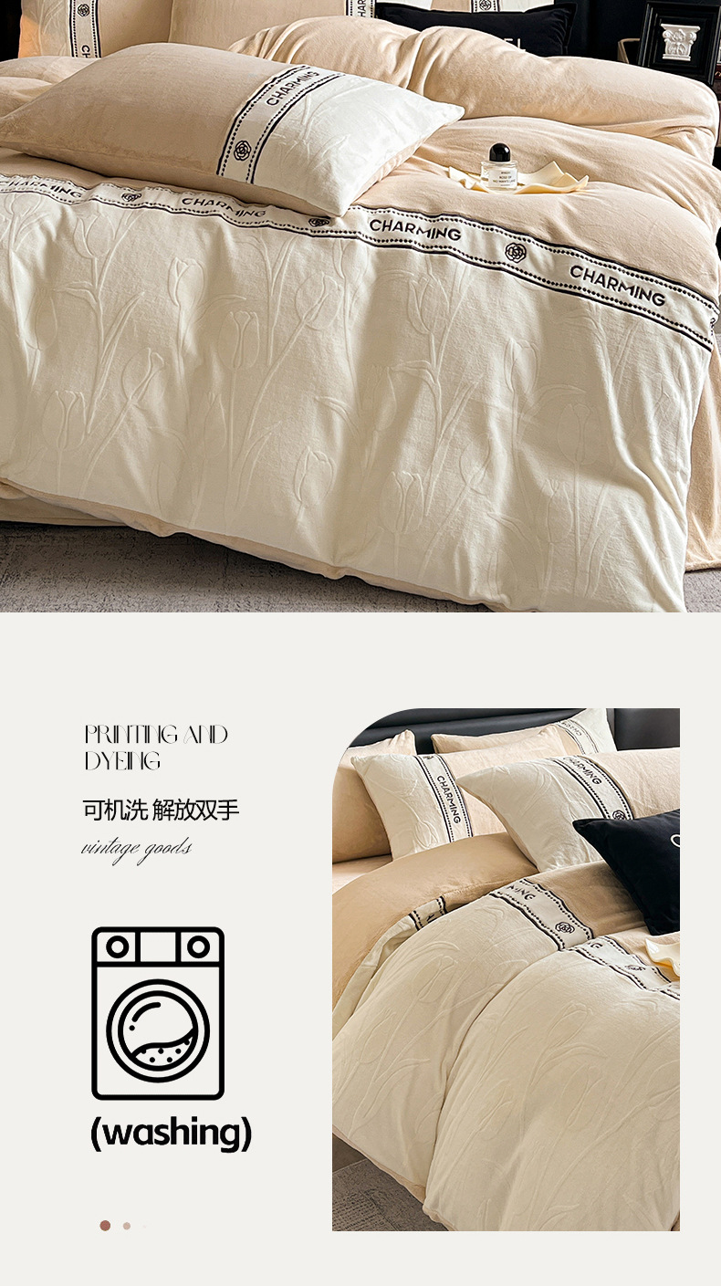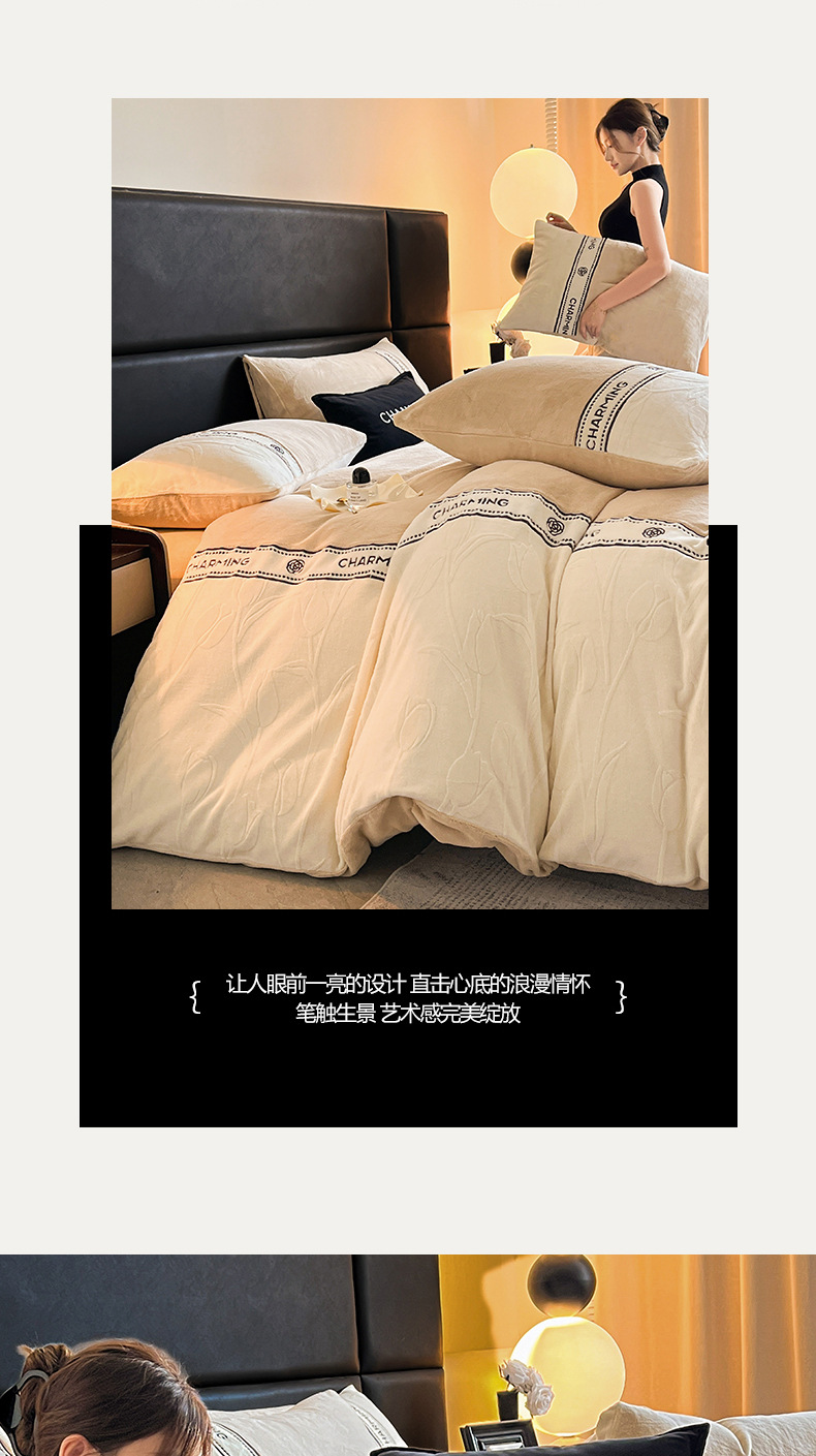 Otoño y invierno tallado de leche de lana de cuatro piezas lujoso lujoso de alto grado engrosado colcha de cama de lana de coral brida
