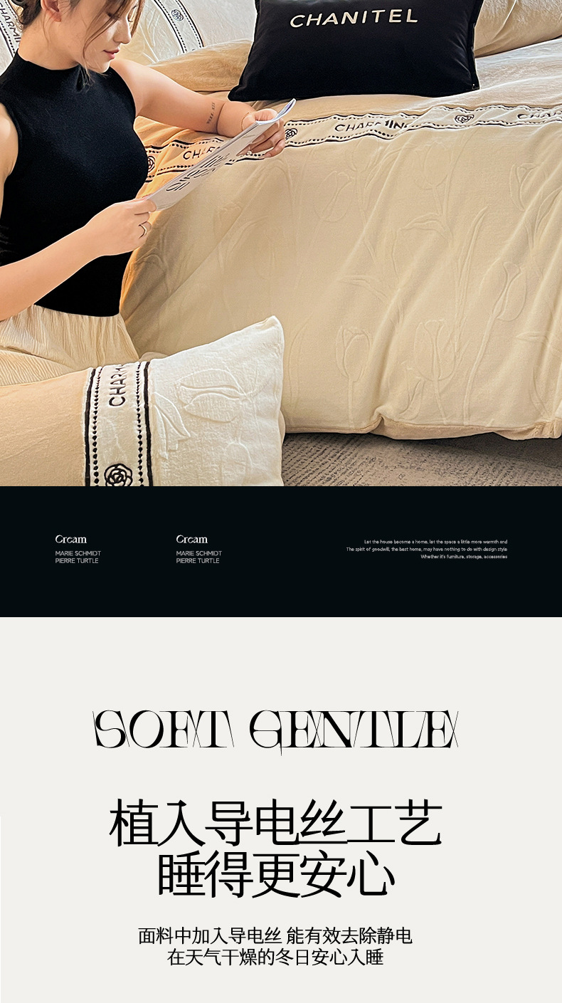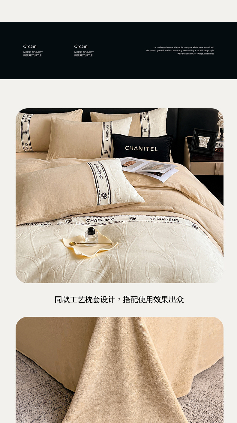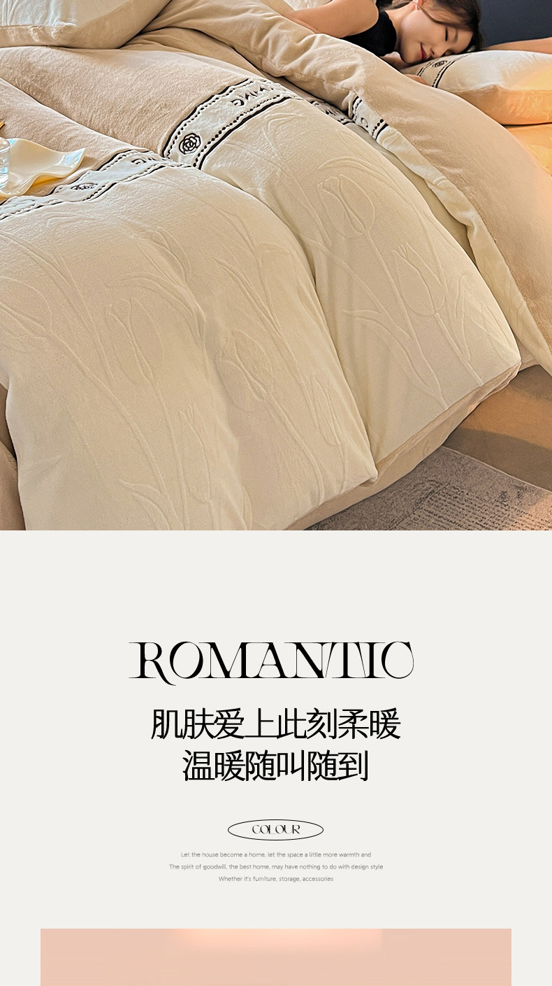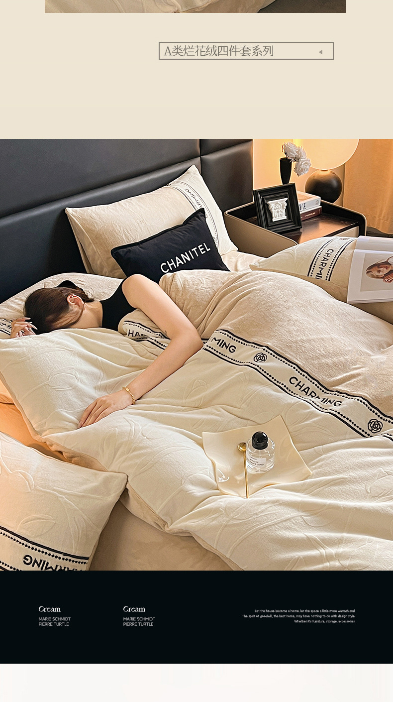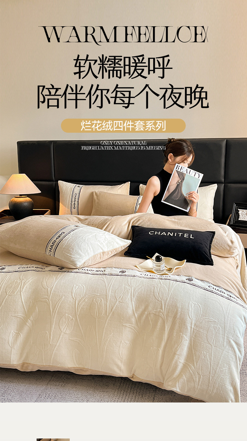 Otoño y invierno tallado de leche de lana de cuatro piezas lujoso lujoso de alto grado engrosado colcha de cama de lana de coral brida